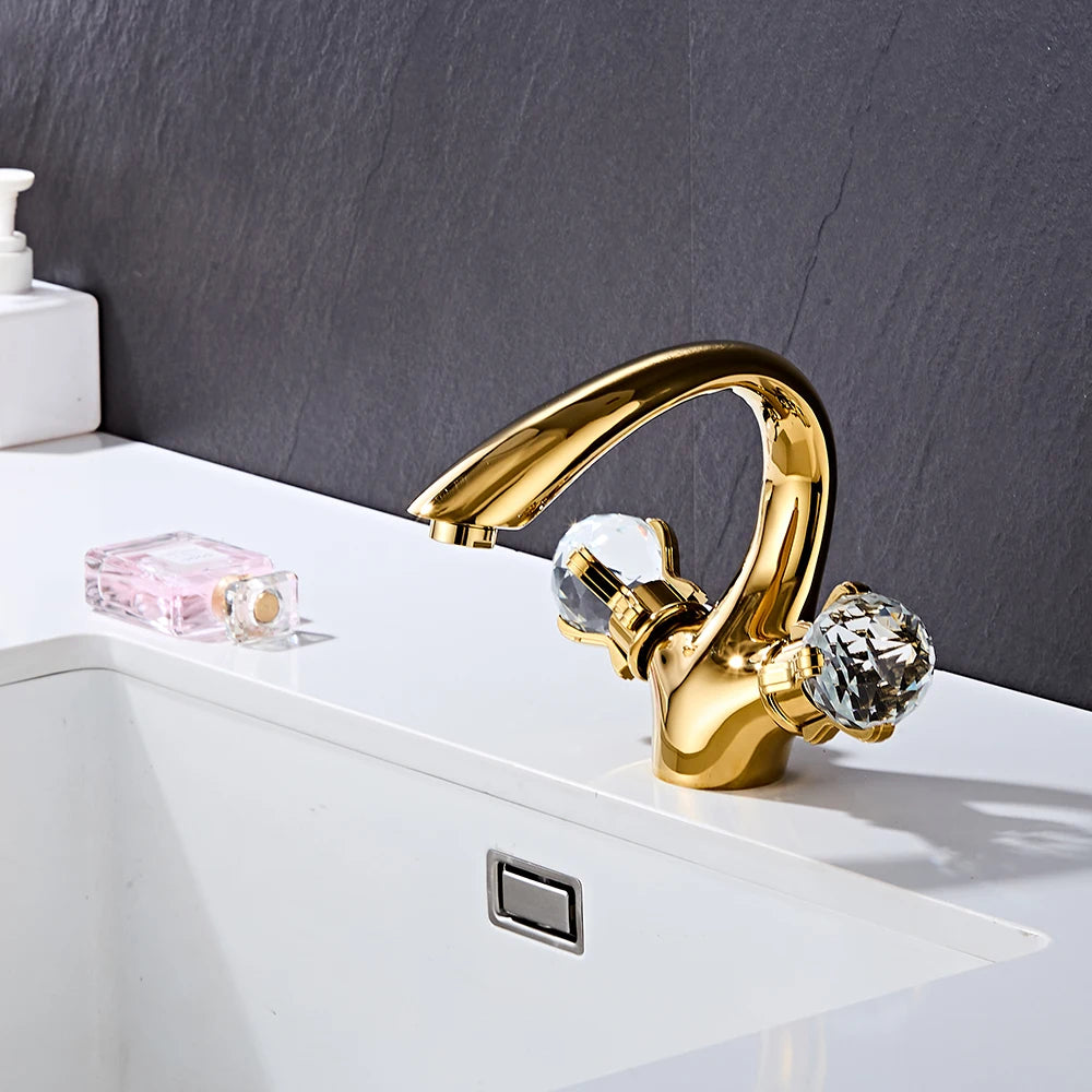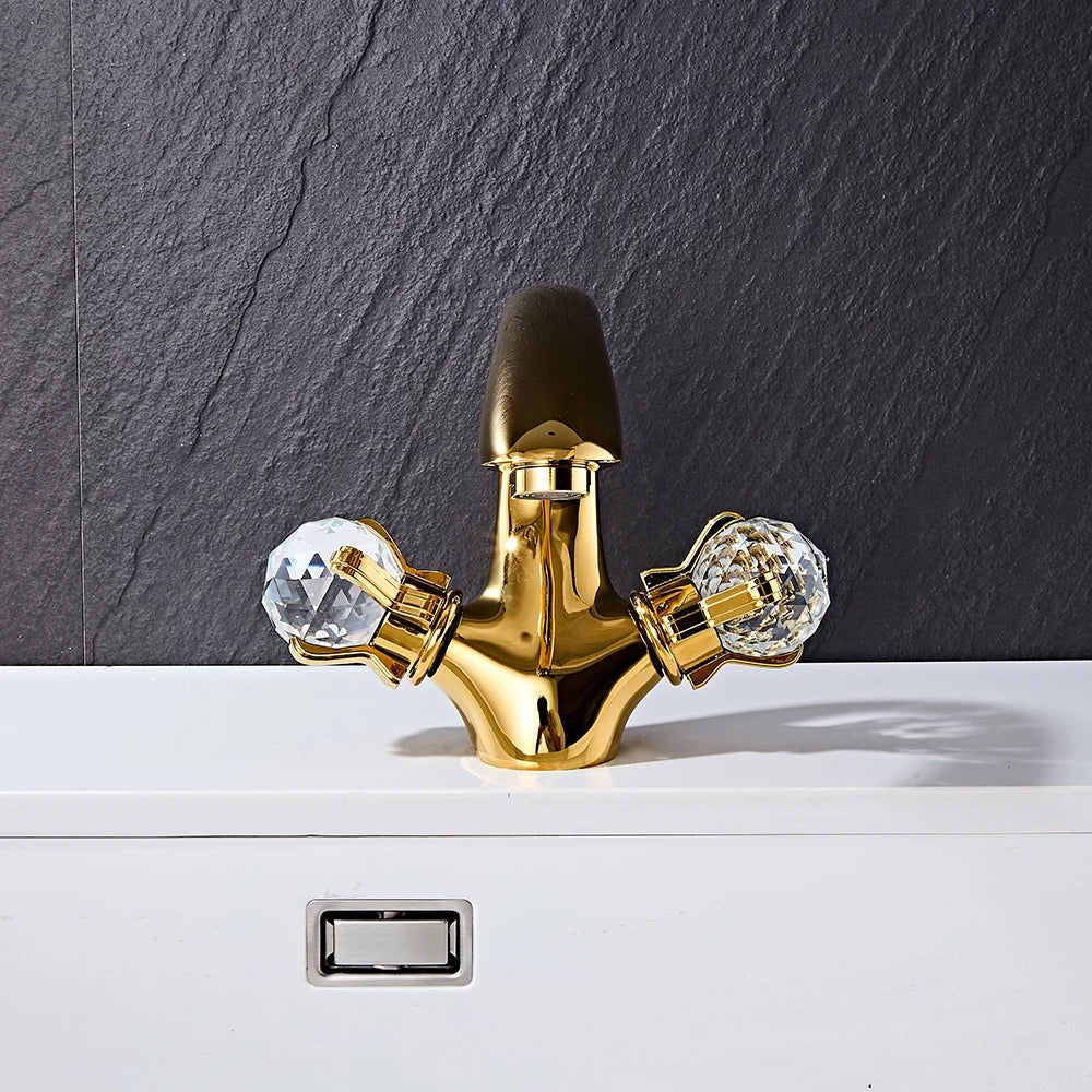 Gold Brass Double Handle Bathroom Basin Faucet Hot Cold Water Mixer