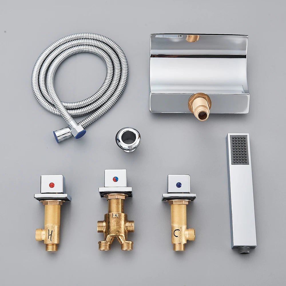 Brass Waterfall Bathtub Faucet Widespread Hot and Cold Water Mixer Tap