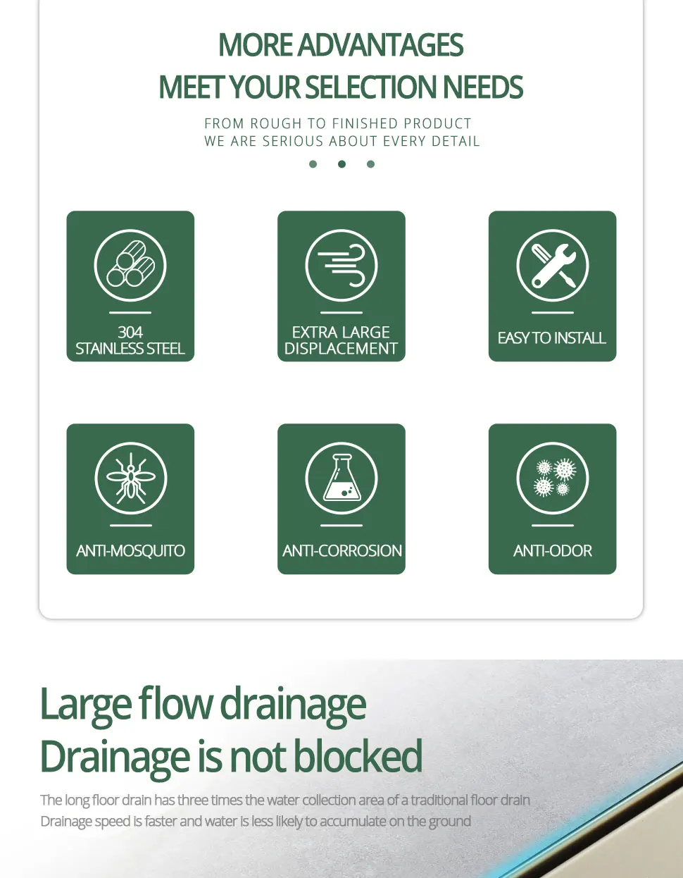 - Fast & Efficient Drainage: Engineered for rapid water flow to prevent pooling and ensure efficient shower drainage.