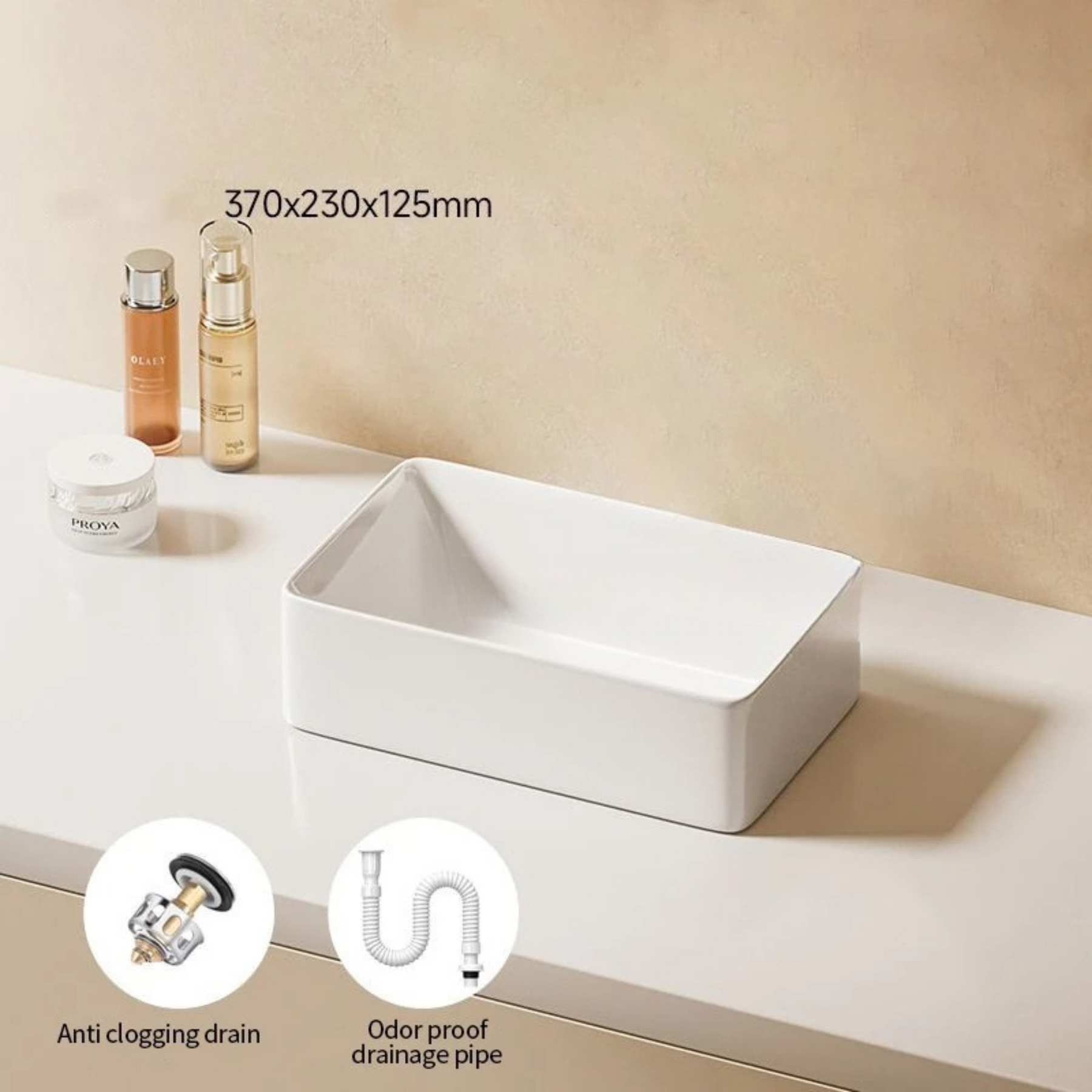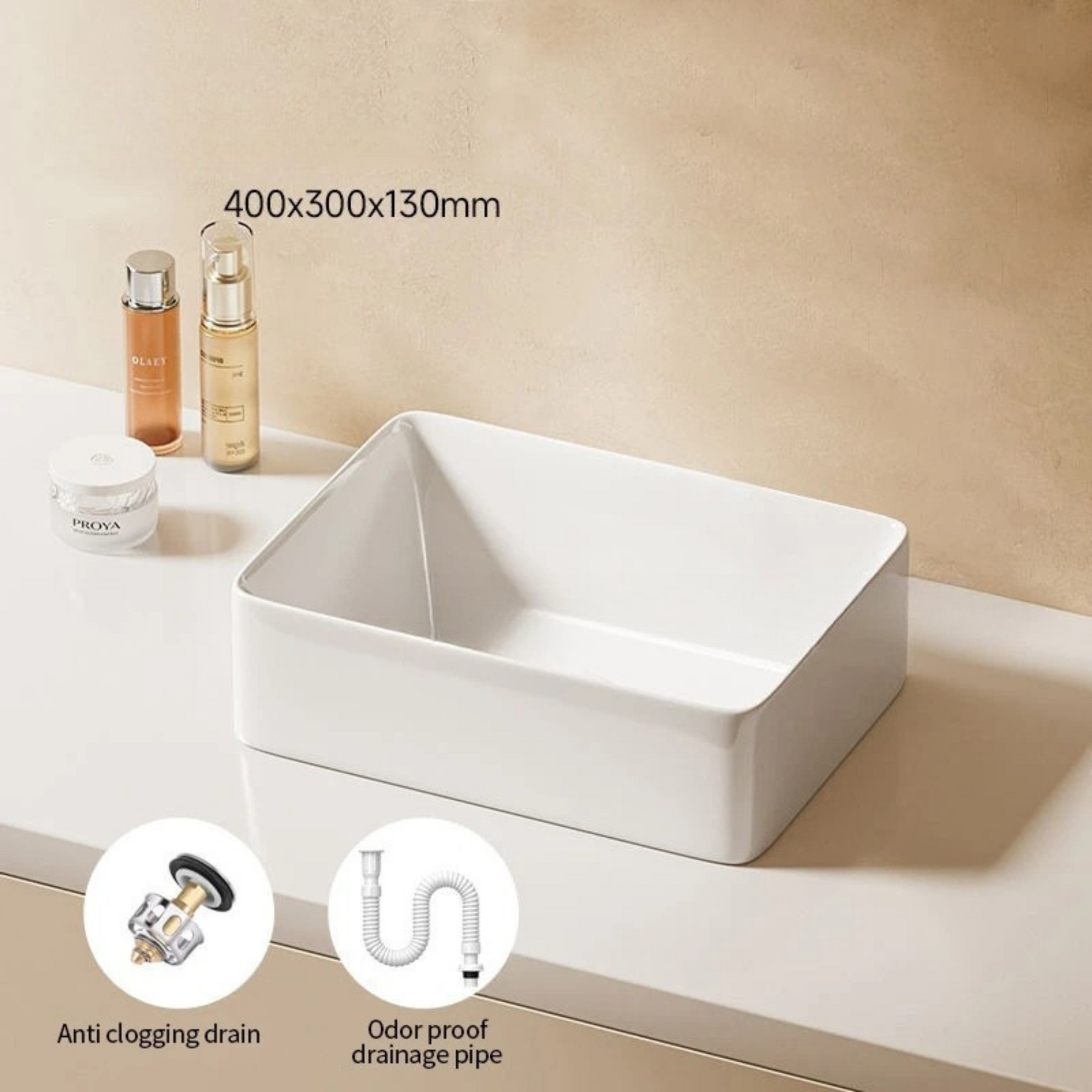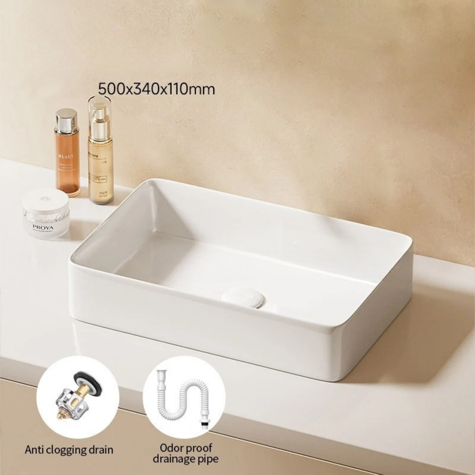Elevate your bathroom with this Above Counter Single Ceramic Bathroom Vessel Wash Basin Sink from Index Bath, designed for above-counter installation. Its clean lines and smooth, glossy surface make it an ideal centerpiece for vanities in contemporary, traditional, or minimalist interiors.