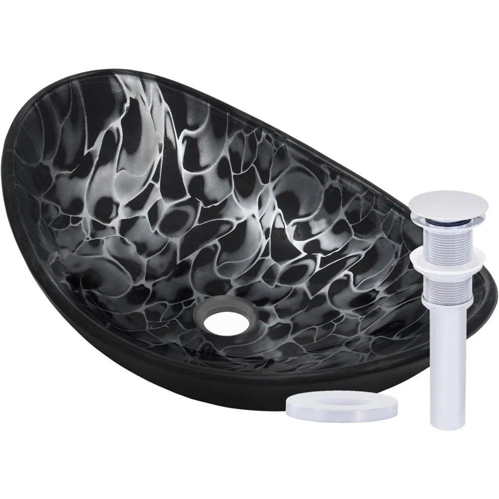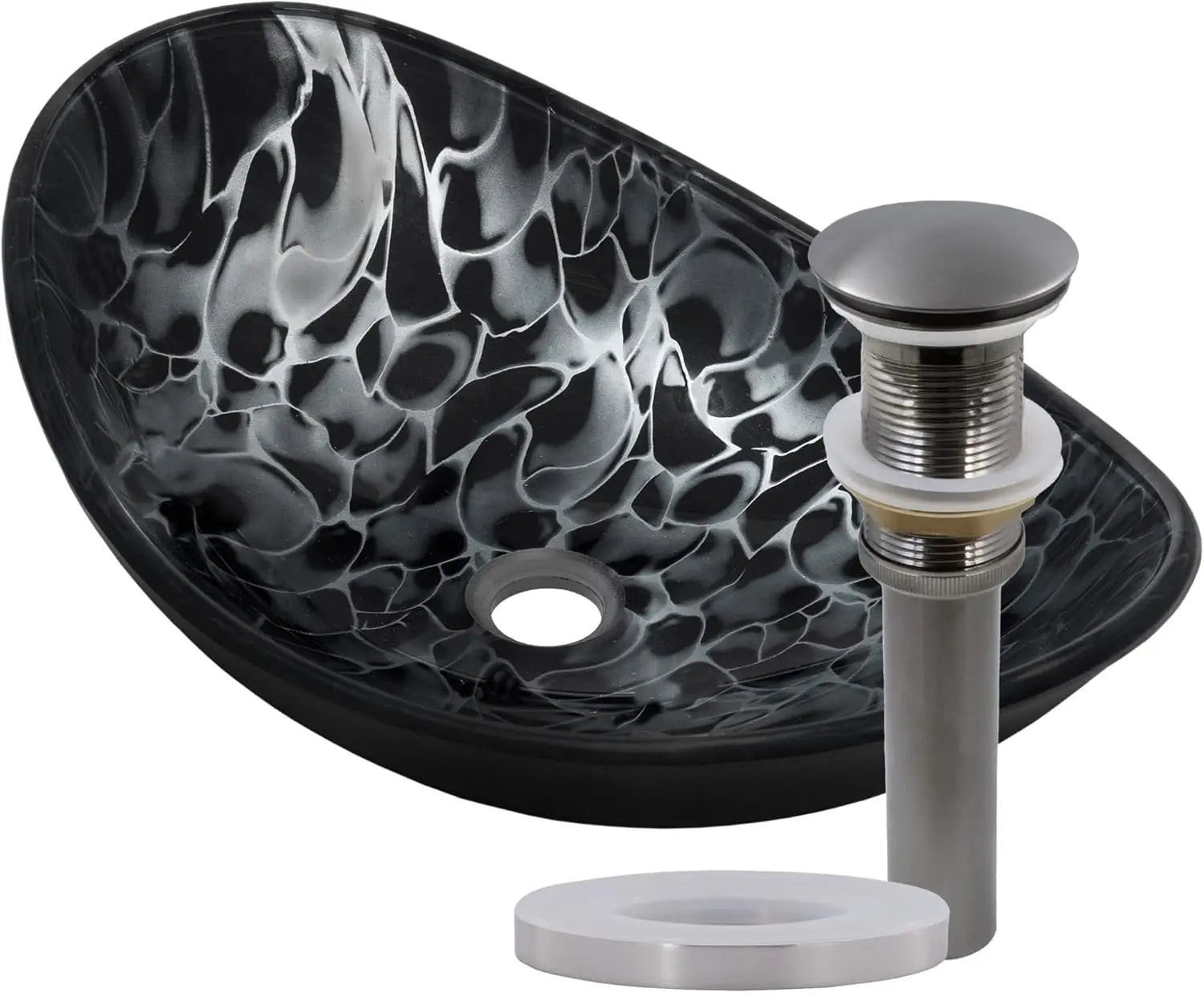 1 * 21.5" Oval Tempered Glass Bathroom Vessel Basin Sink Drain Included