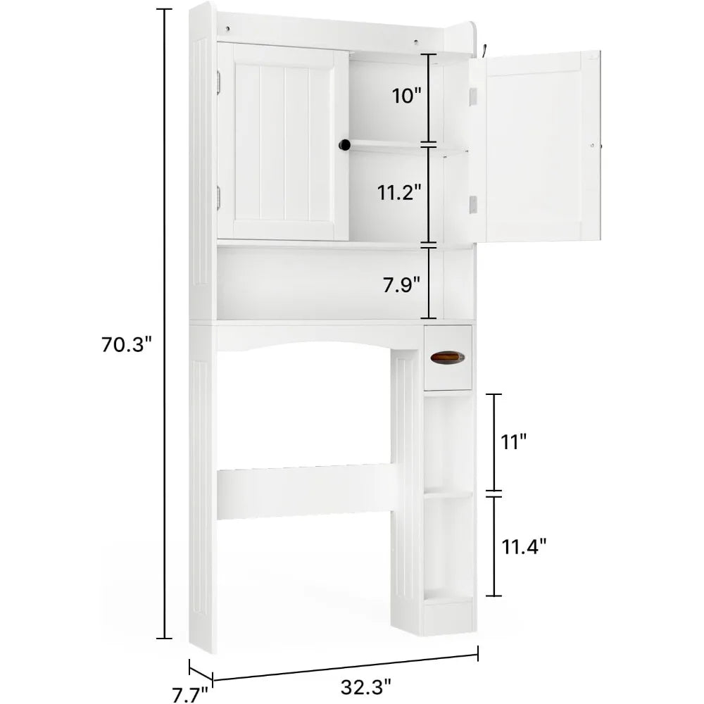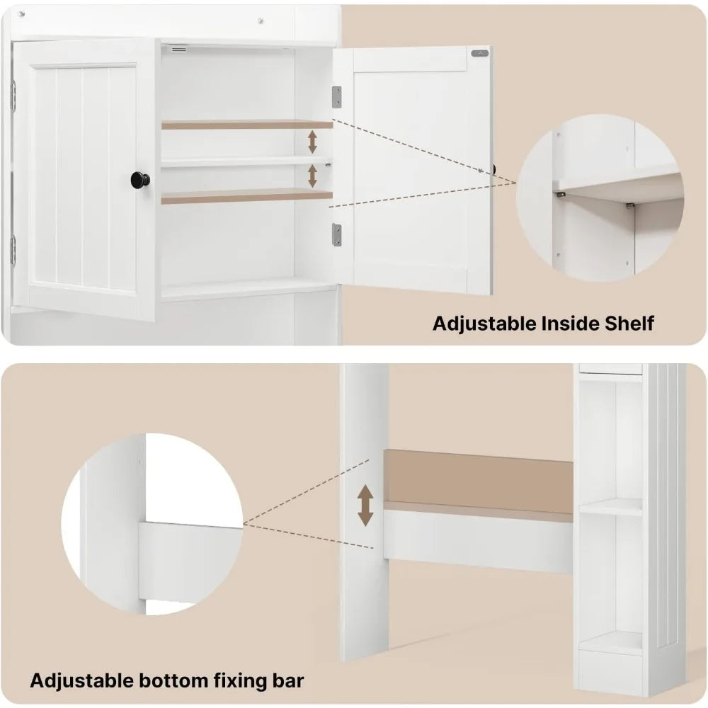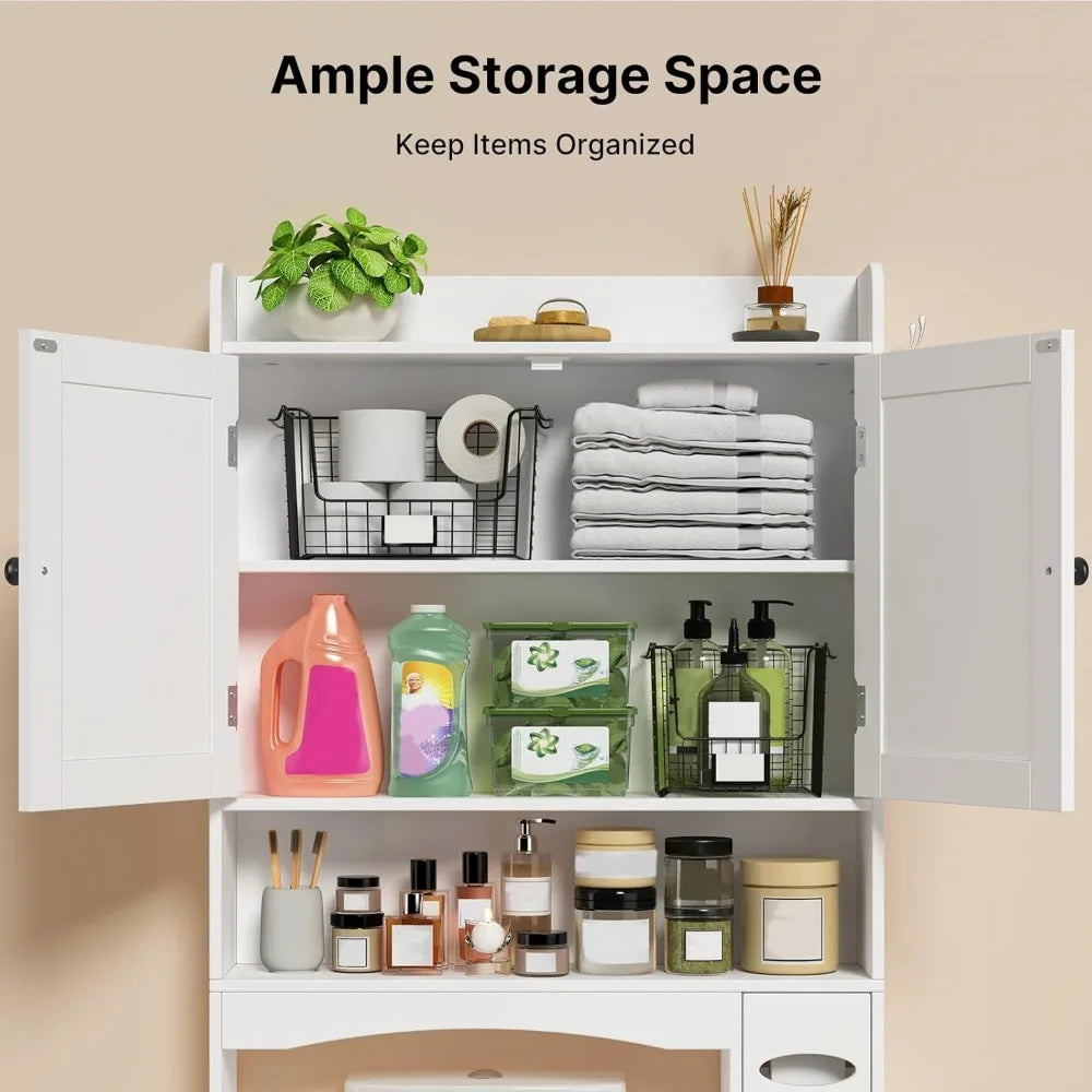 70" Tall Over Toilet Bathroom Organizer with Doors Adjustable Shelves