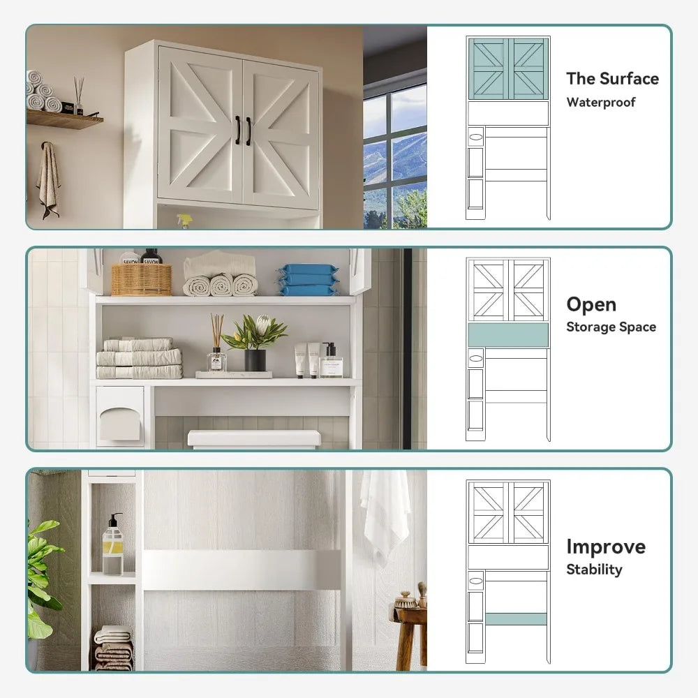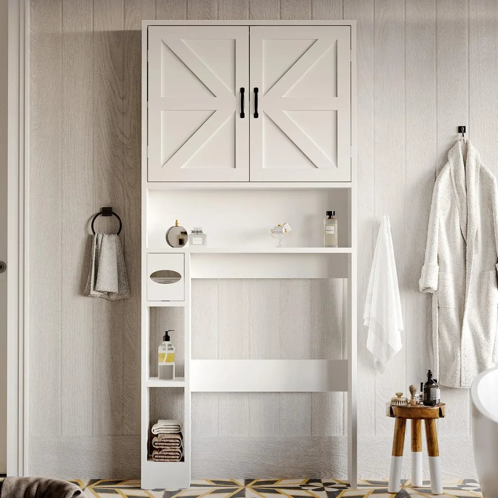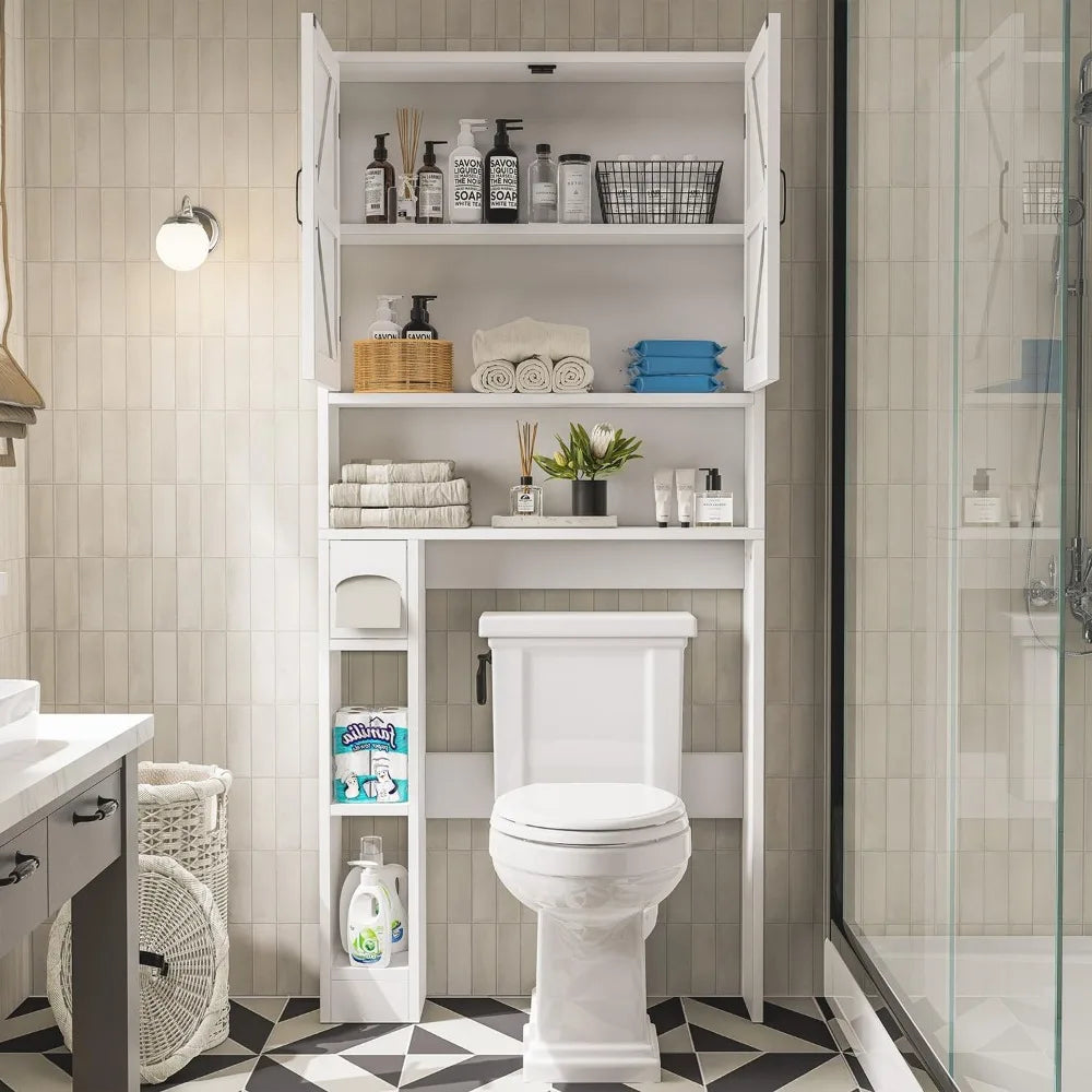 Maximize your bathroom space with this multi-functional 70-inch tall over-the-toilet storage cabinet from Index Bath, designed to bring both charm and functionality to your daily routine. Whether you need a stylish way to store towels, toiletries, or backup rolls of tissue, this cabinet has you covered literally!
