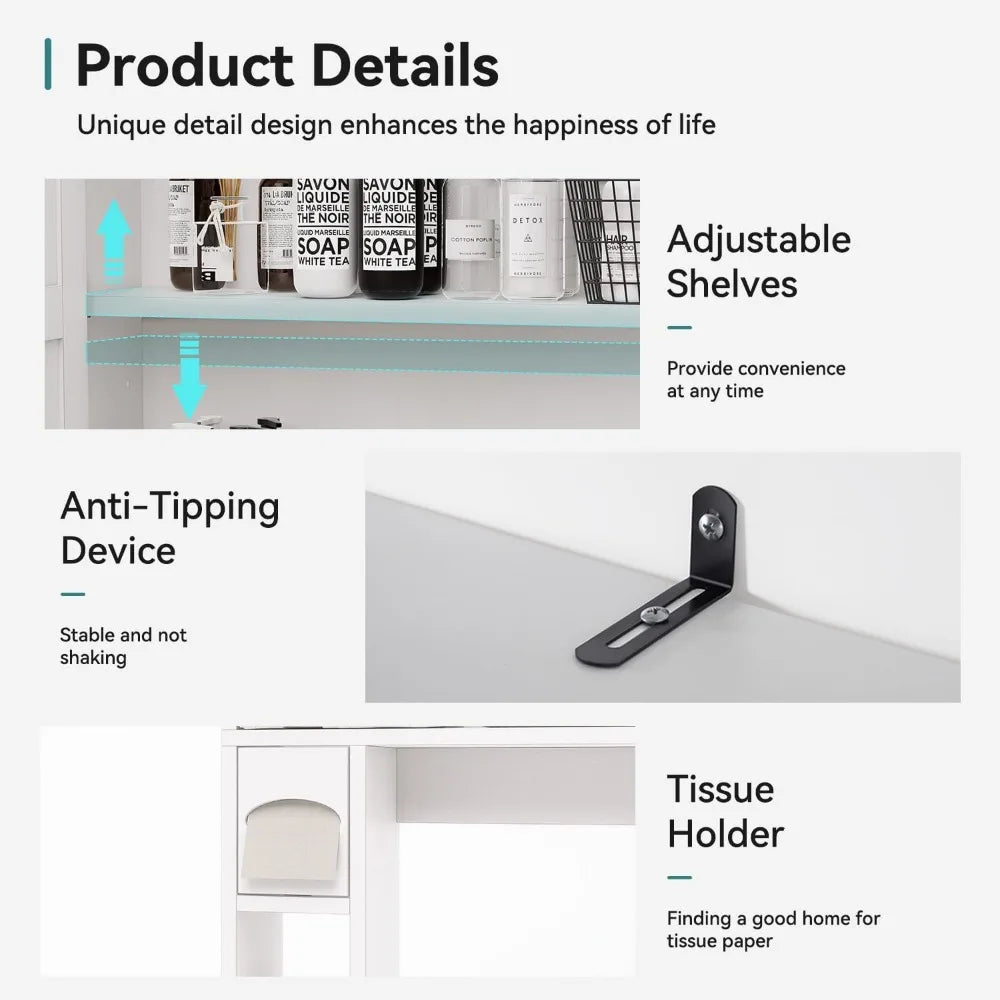 Features:- Durable and Sturdy: The toilet storage cabinet is made of high-quality particle board, which is waterproof and scratch resistant, and is very durable. The wooden appearance and fashionable white can match most decorative styles