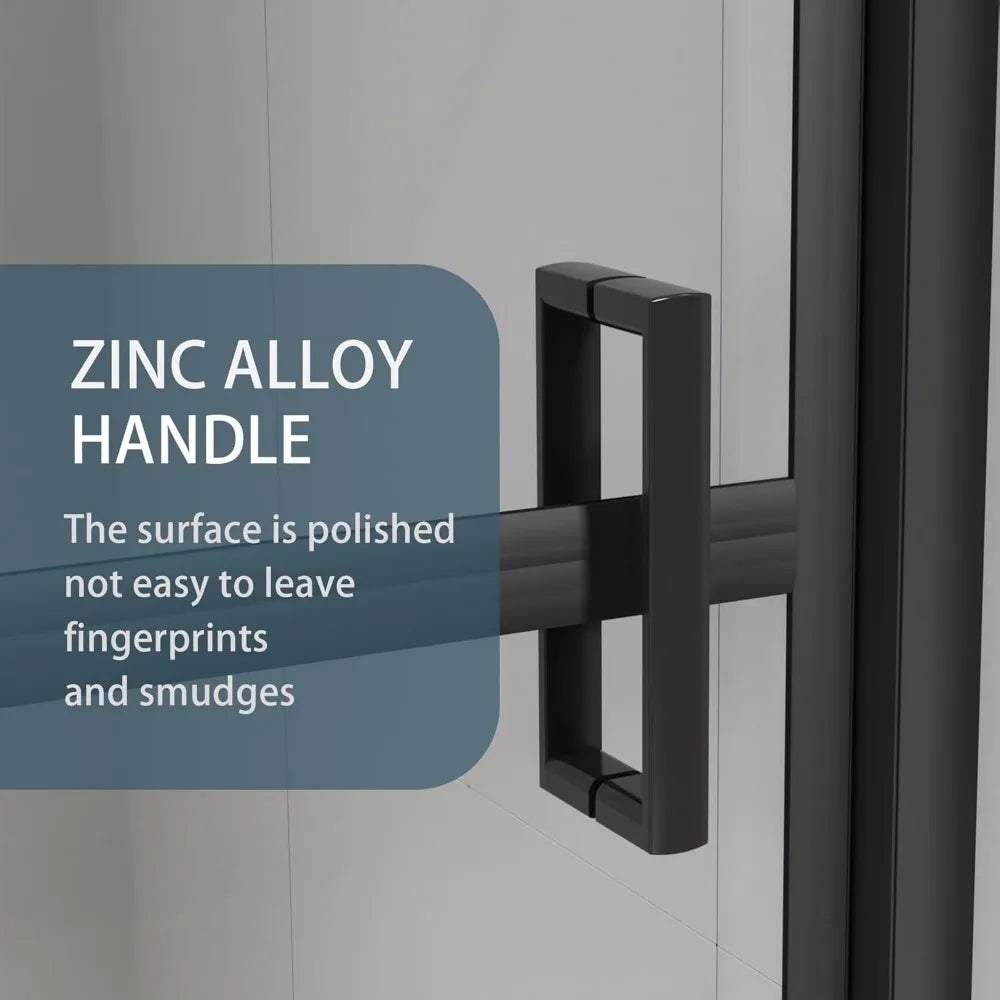 - High Quality Materials: This shower door is made of 1/5 in. certificated clear tempered glass, covered with strong aluminum frame. All hardwares including 2 door handles are made of zinc alloy, which will not rust during daily using even in humid environment.