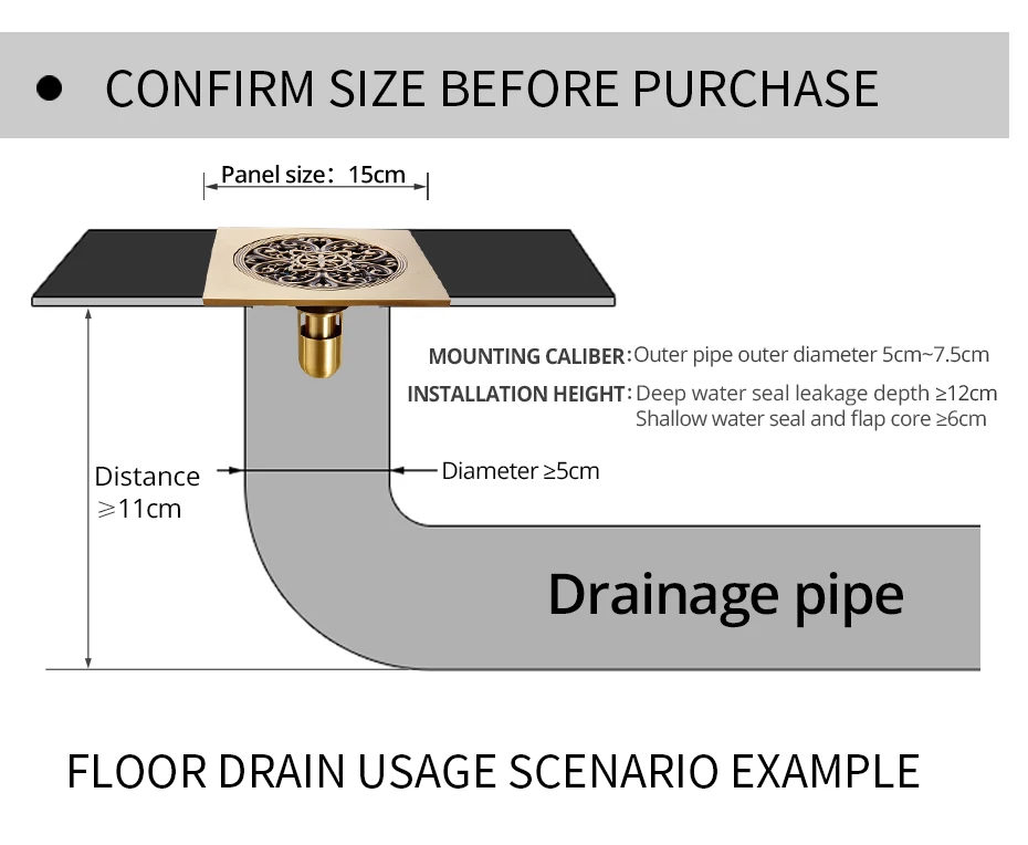 1 * Shower Drain 6" Super Bigger Floor Brass Drain Bathroom Accessories