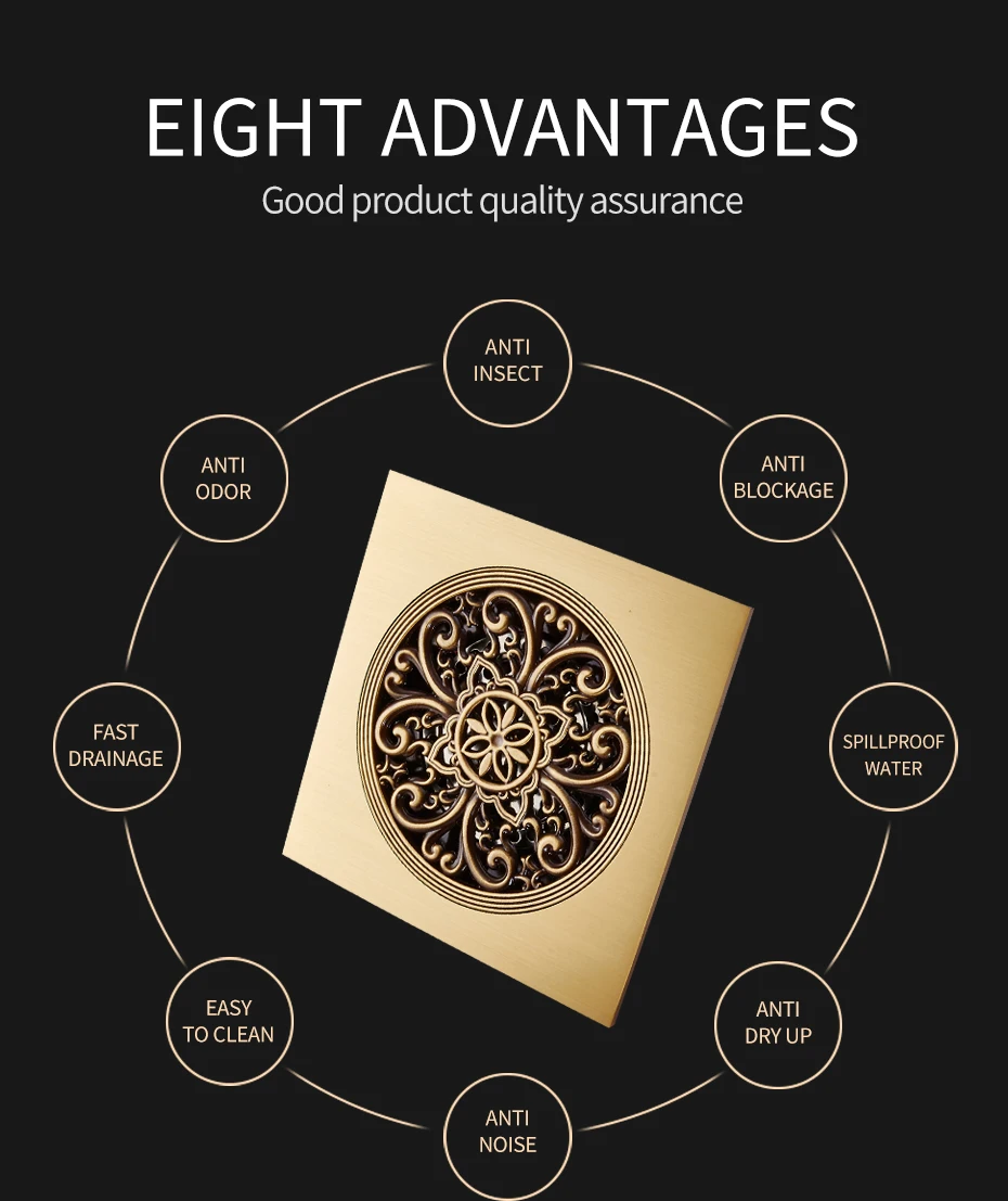 Enhance your bathroom with this Shower Drain 6" Super Bigger Floor Brass Drain Bathroom Accessories from Index Bath, designed for fast water drainage and modern style. Ideal for showers, bathrooms, balconies, and utility spaces, it combines practical performance with sleek design to keep your floor dry and clean.