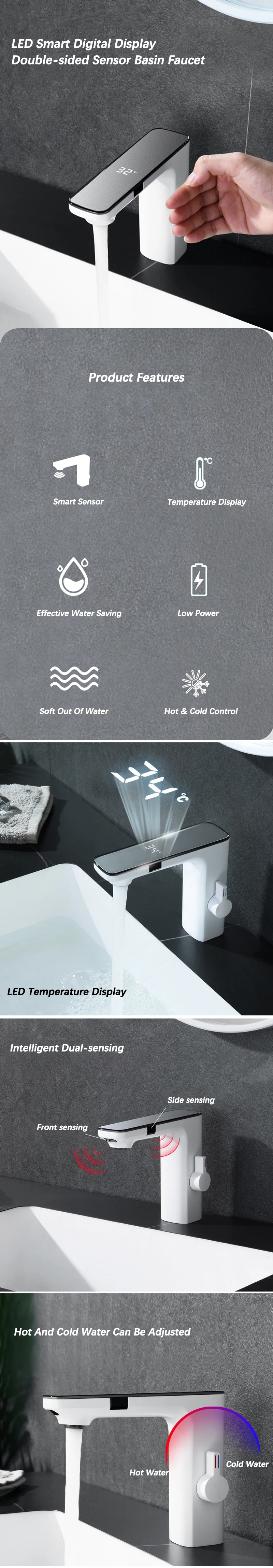Smart Display Touchless Bathroom Basin Faucet Sensor Water Mixer Tap