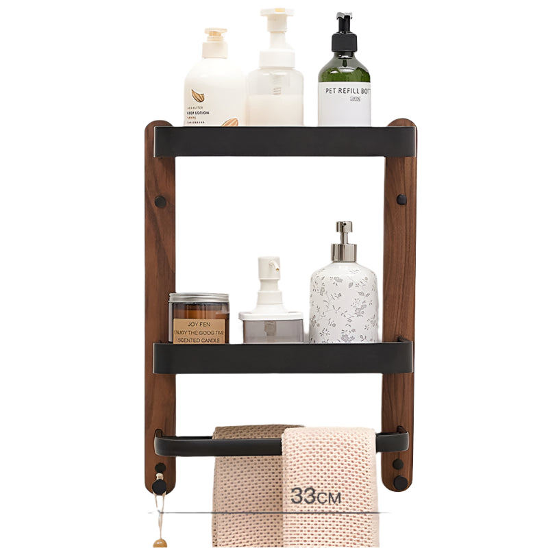 1 * Double Wall Mounted Wood and Aluminum Bathroom Shelves Storage Rack