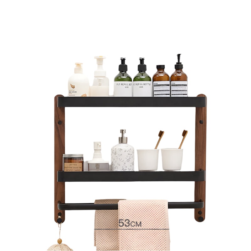 Double Wall Mounted Wood and Aluminum Bathroom Shelves Storage Rack