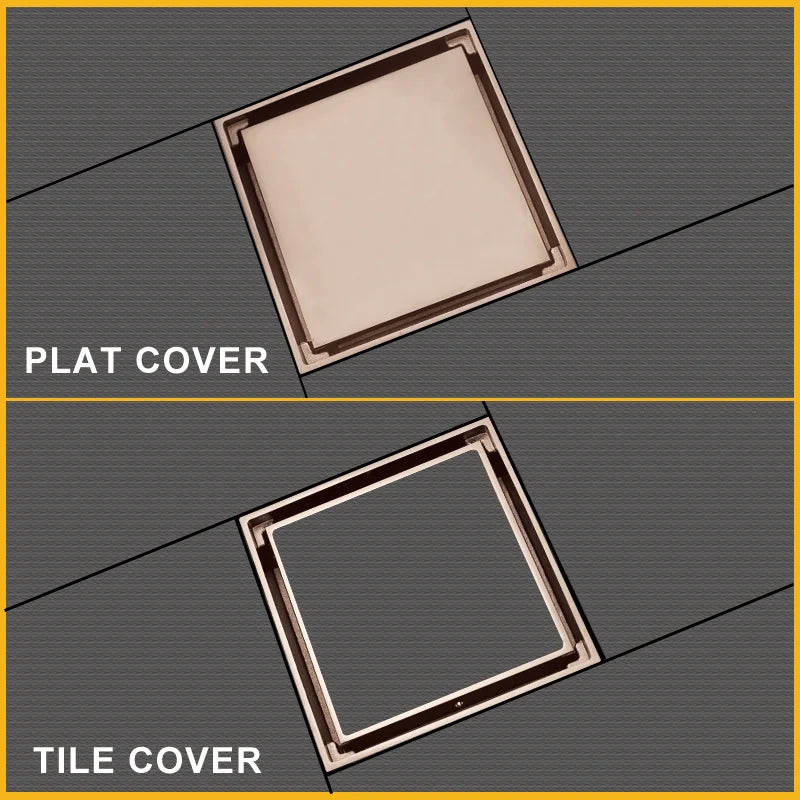 Square Tile Embedded Hidden Brass Floor Drain Bathroom Shower Drain