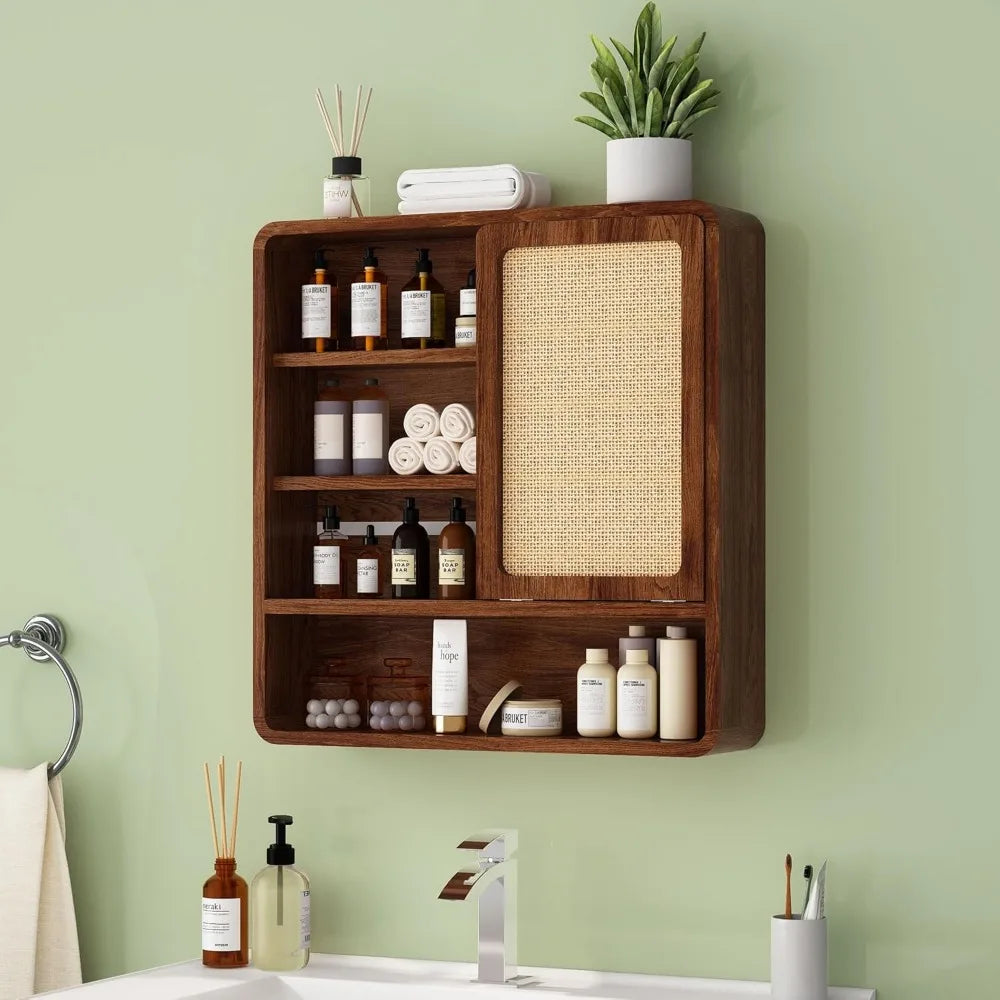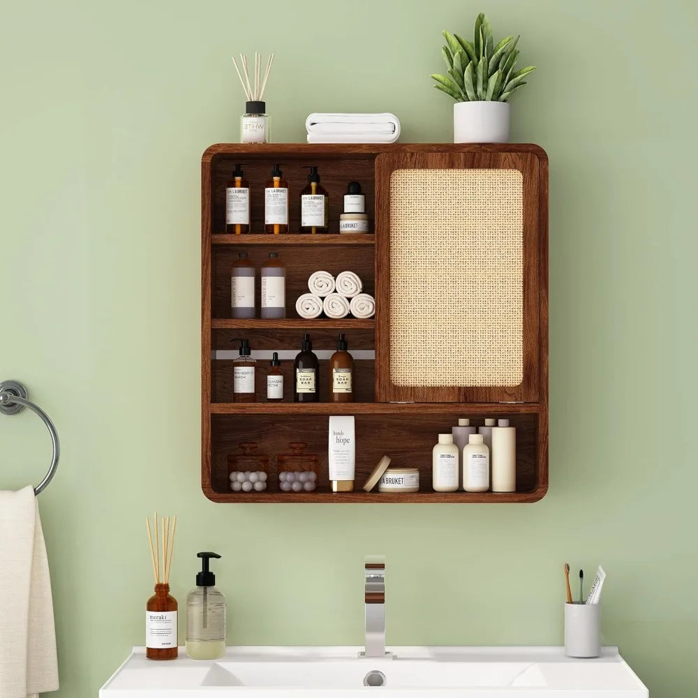 1 * Wall Hanging Wood Medicine Bathroom Cabinet with Flax Sliding Door