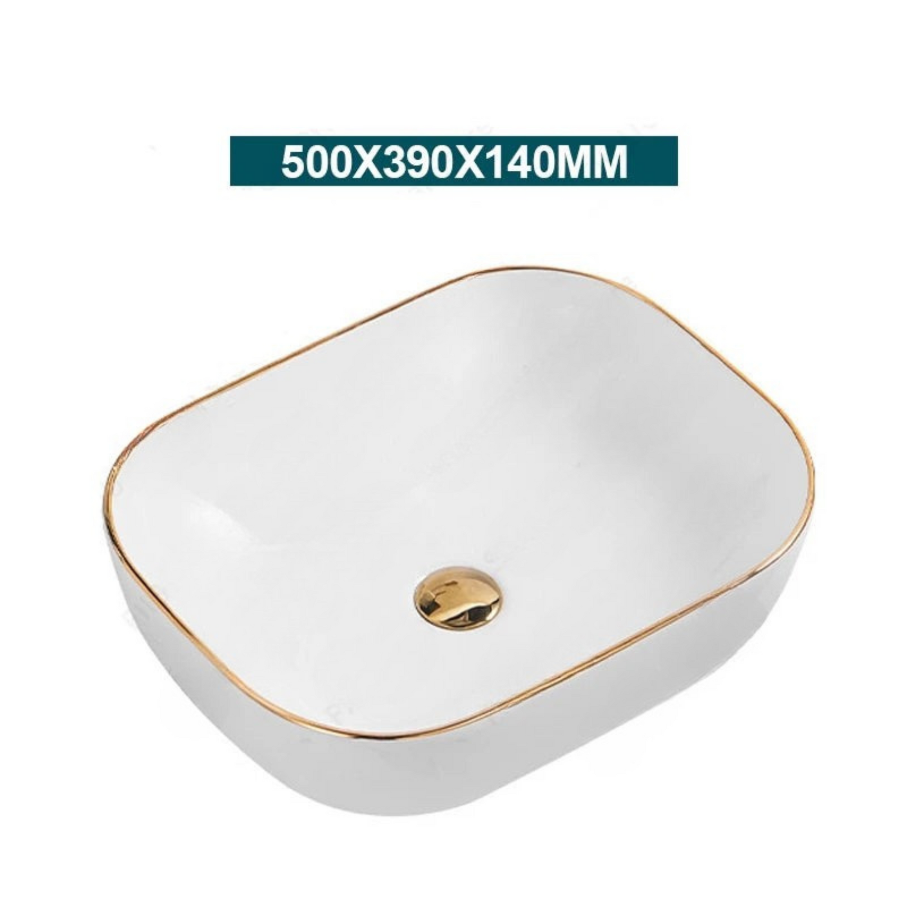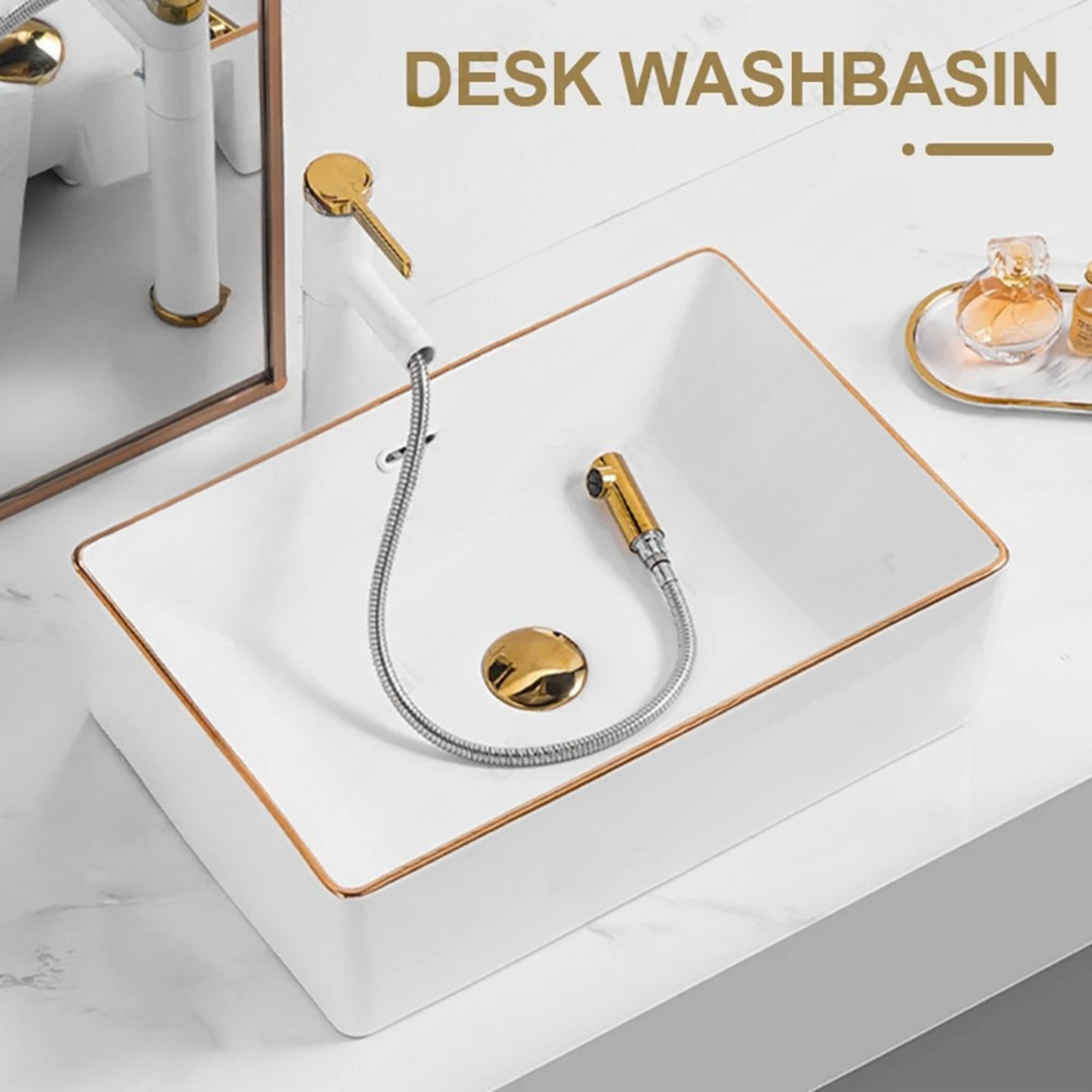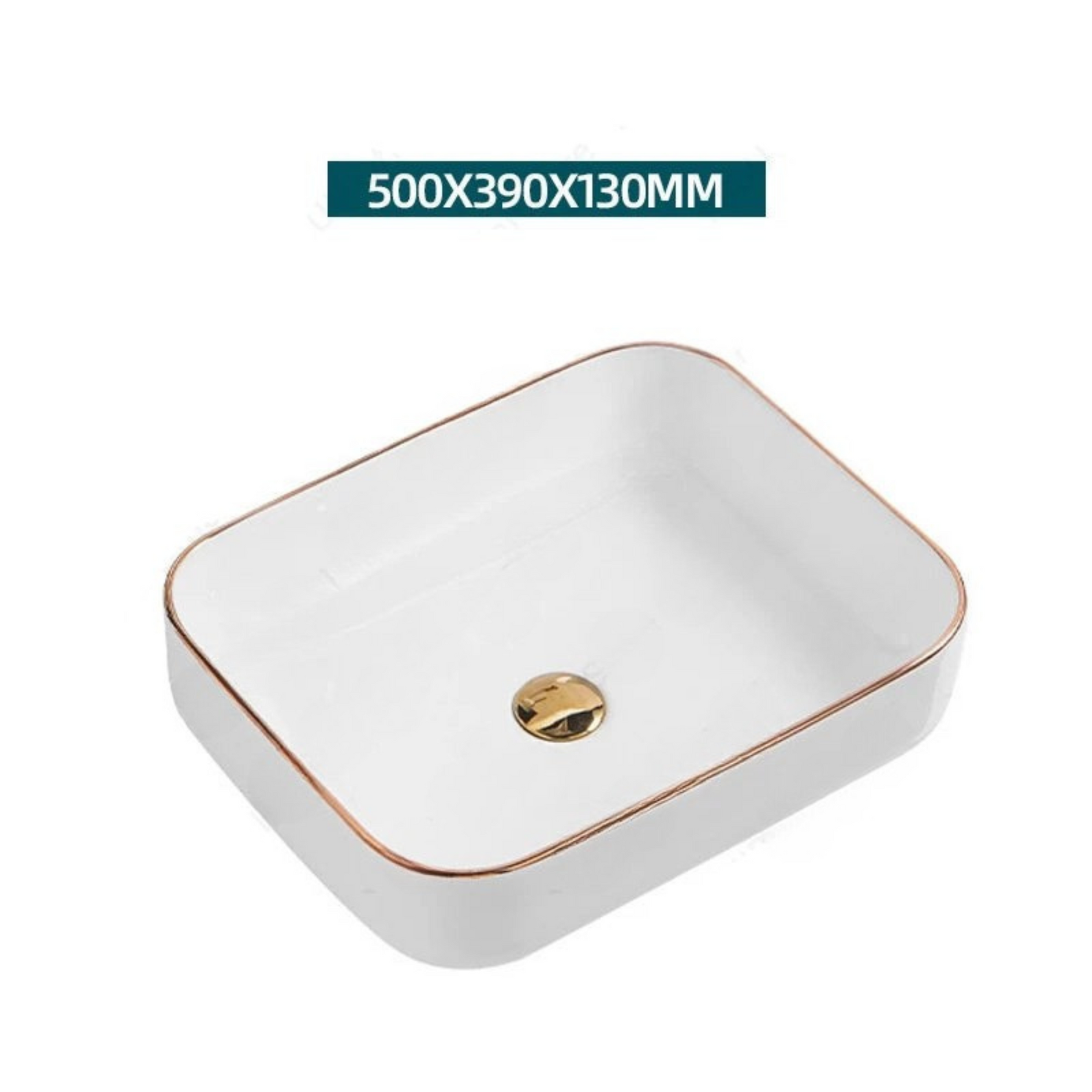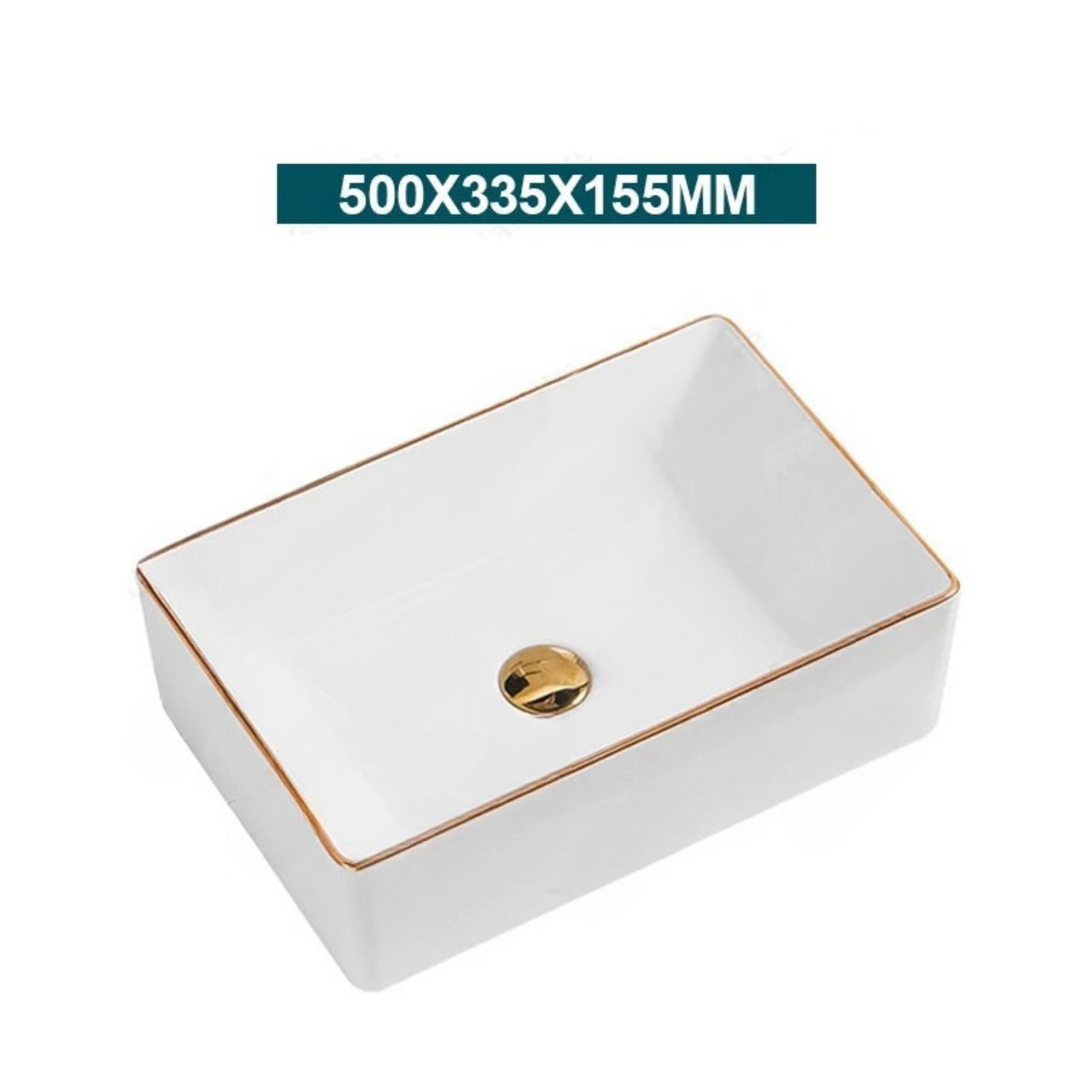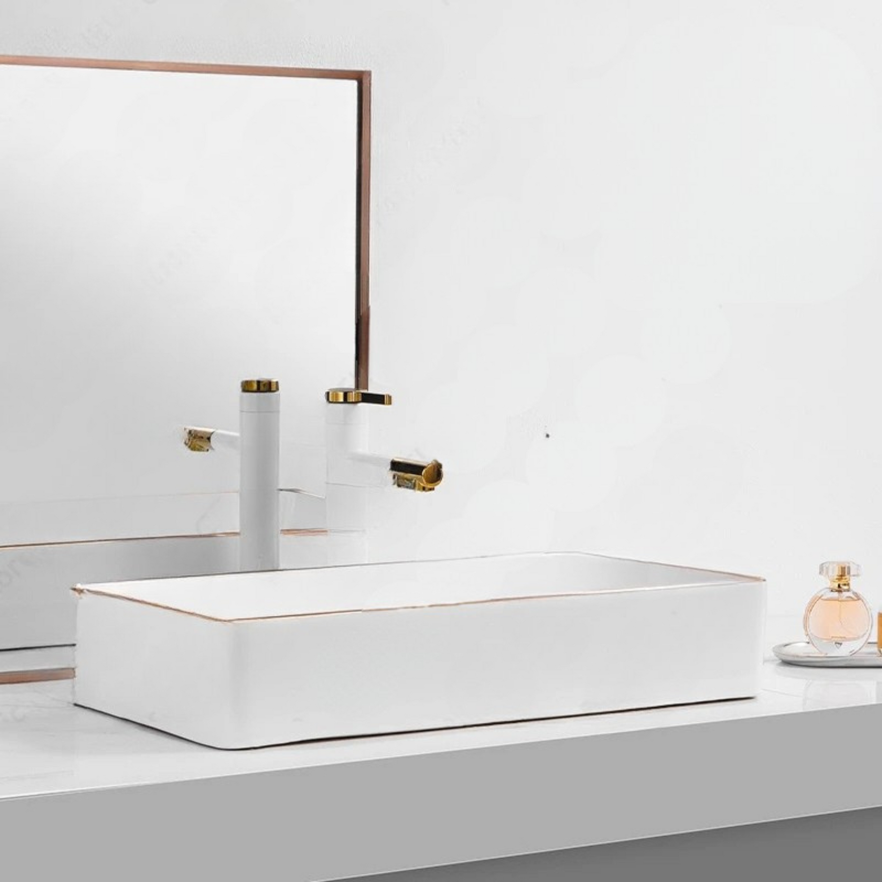 Ceramic Bathroom Vessel Sink with Gold Edge Countertop Vanity Sink