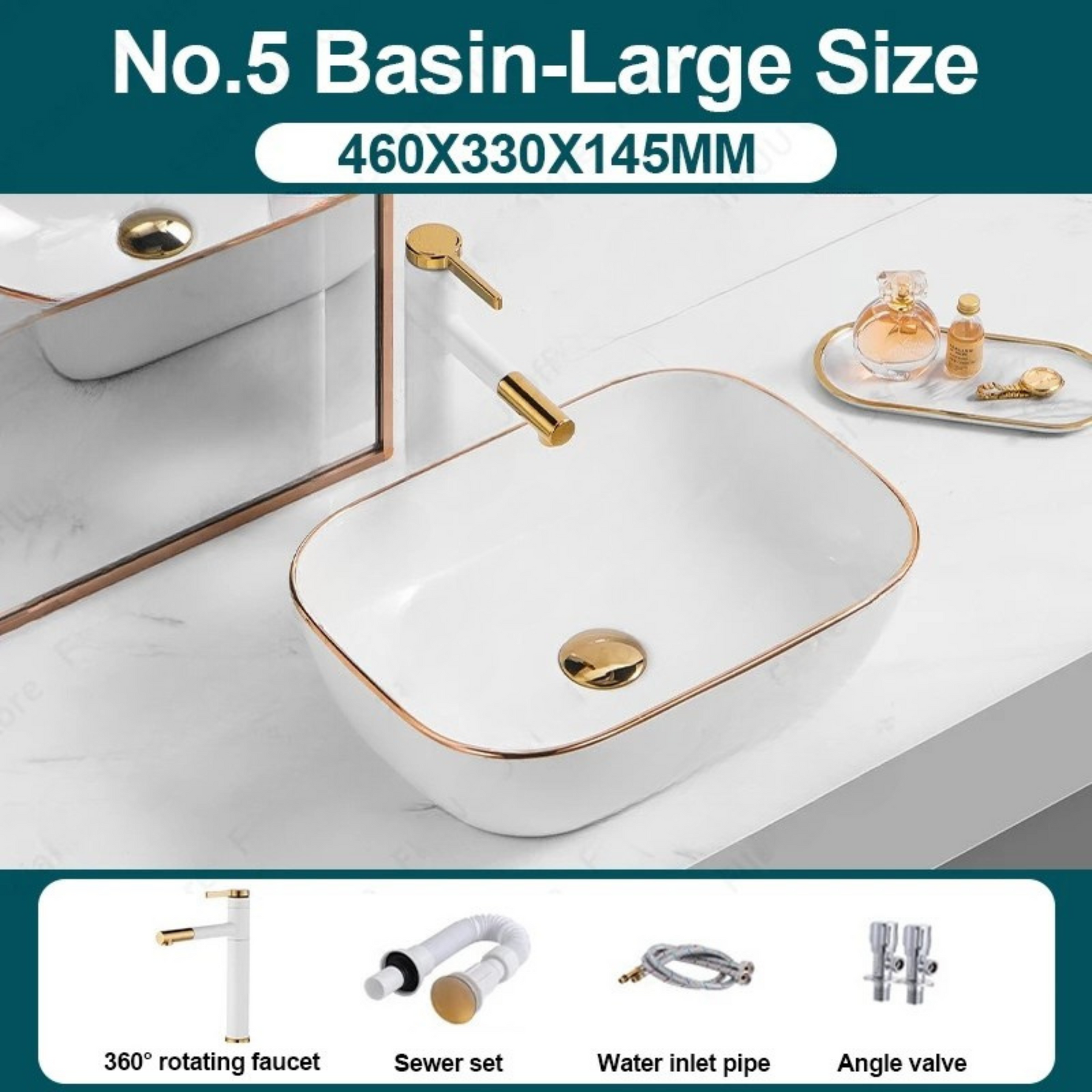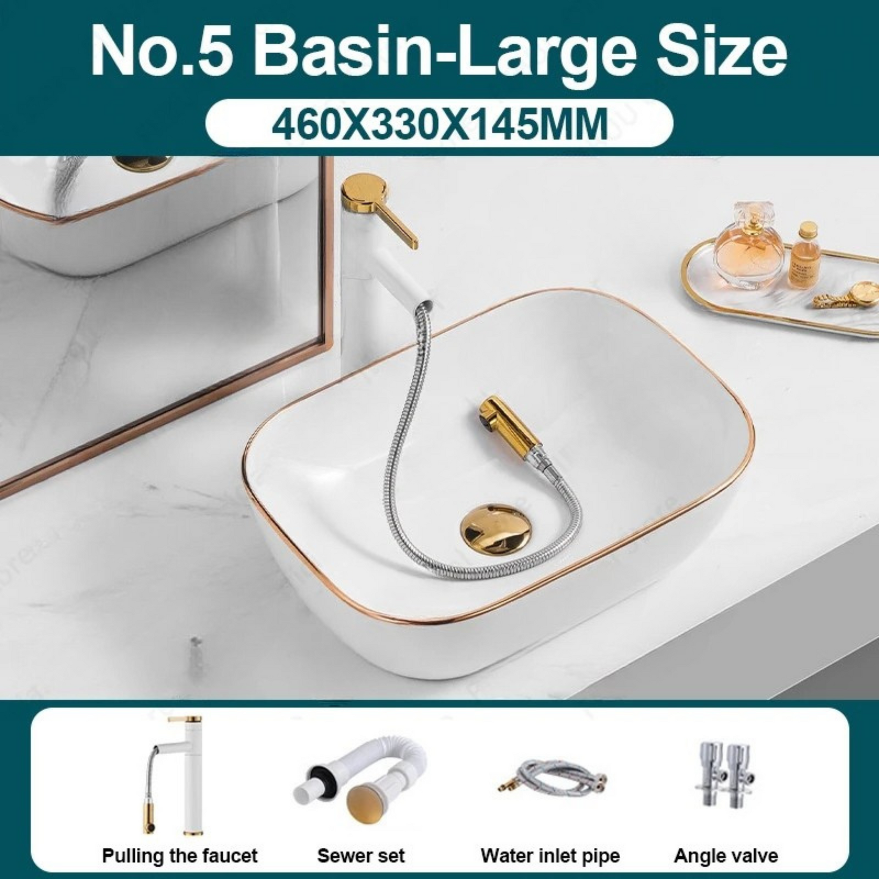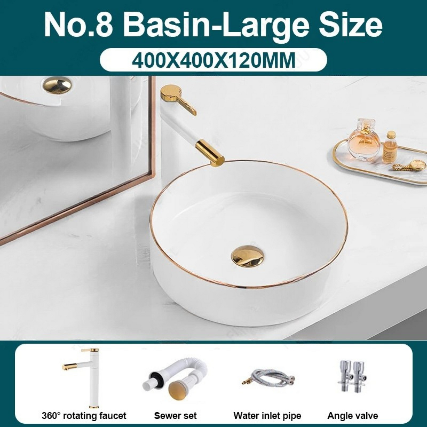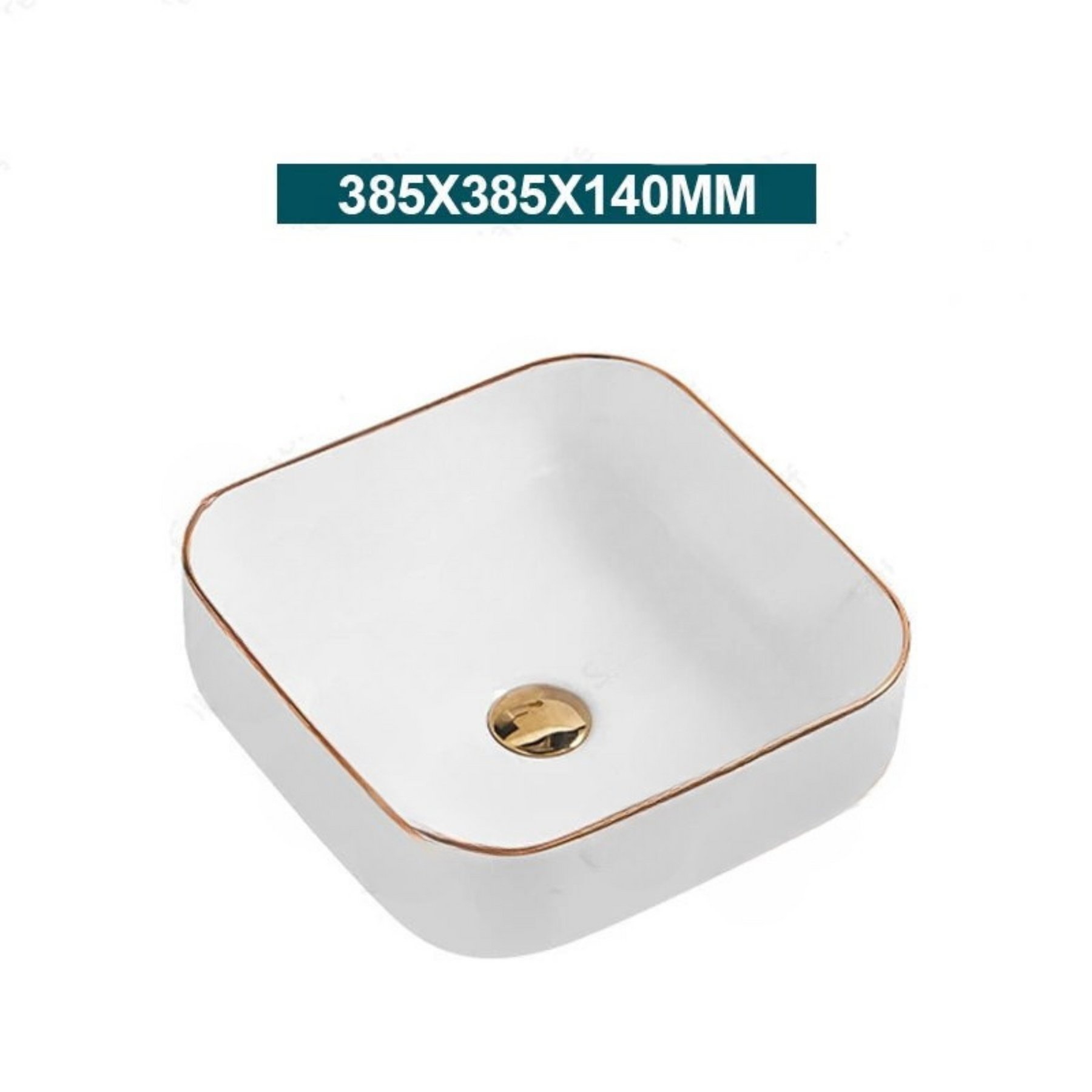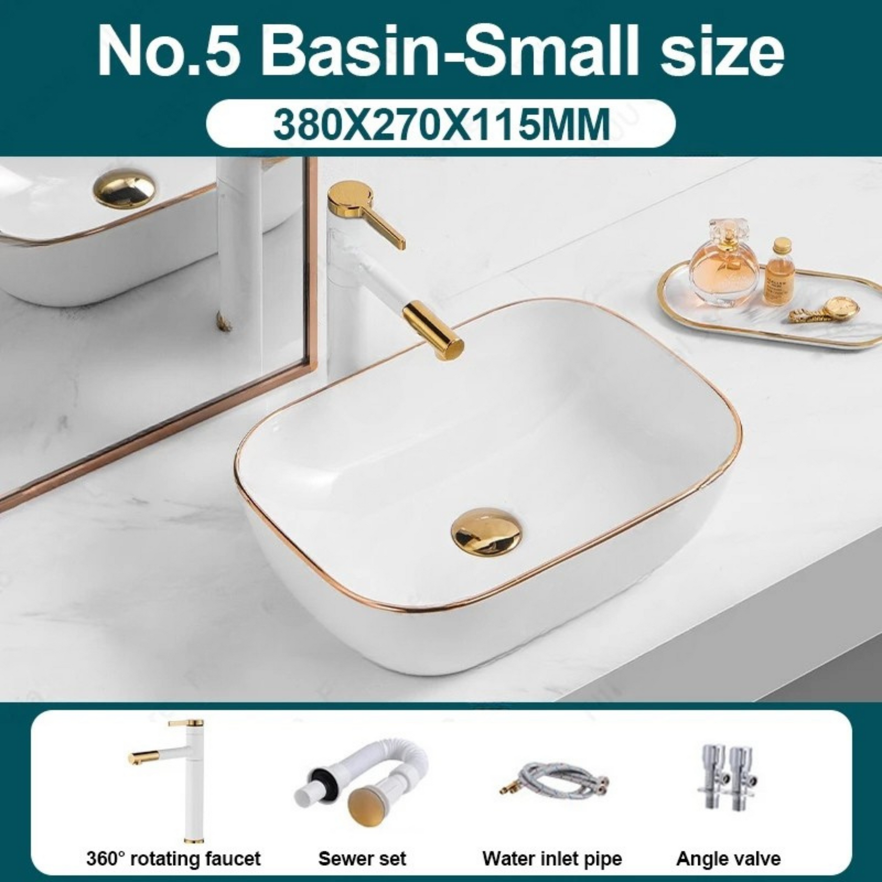 Ceramic Bathroom Vessel Sink with Gold Edge Countertop Vanity Sink