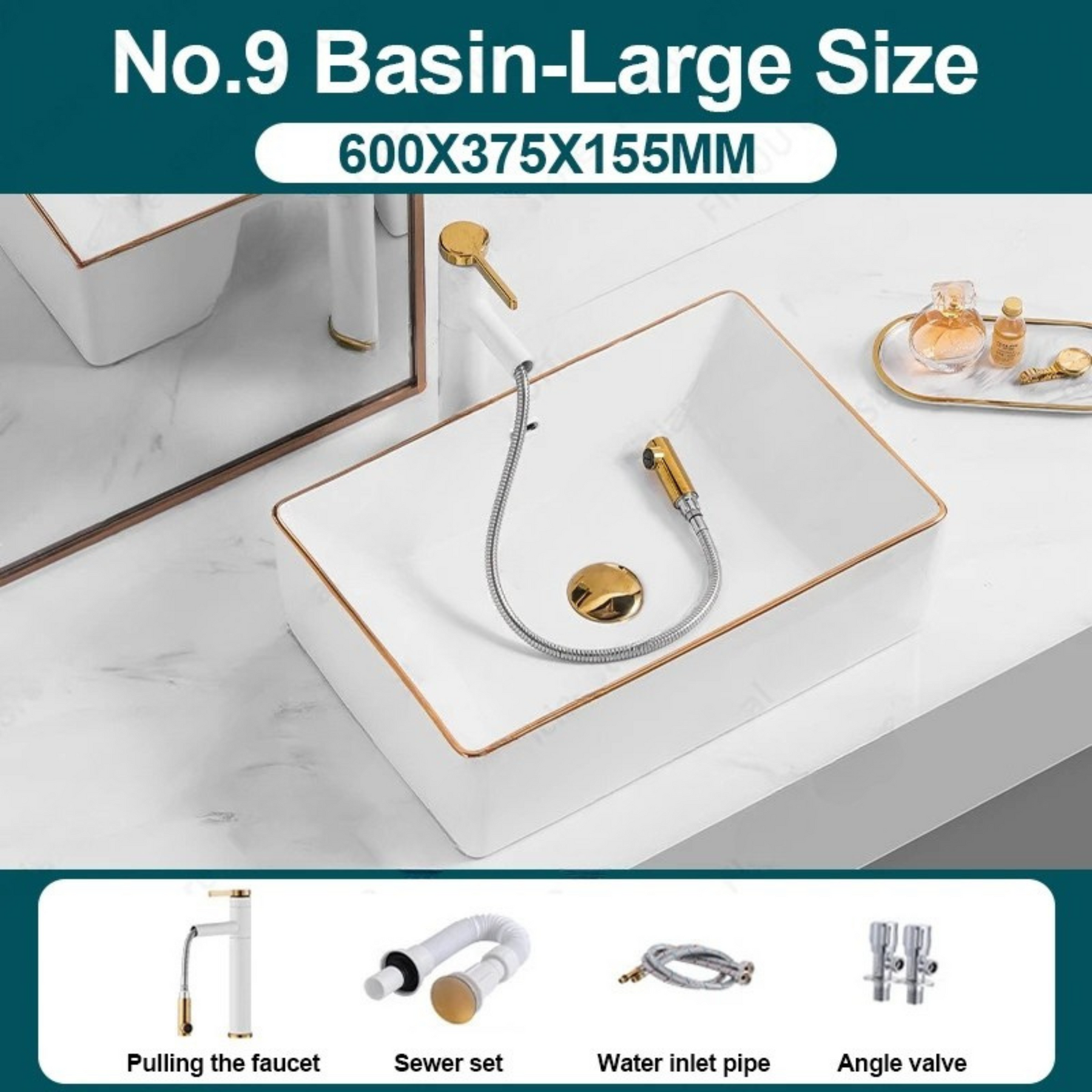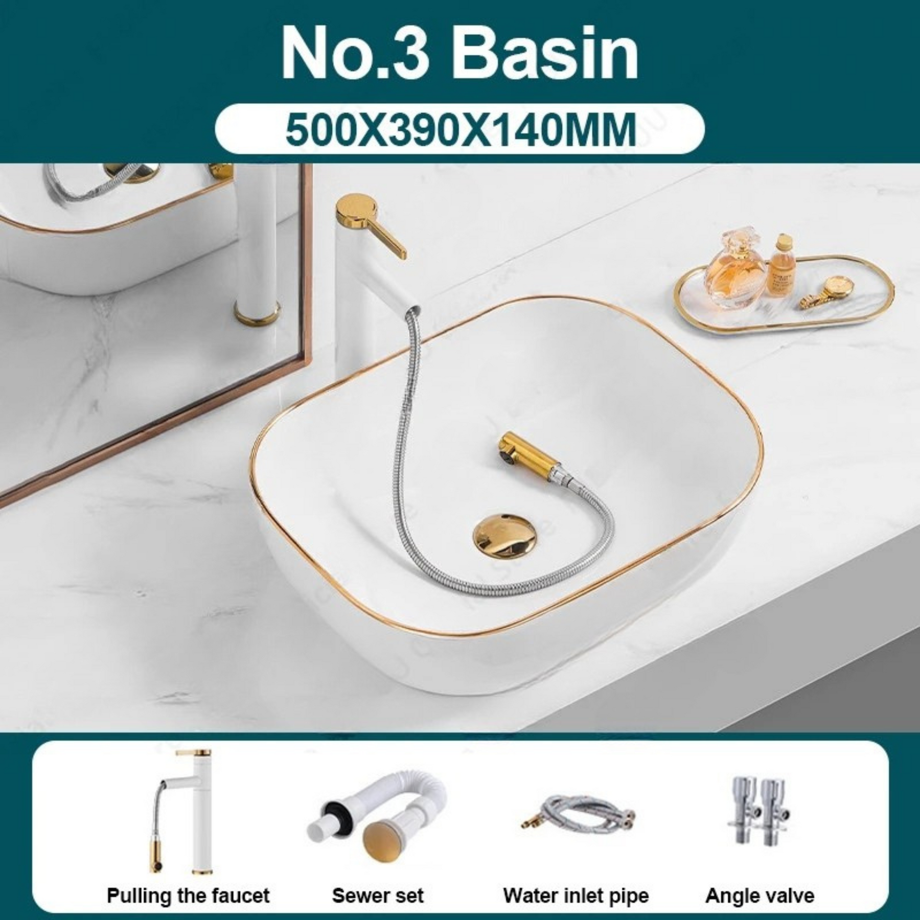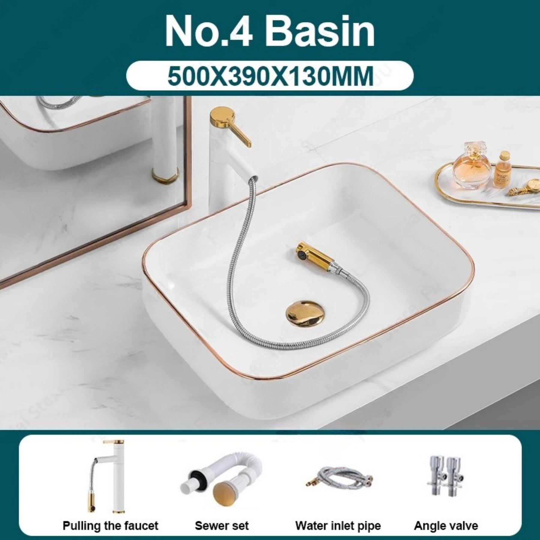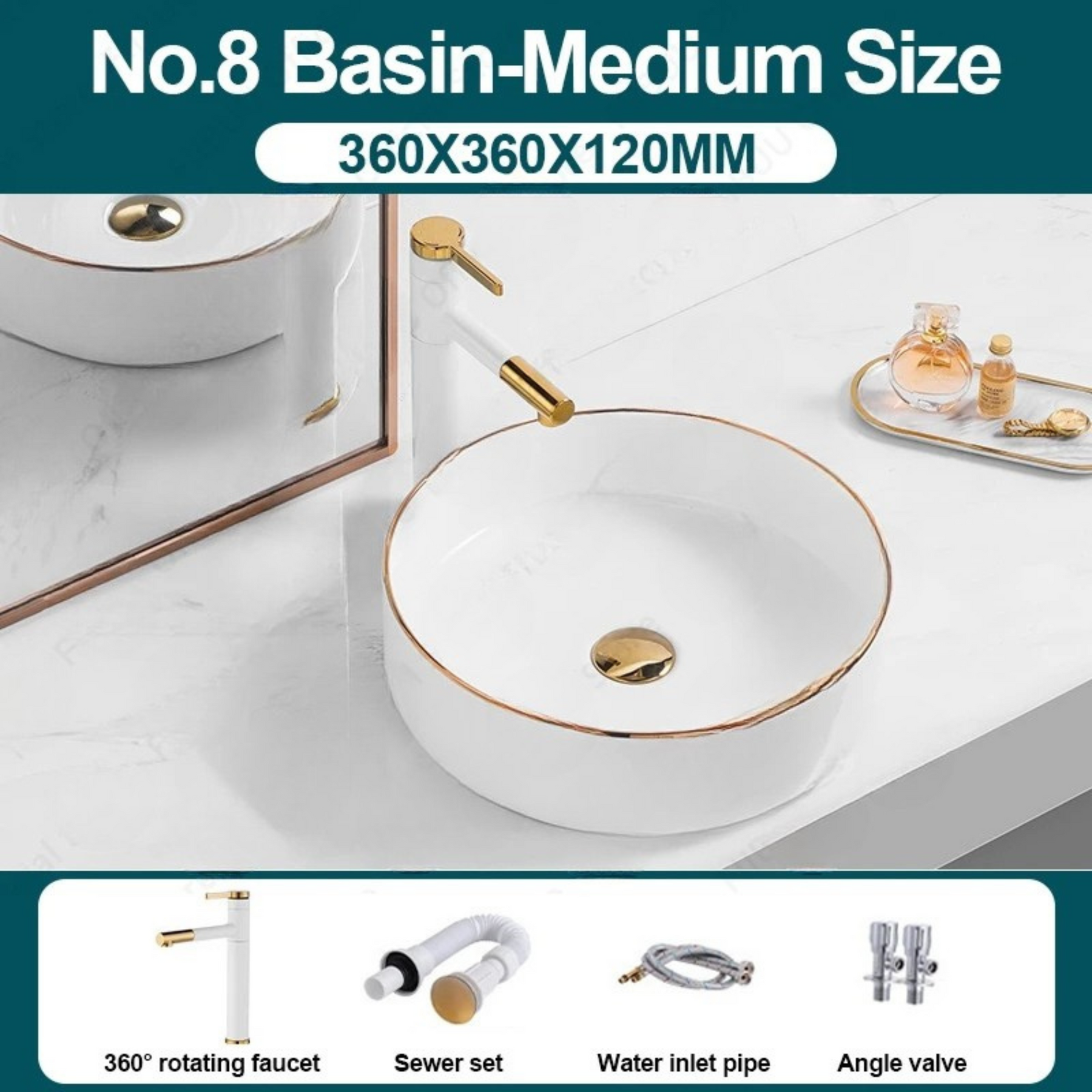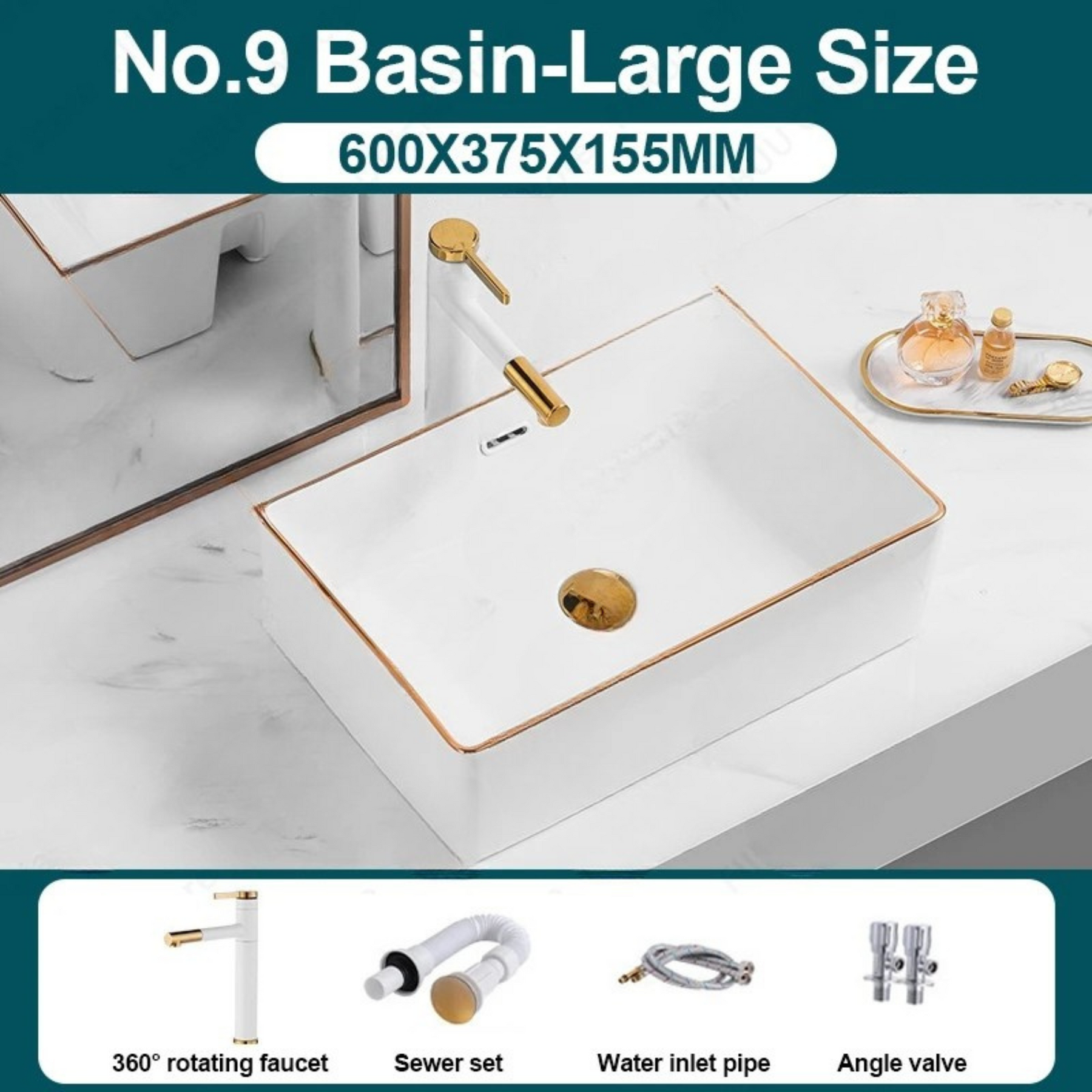 Ceramic Bathroom Vessel Sink with Gold Edge Countertop Vanity Sink