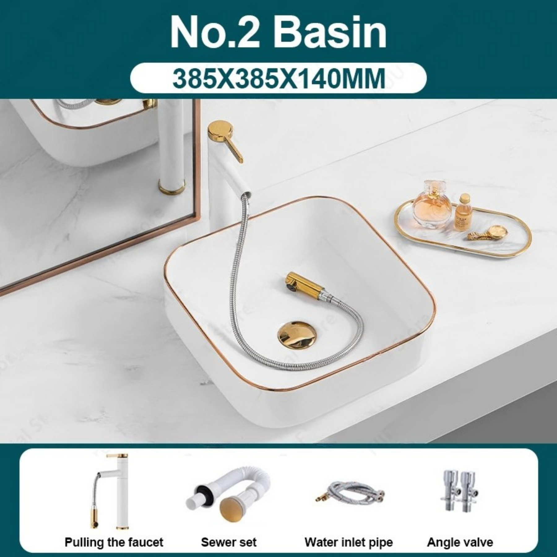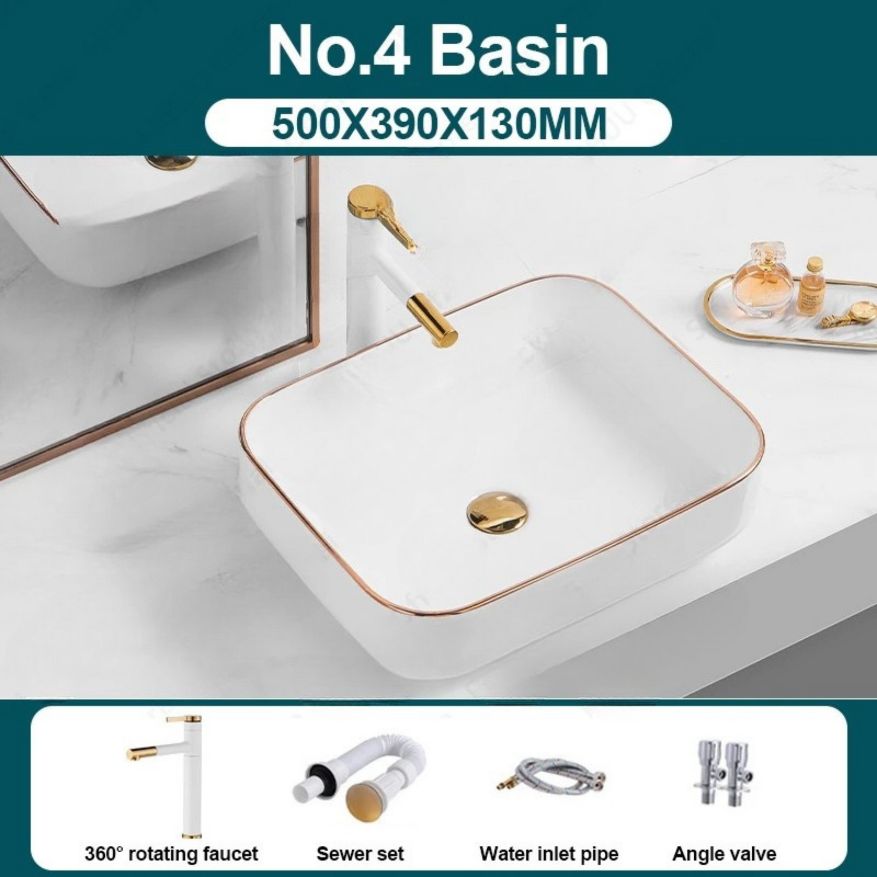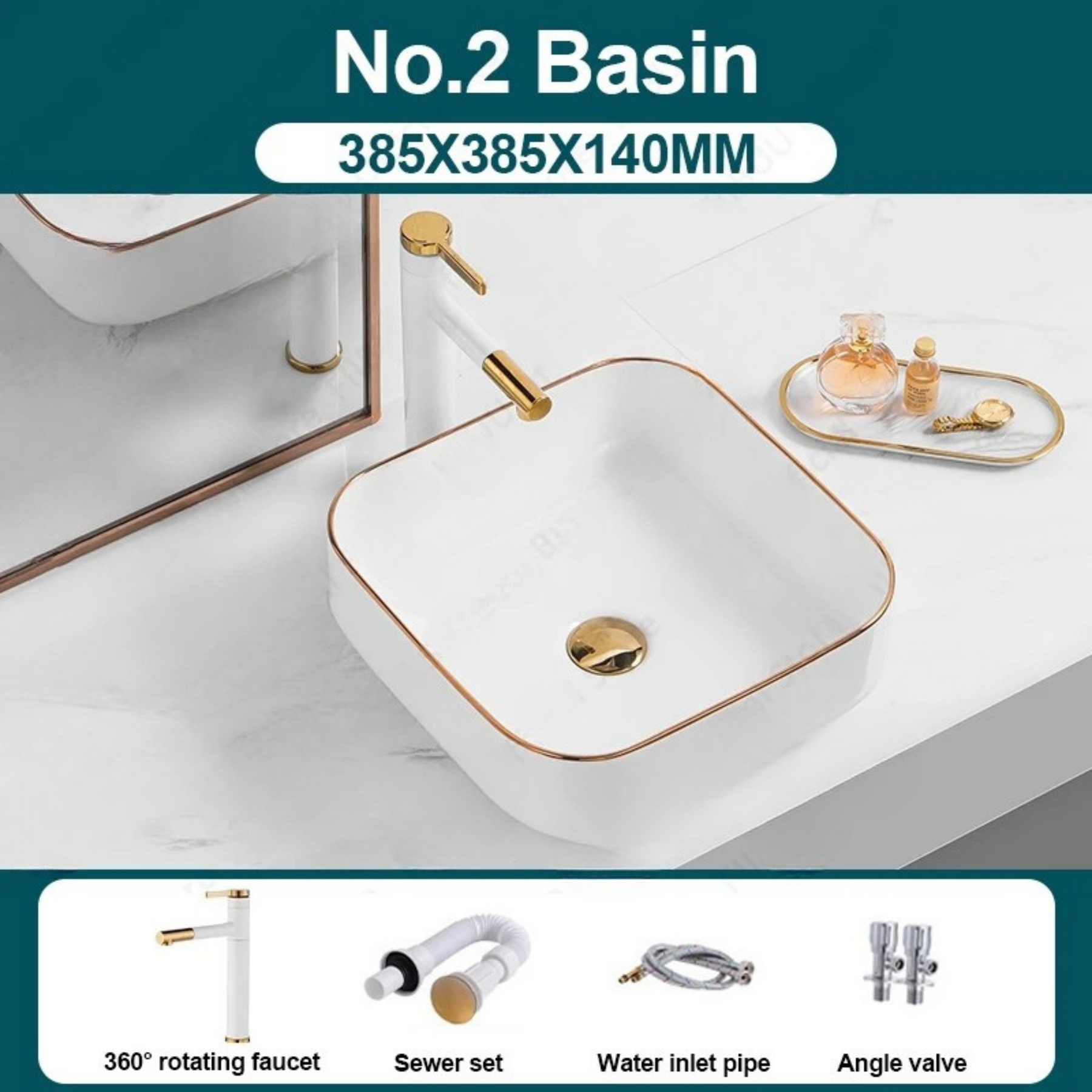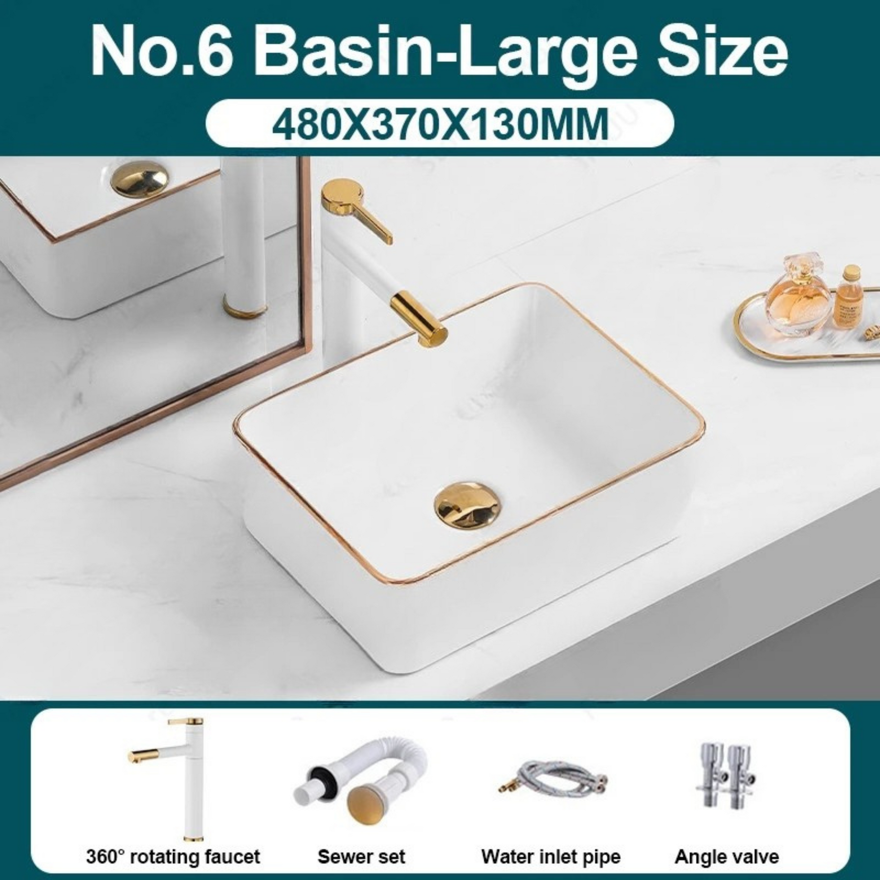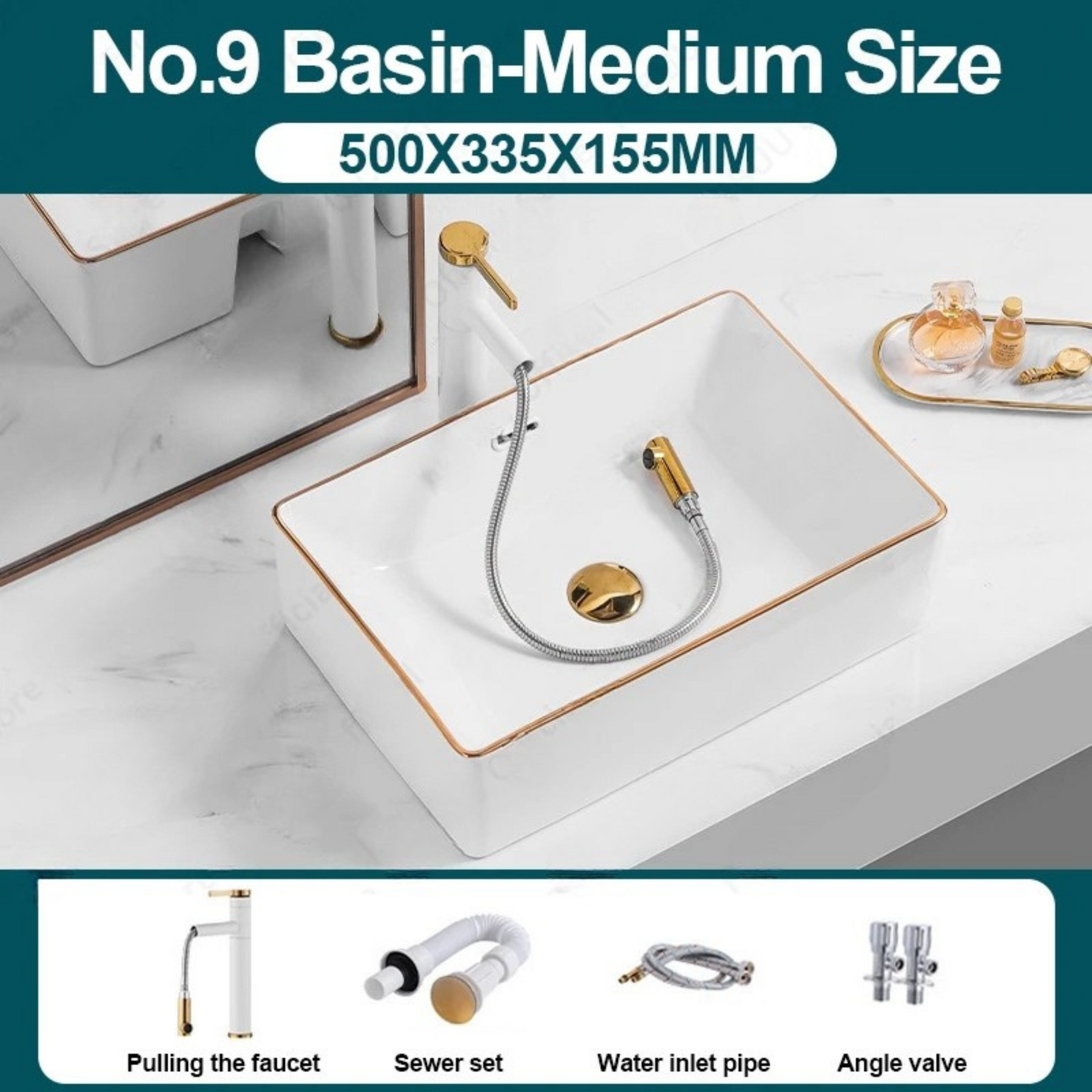 Ceramic Bathroom Vessel Sink with Gold Edge Countertop Vanity Sink