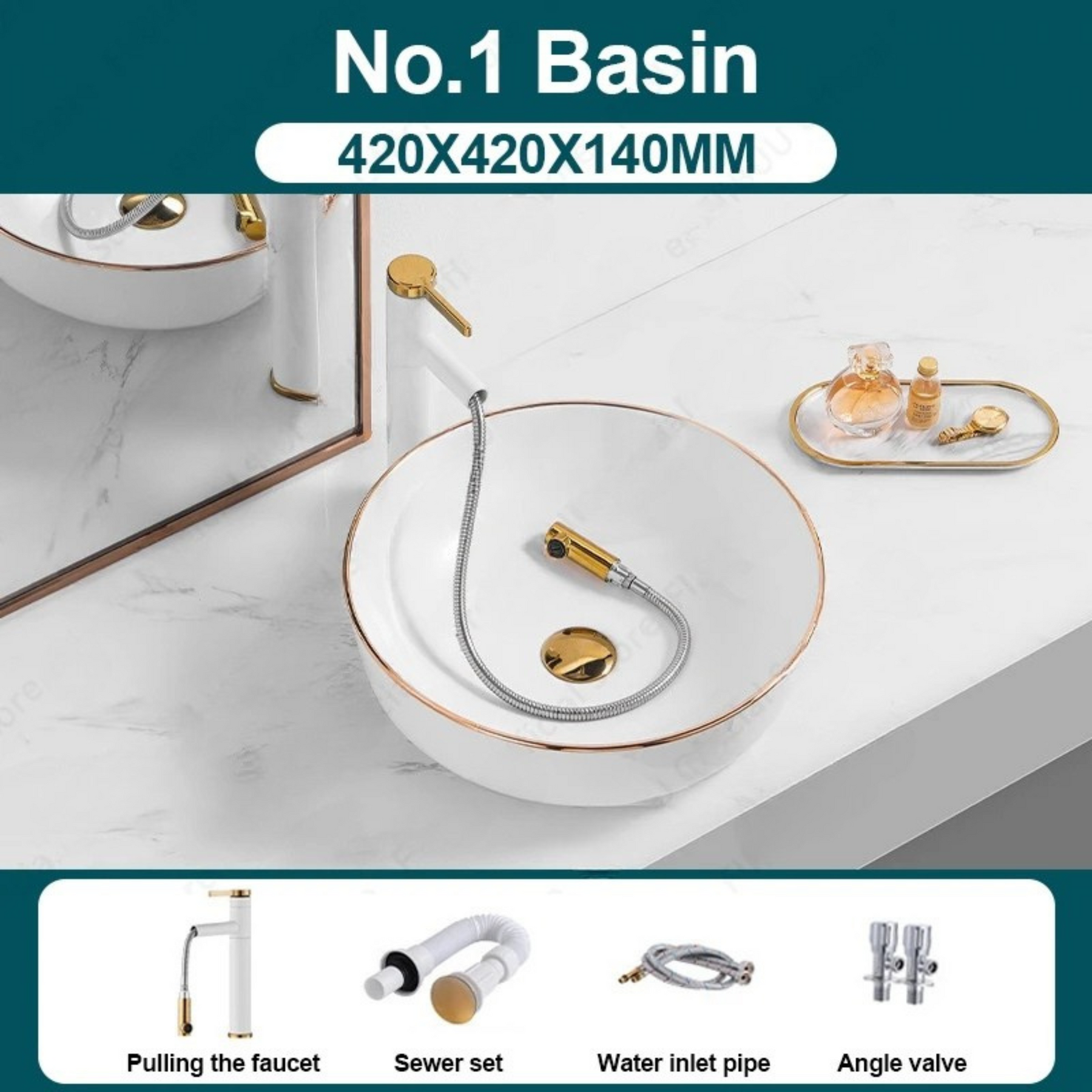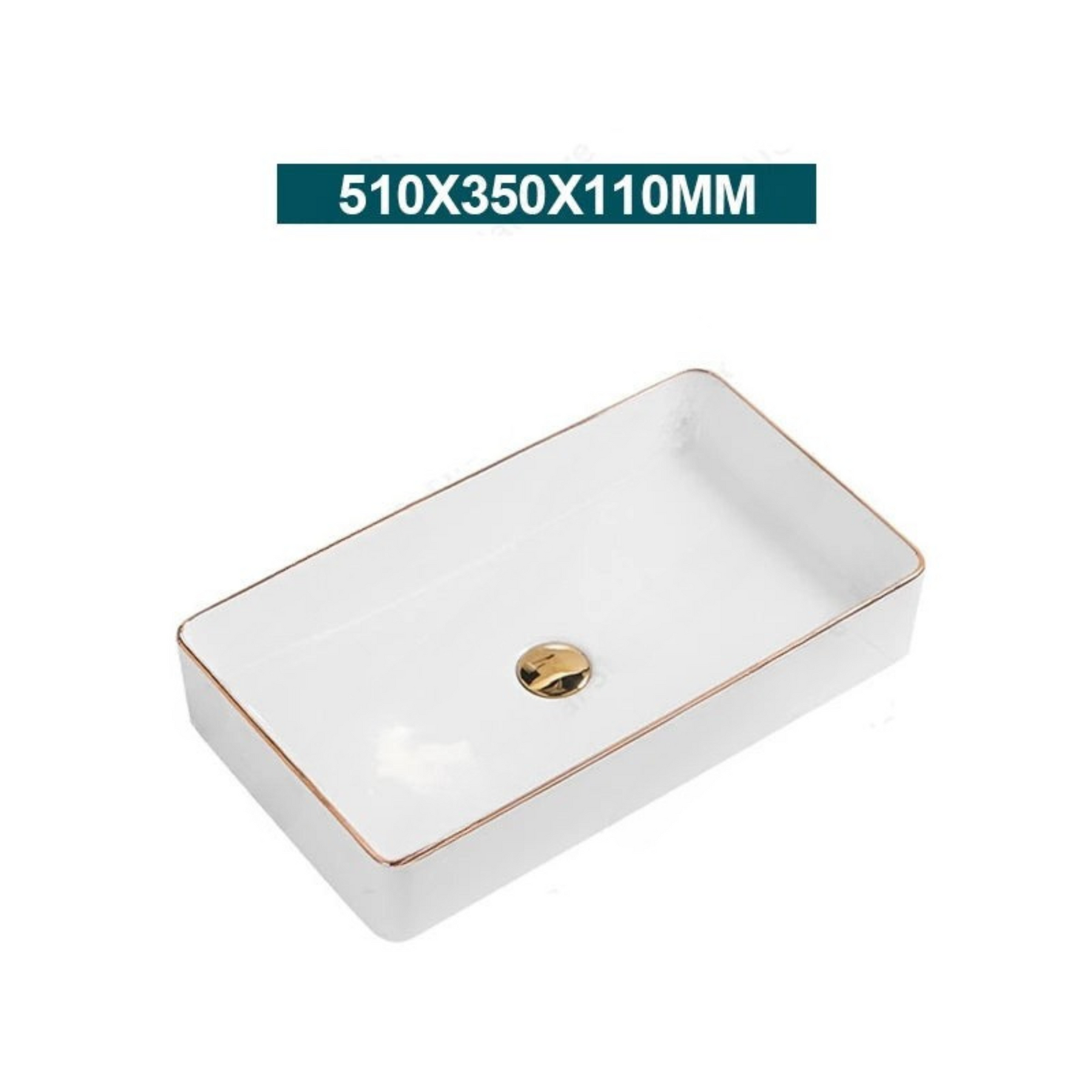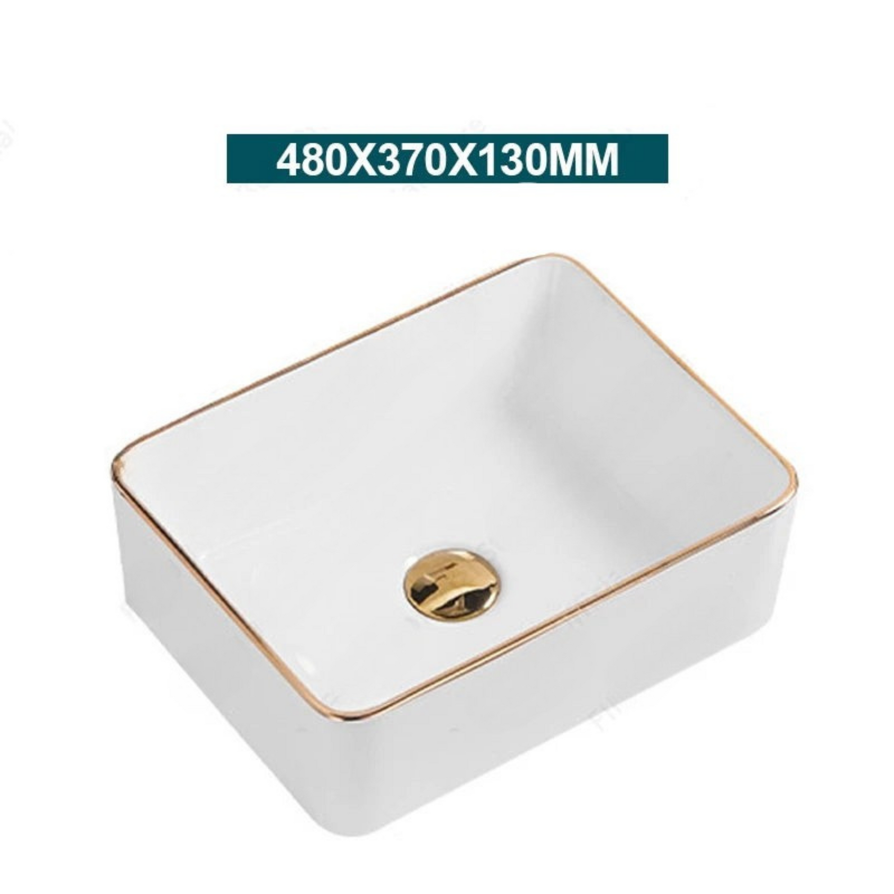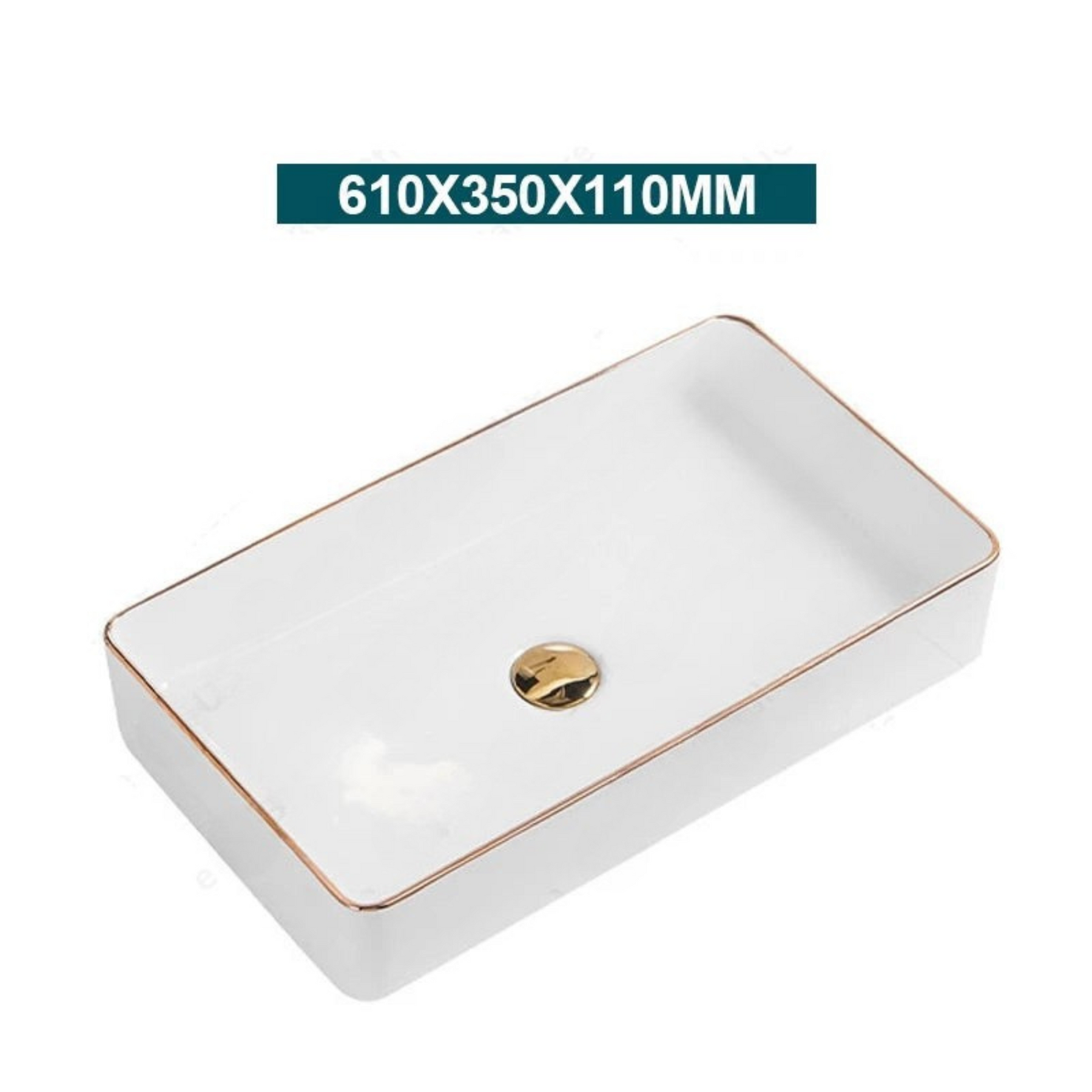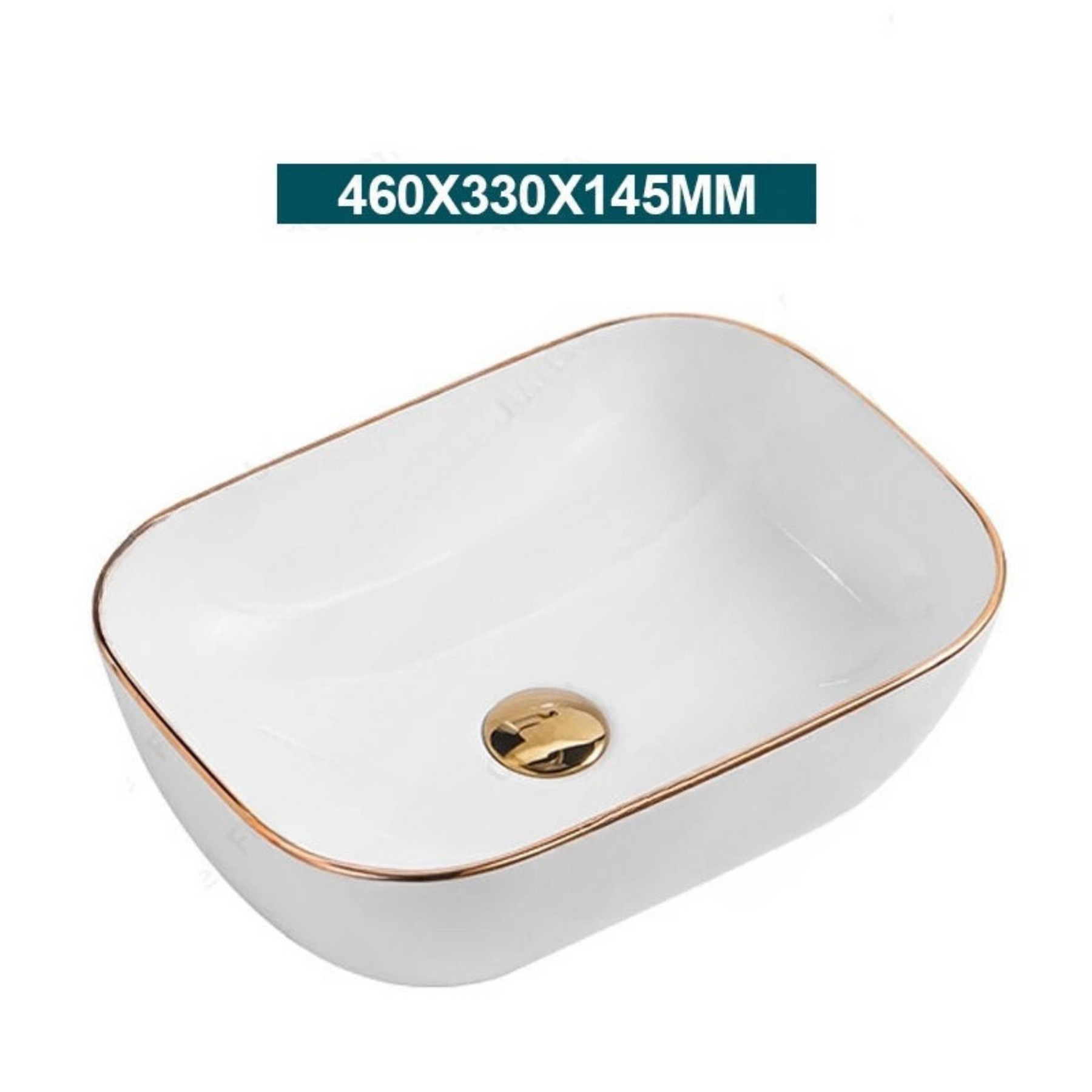 1 * Ceramic Bathroom Vessel Sink with Gold Edge Countertop Vanity Sink