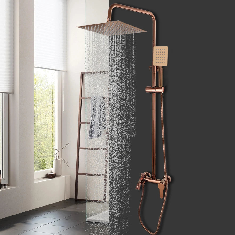 Brass Rainfall Shower System Wall Mounted Bathtub Faucet Combo Set