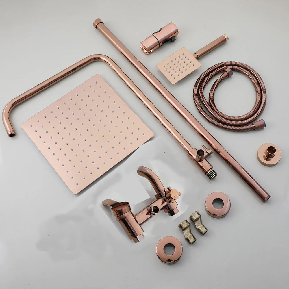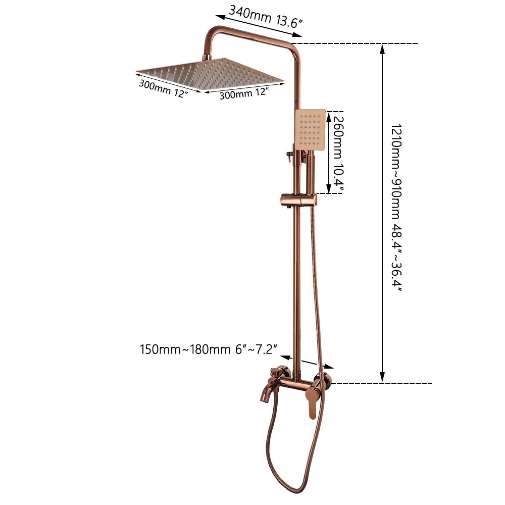Height Adjustable Brass Rain Shower System Set with Handheld Spray