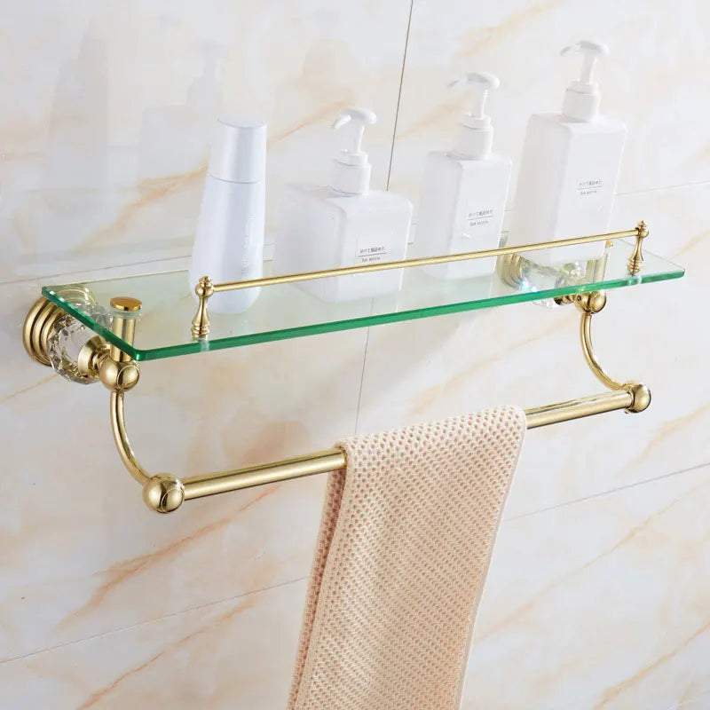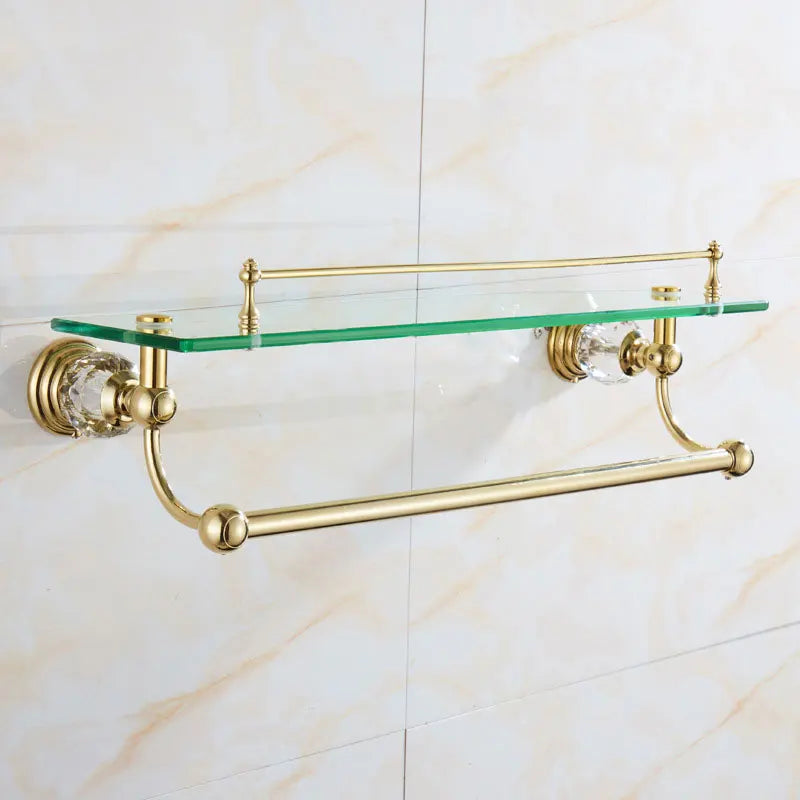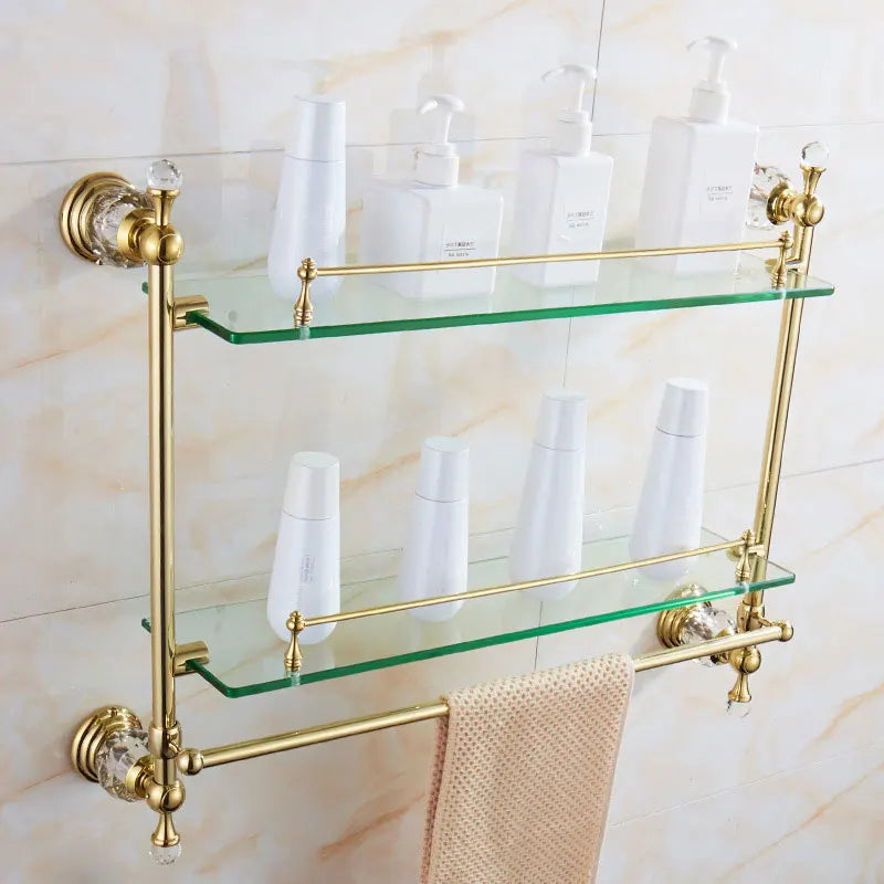 European Bathroom Towel Rack Brass Glass Double Shelf Cosmetic Rack