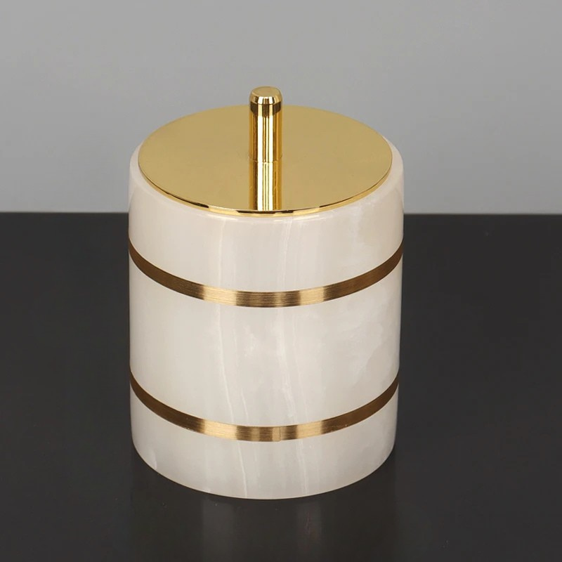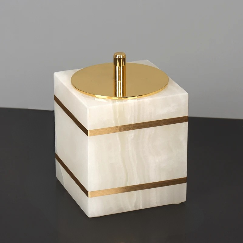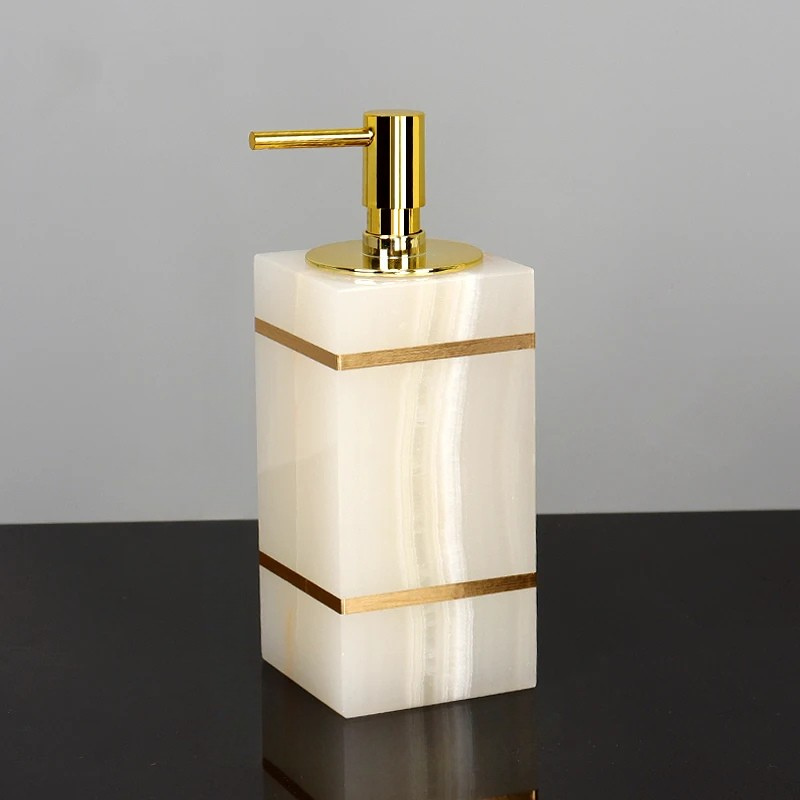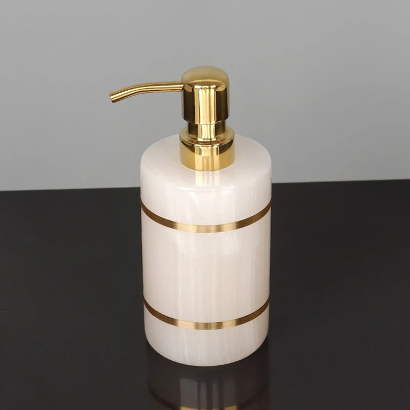 Gold White Onyx Natural Marble Dispenser Bathroom Accessories