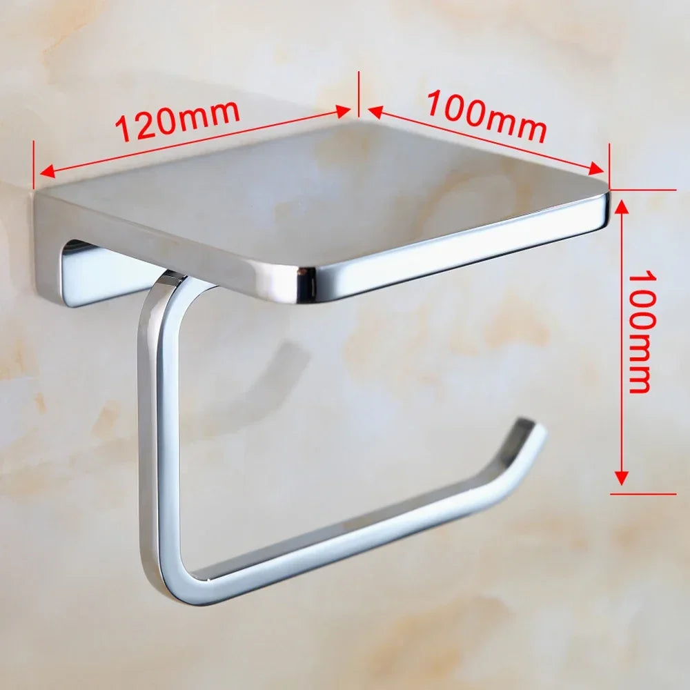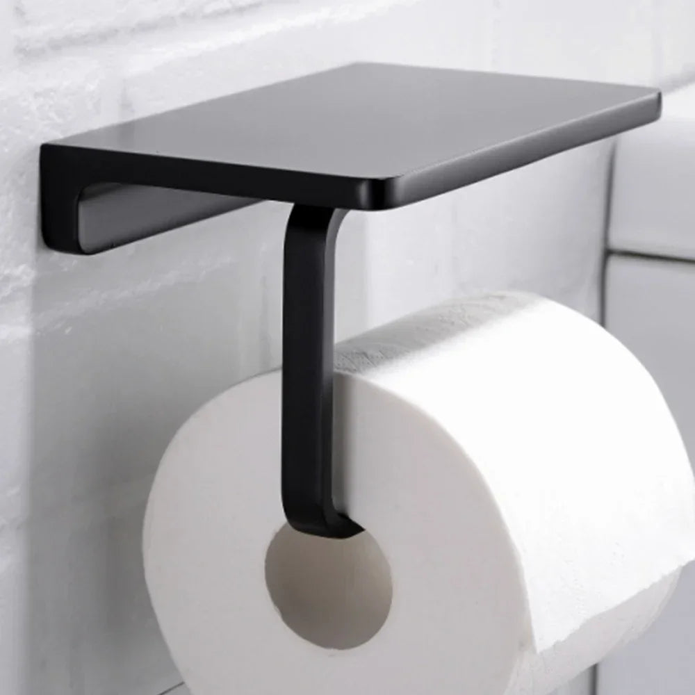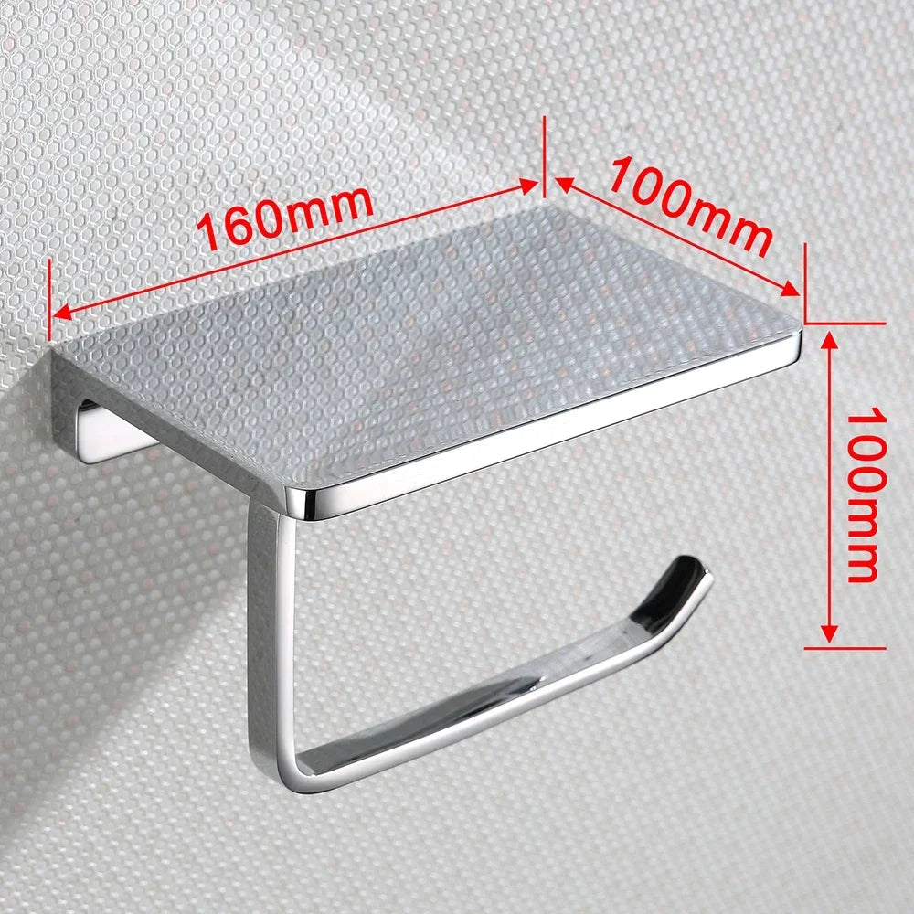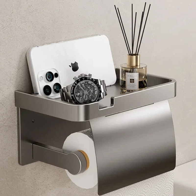 Wall-Mounted Bathroom Aluminum Tissue Holder With Mobile Phone Rack
