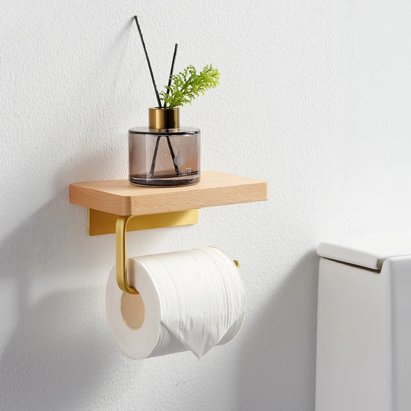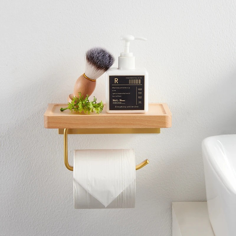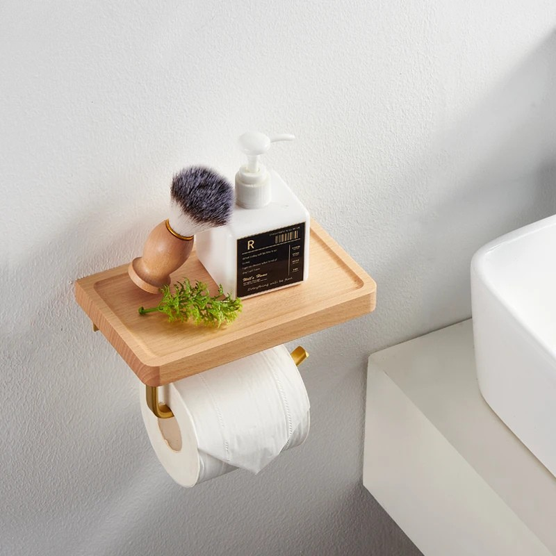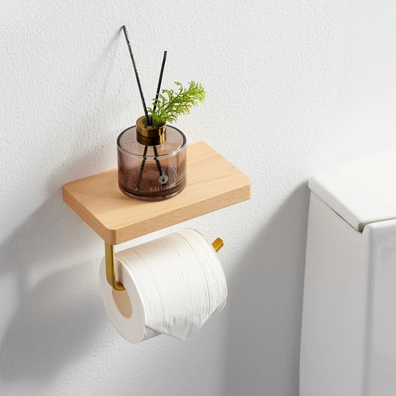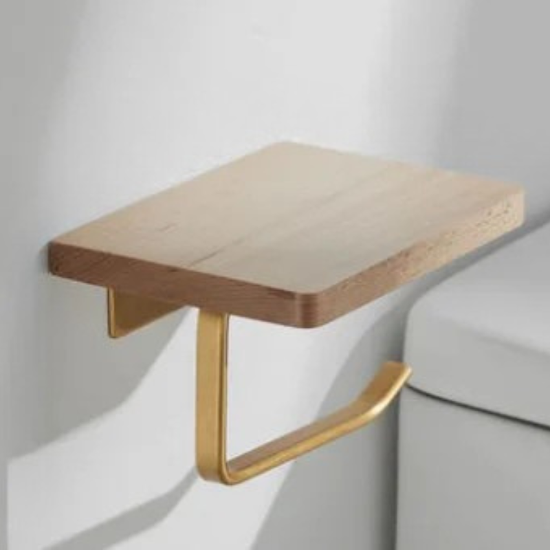 Wood Tissue Holder Wall-mounted Toilet Paper Roll Holder with Shelf