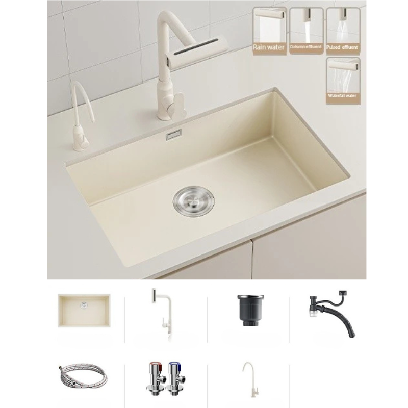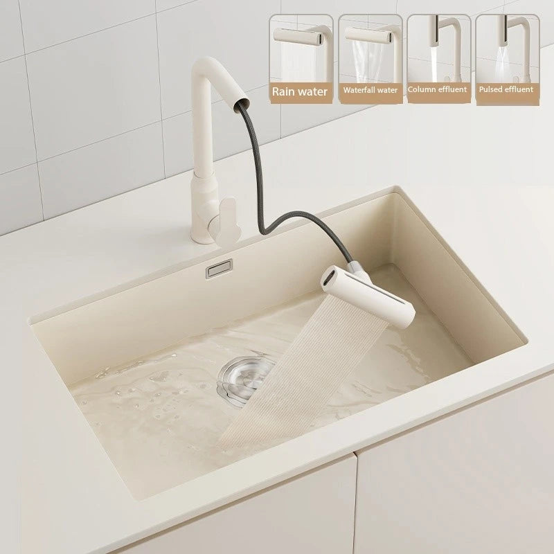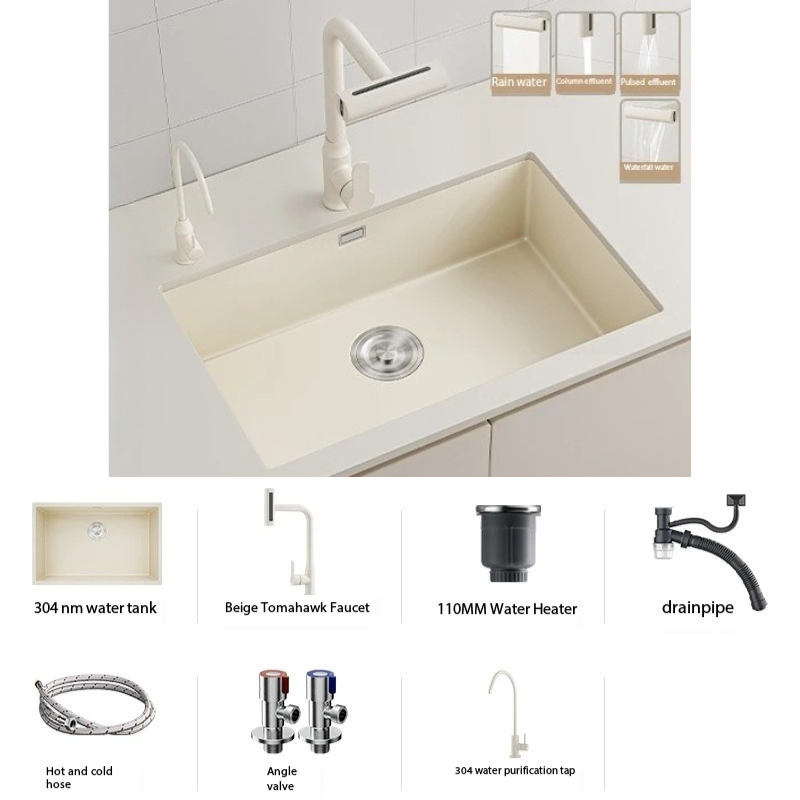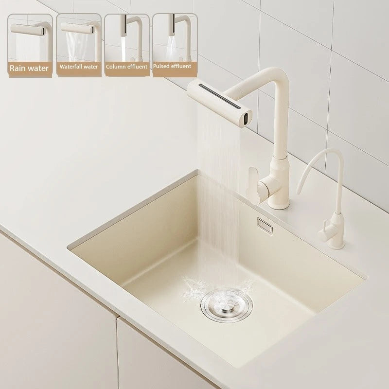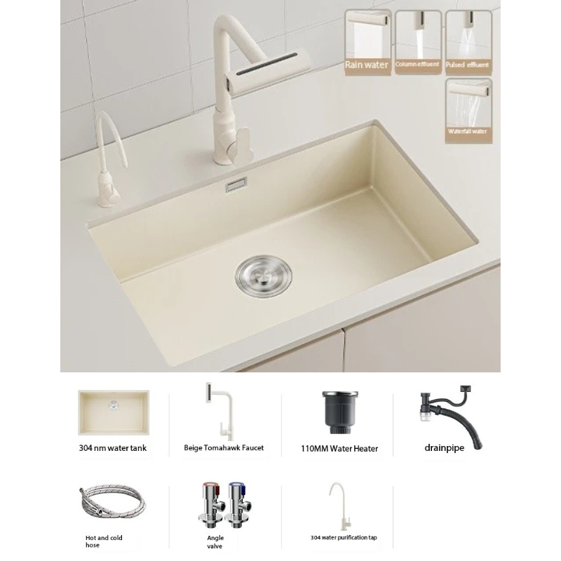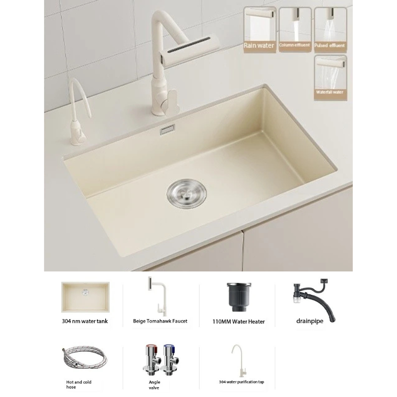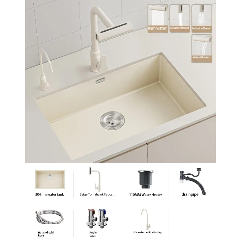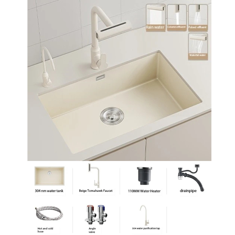 Large Single Stainless Steel Kitchen Sink with Touch Waterfall Faucet