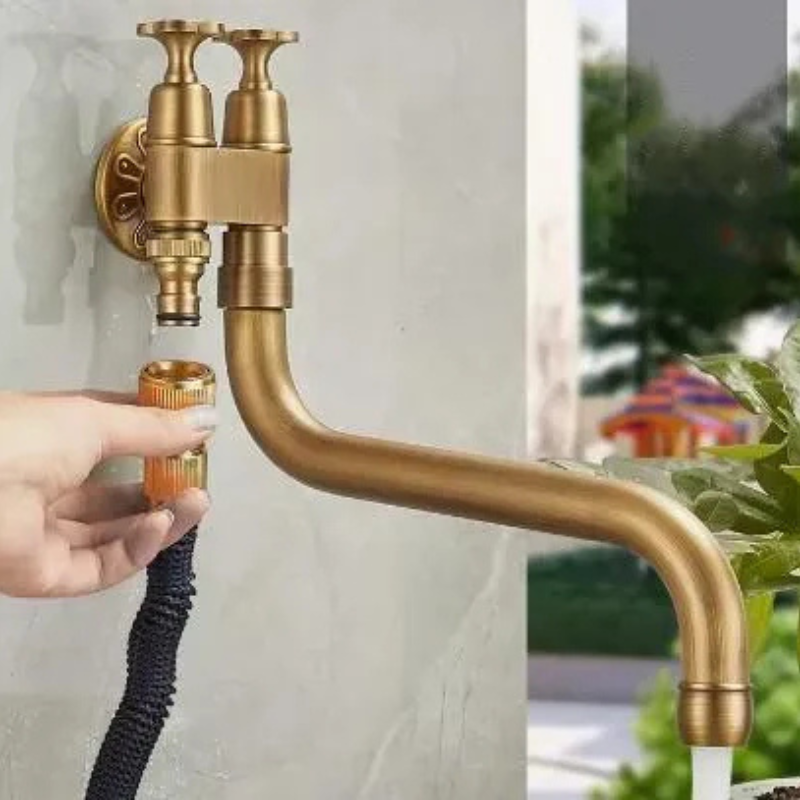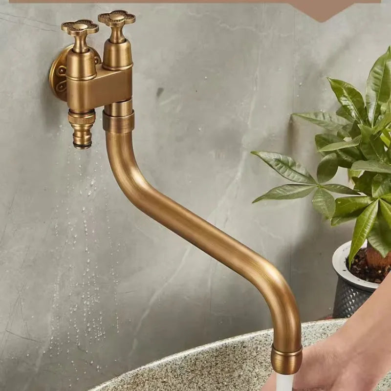Retro Brass Bibcock Faucet Wall Mount Washing Machine Outdoor Tap