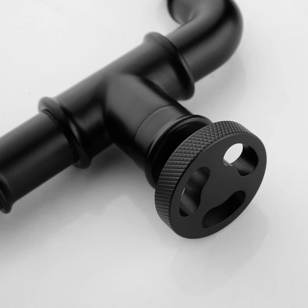 3 Hole Bathroom Stainless Steel Black Basin Faucet with Double Handle