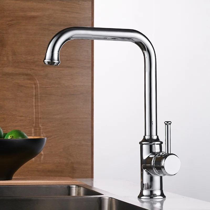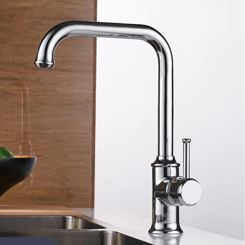 Brass Crane Kitchen Faucet Hot and Cold Water Single Hole Mixer Tap