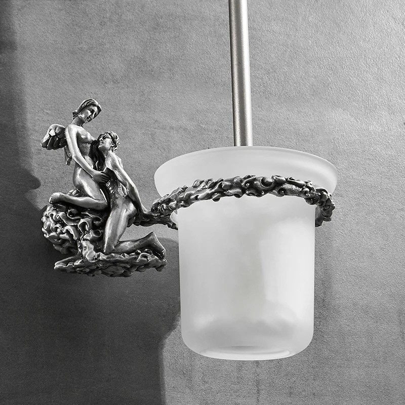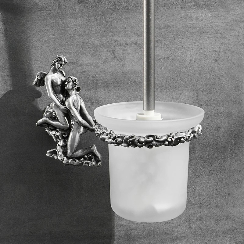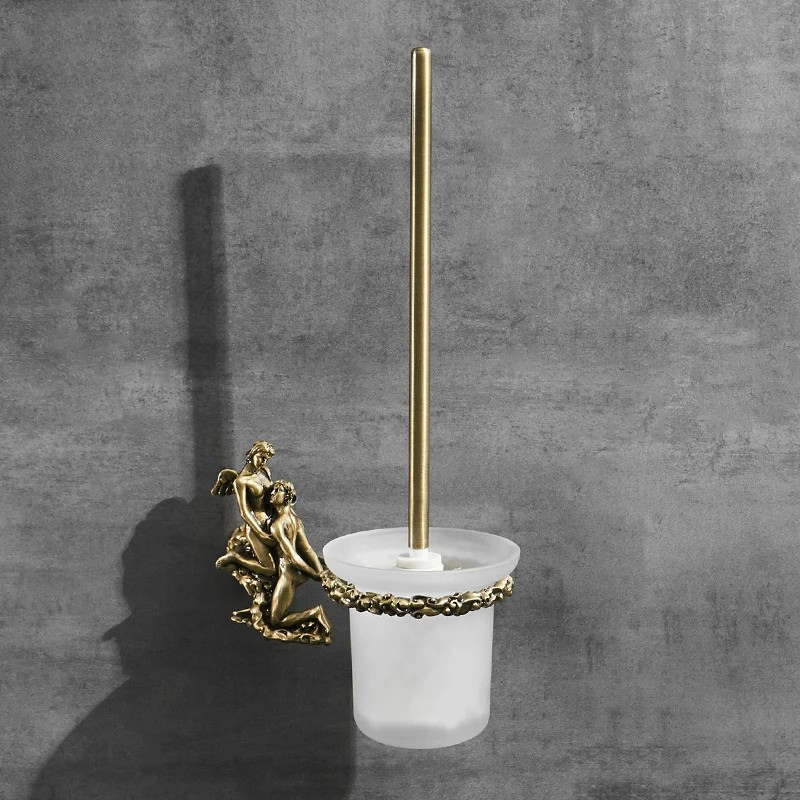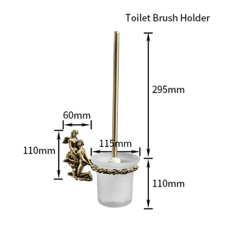 Brass Handle with Glass Cup Replaceable Brush Head Toilet Brush Holder