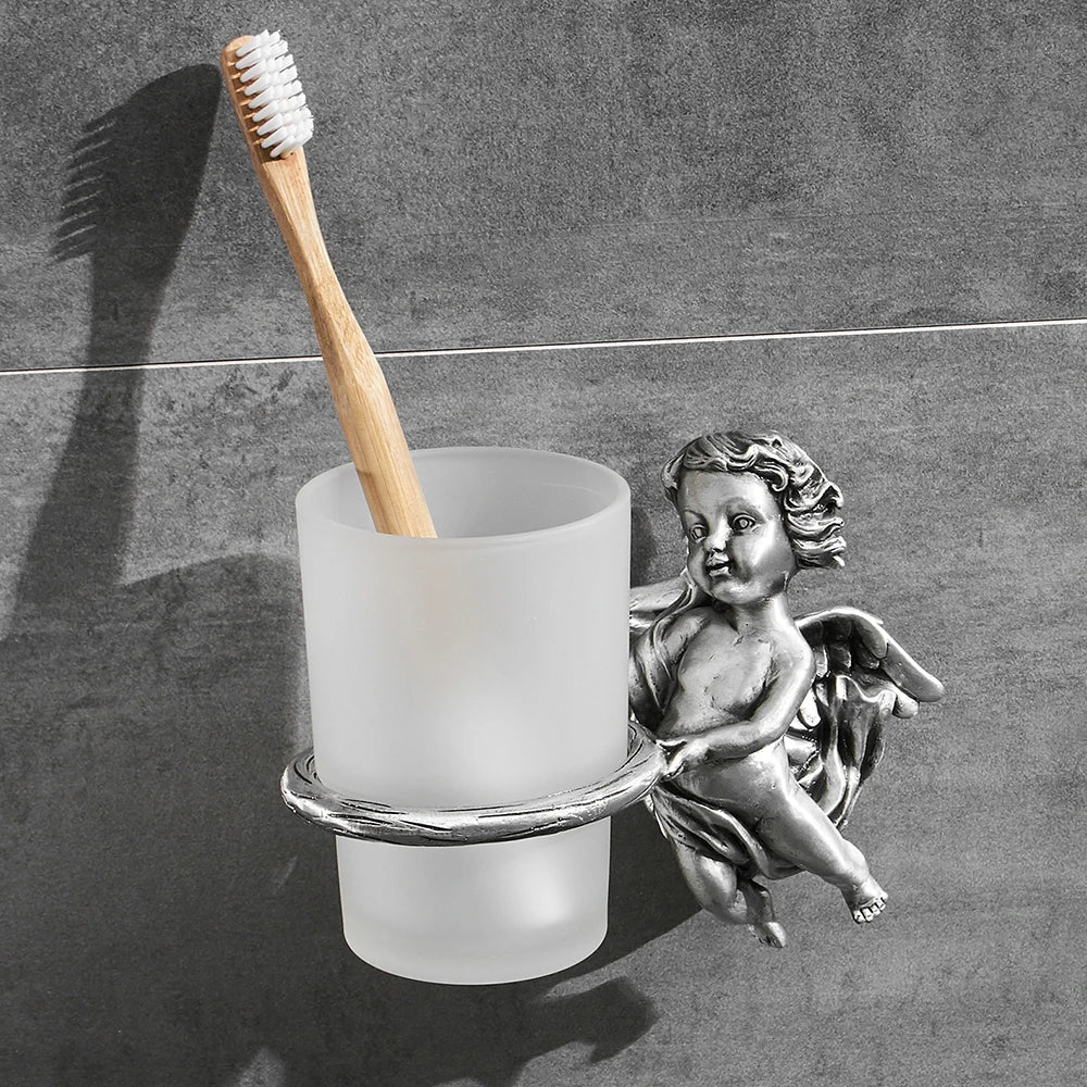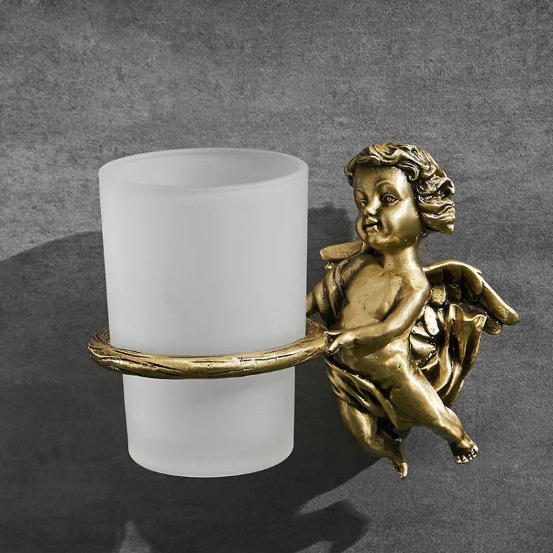 Classic Glass Toothbrush Holder Brass Angle Style Toothbrush Holder