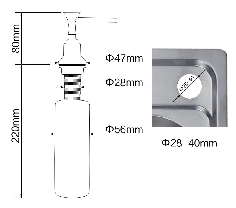 Square Pump Built-In Countertop Dispenser Brass Kitchen Soap Dispenser
