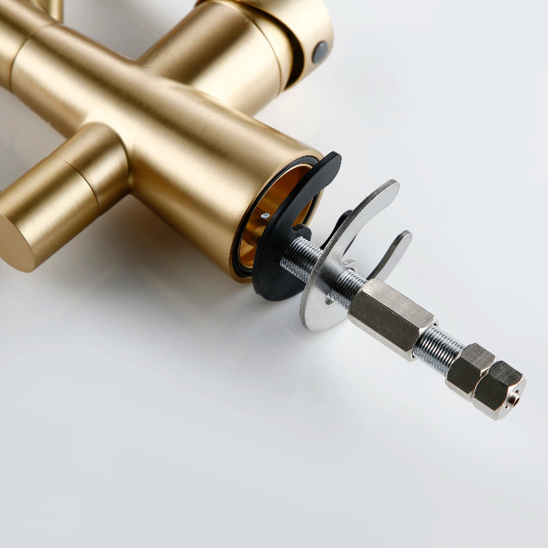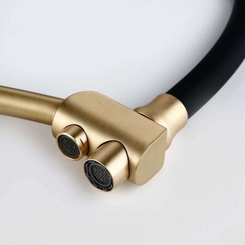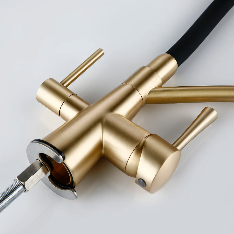 Pull-Out Brass Kitchen Faucet Double Handle Single Hole Water Mixer Tap