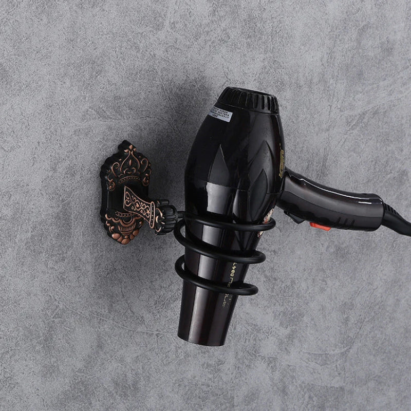 Antique Aluminum Hair Dryer Holder Nail-Free Wall Mount Bath Organizer