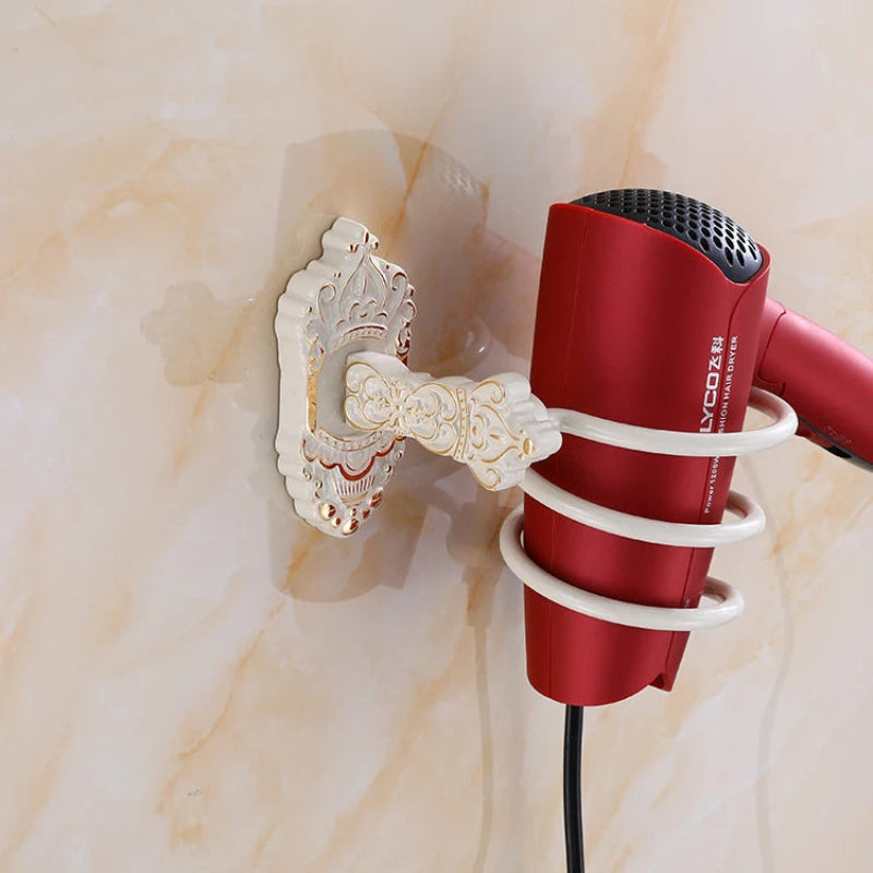Hair Dryer Rack Carved Floral Pattern Antique Brass Bathroom Organizer