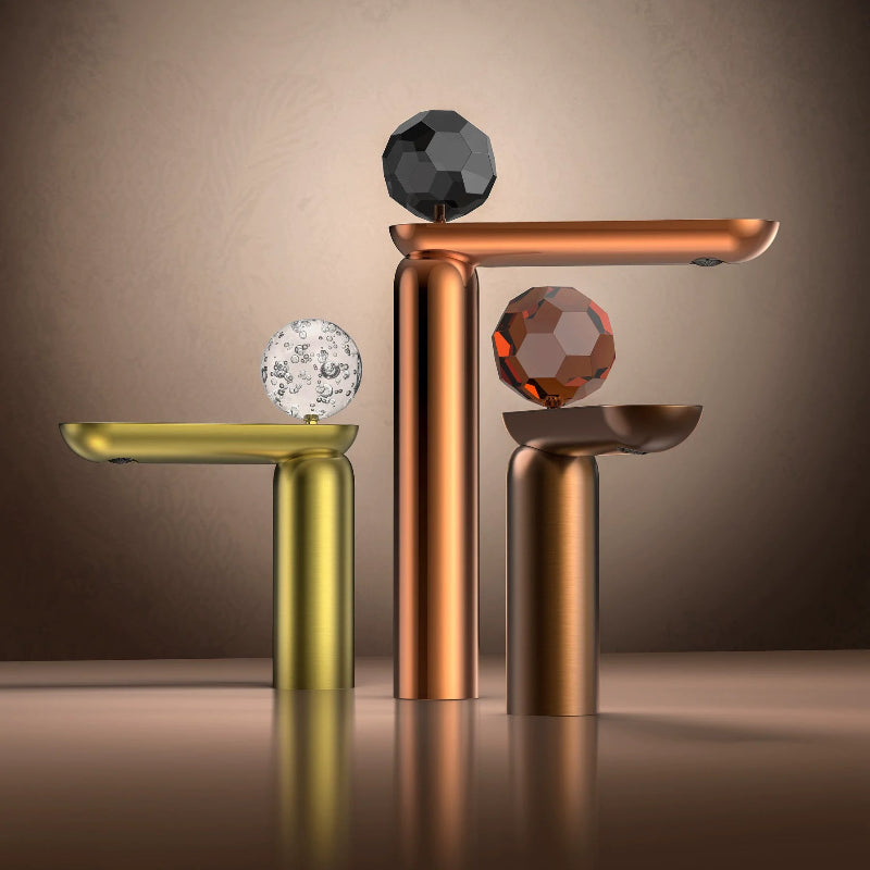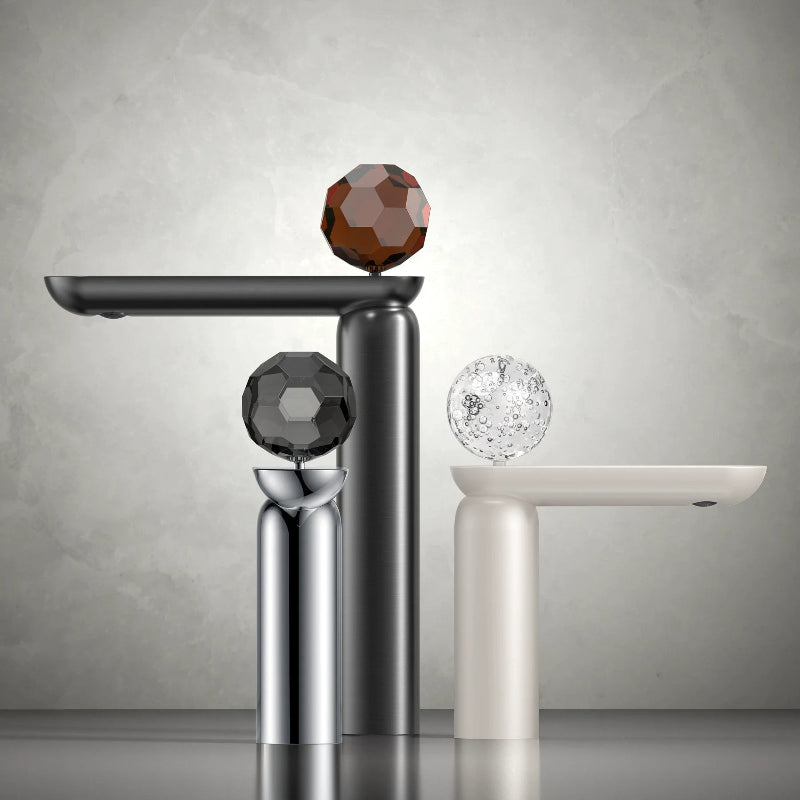 Brass Bathroom Basin Faucet with Glass Ball Handle Crane Mixer Sink Tap