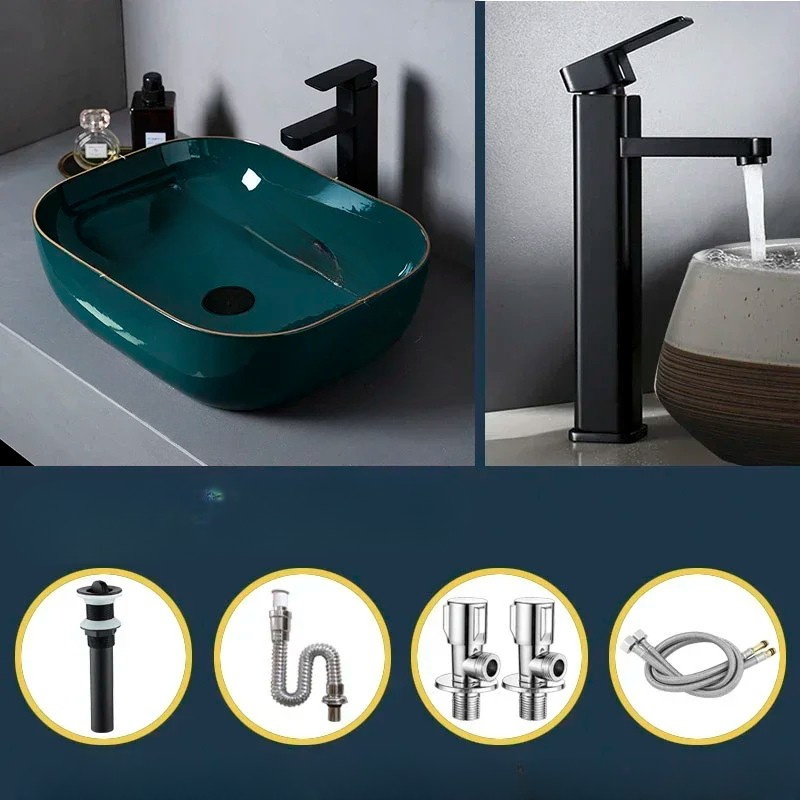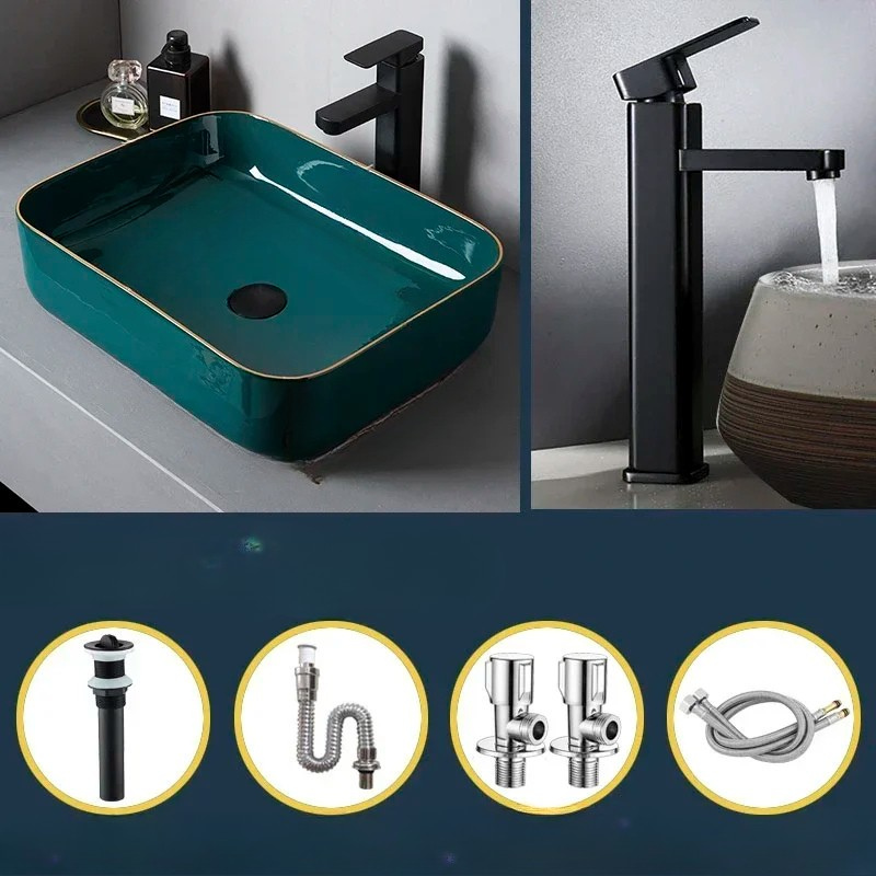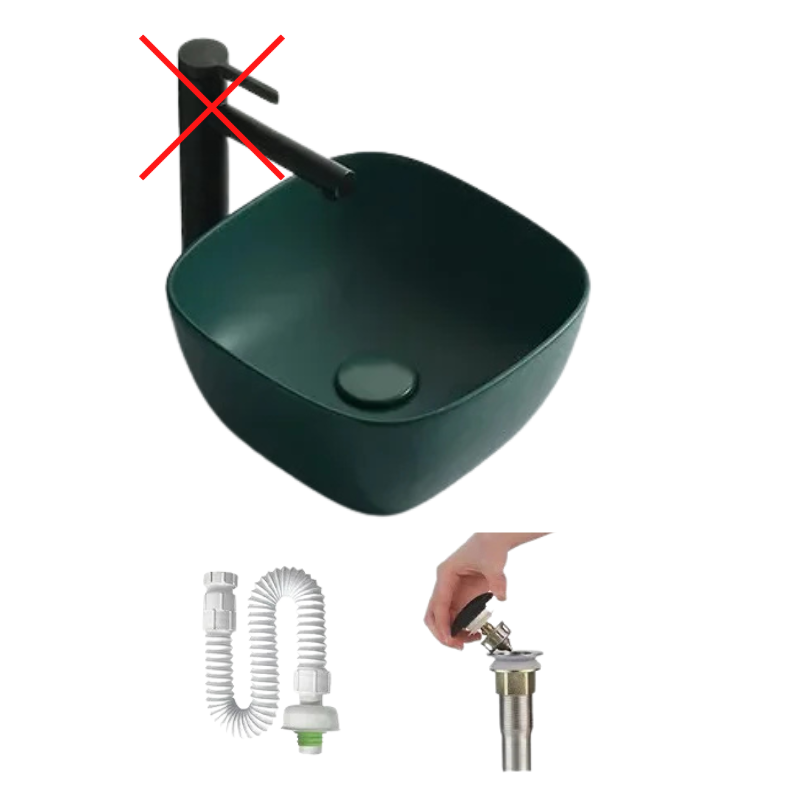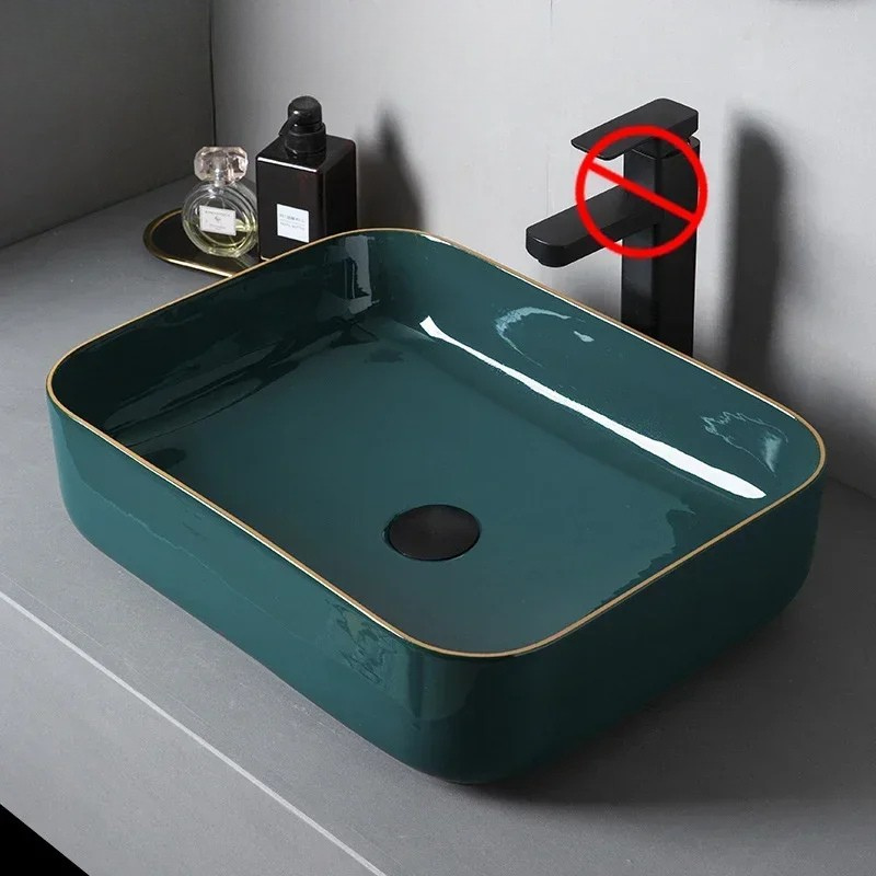 Nordic Matte Green Square Ceramic Washbasin Modern Single Basin Sink