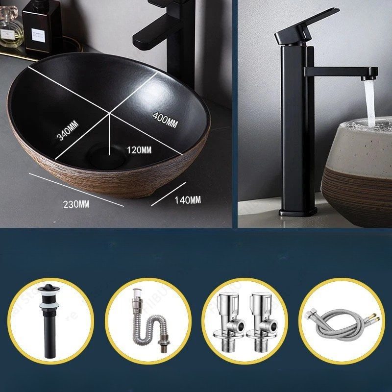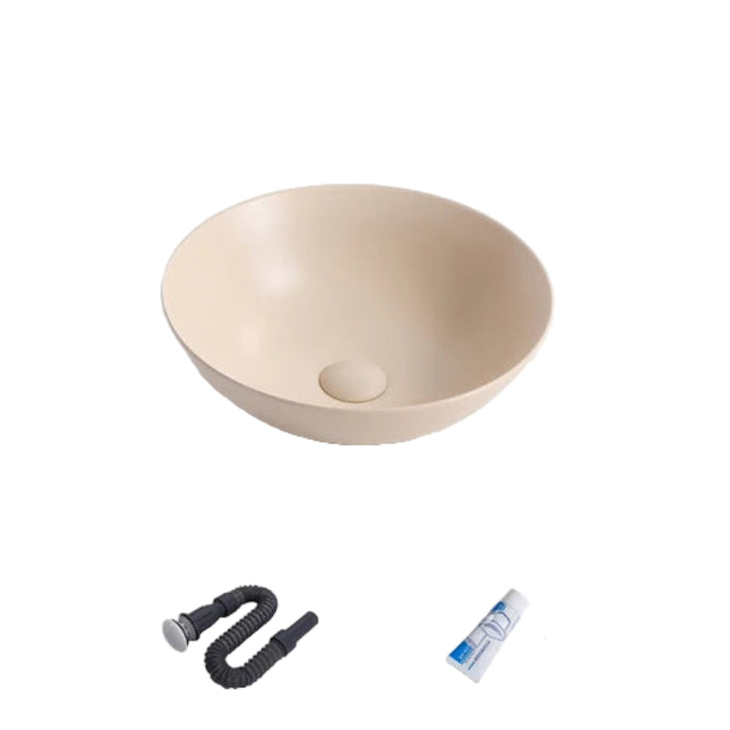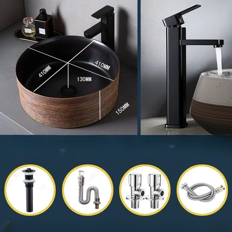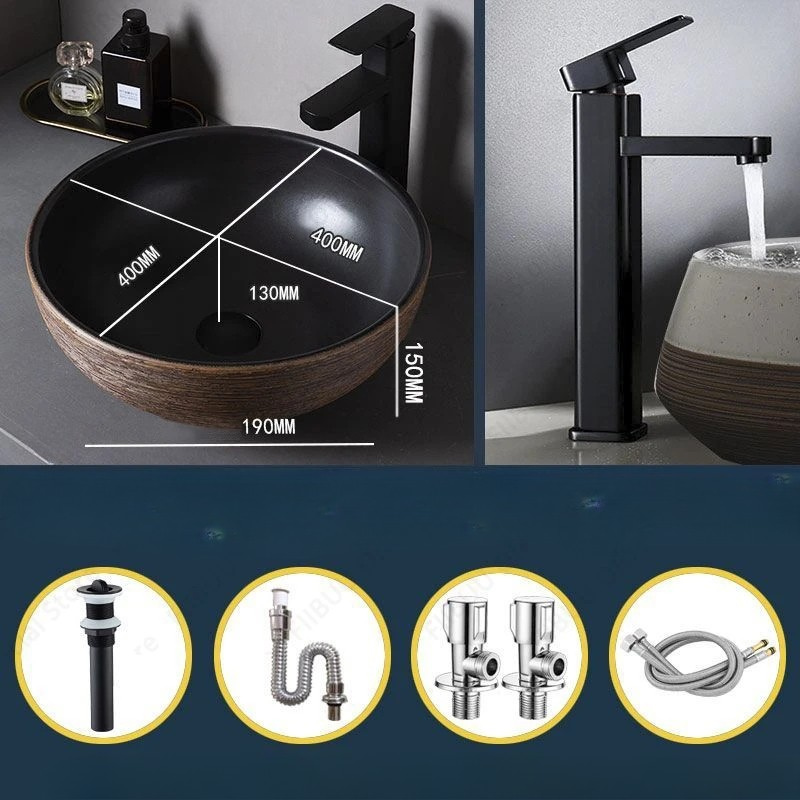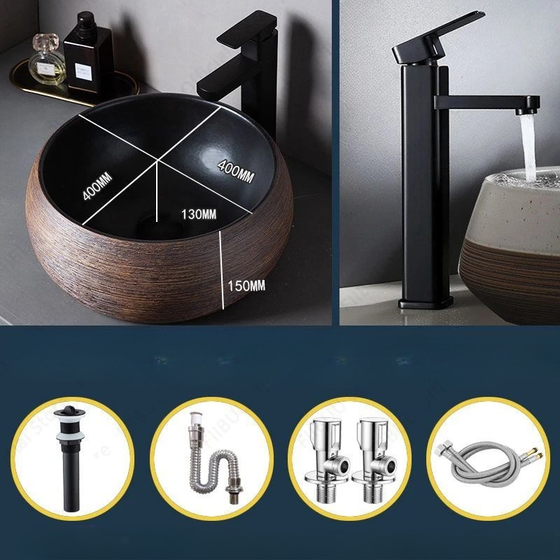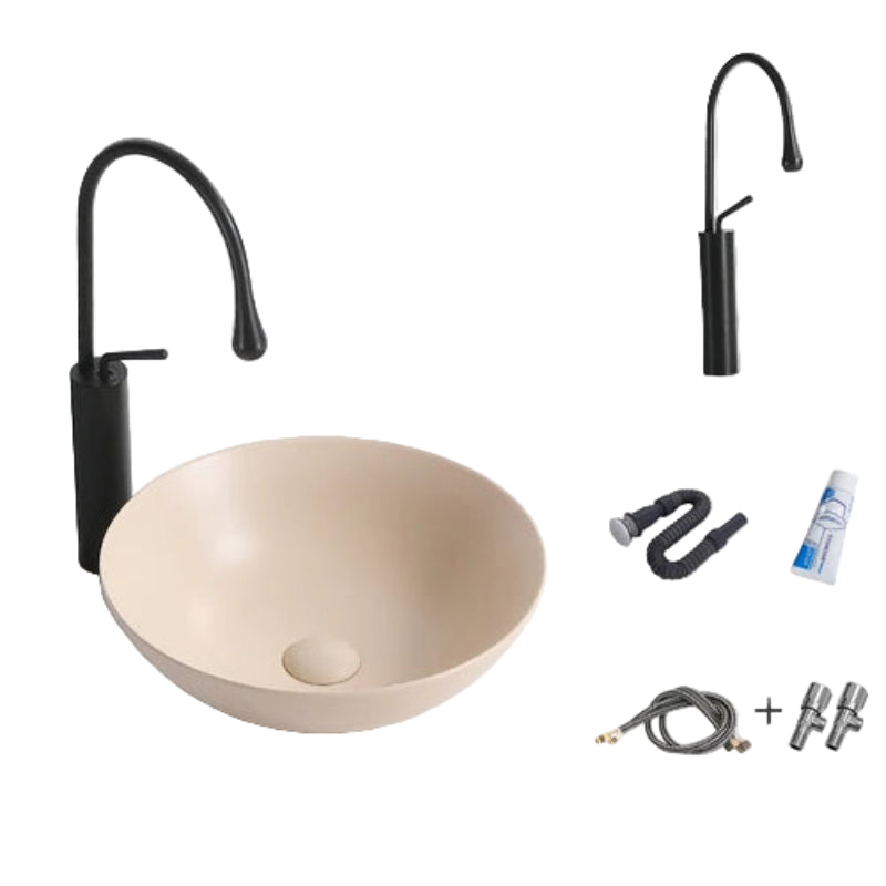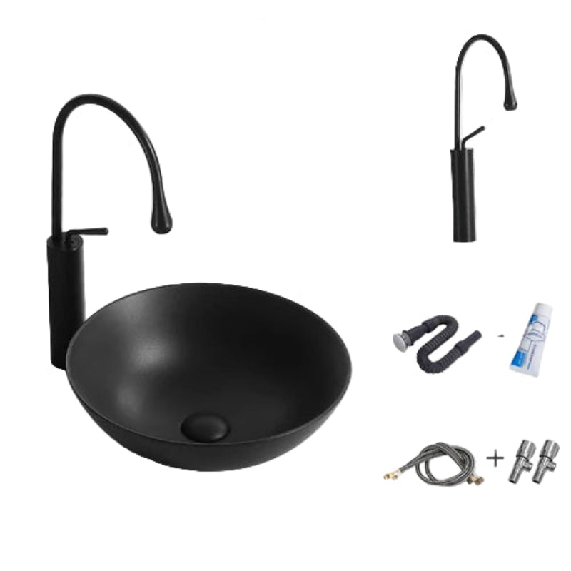 Ceramic Round Bowl Sink with Faucet Combo Countertop Vessel Basin Sink