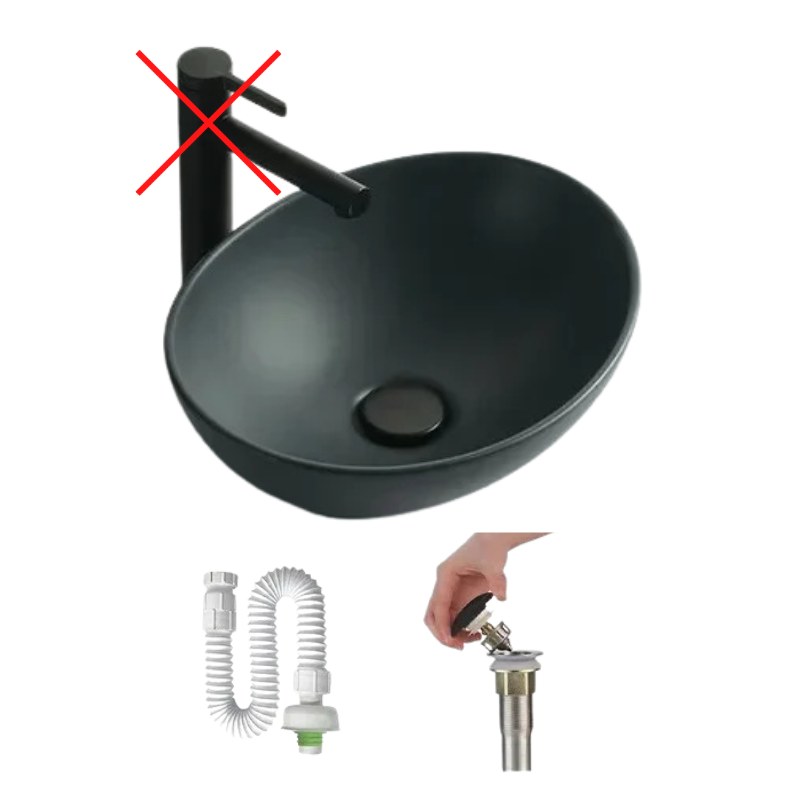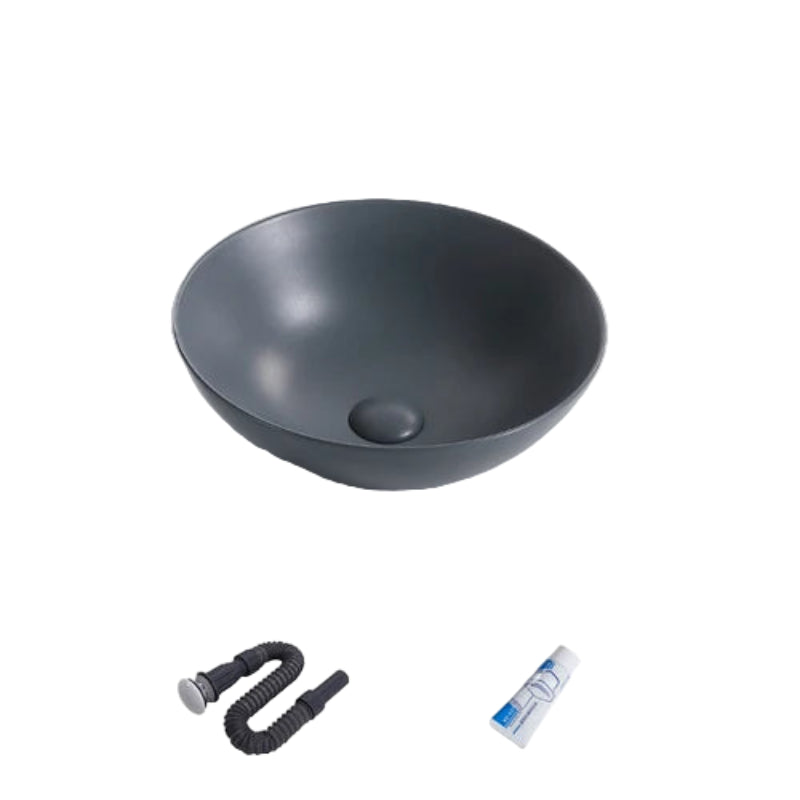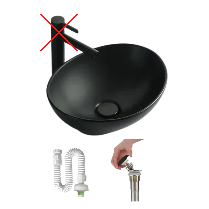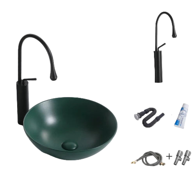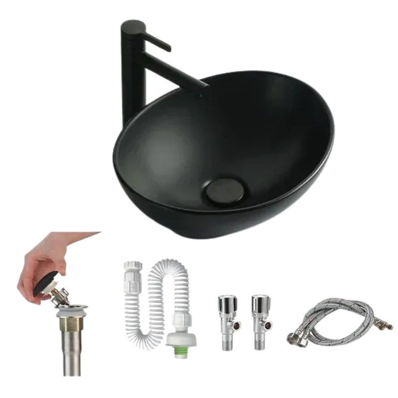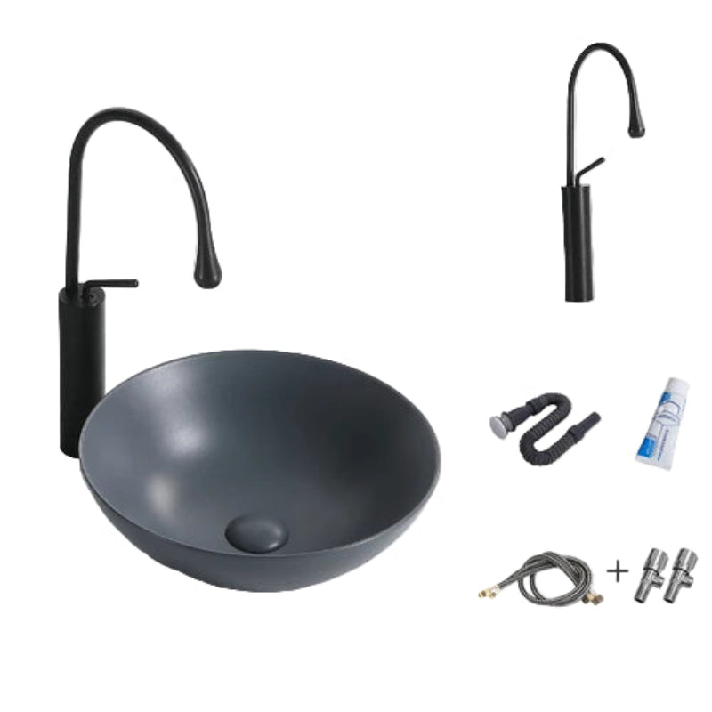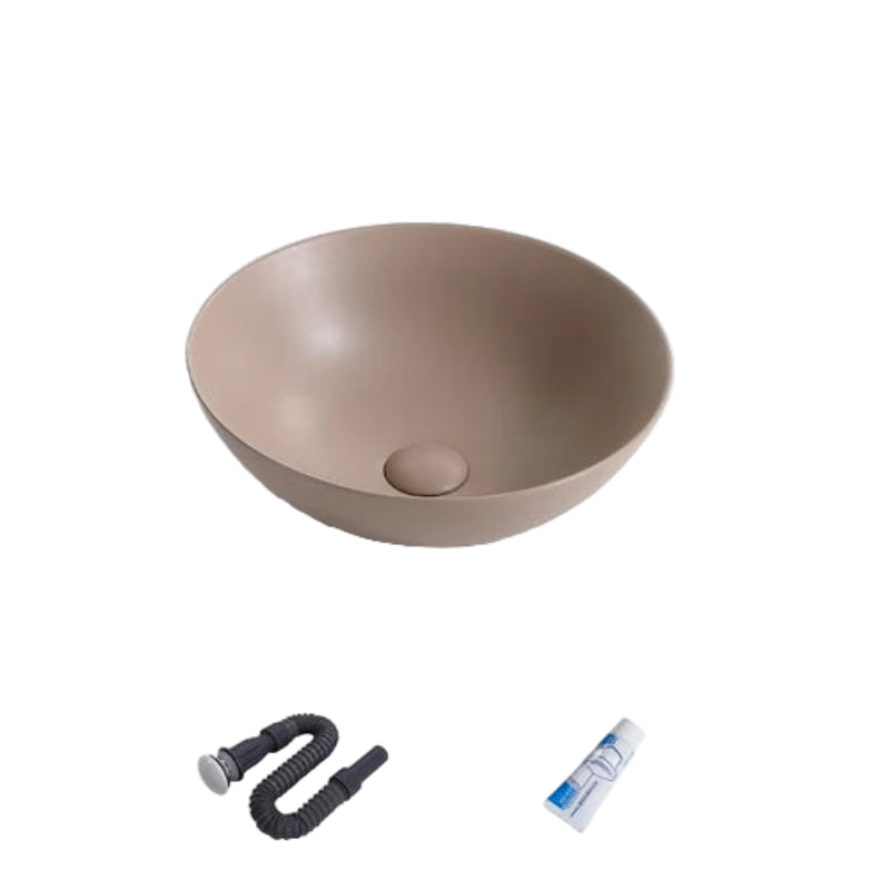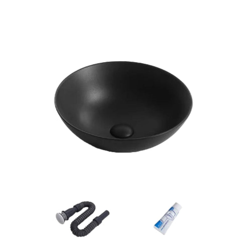 Ceramic Round Bowl Sink with Faucet Combo Countertop Vessel Basin Sink