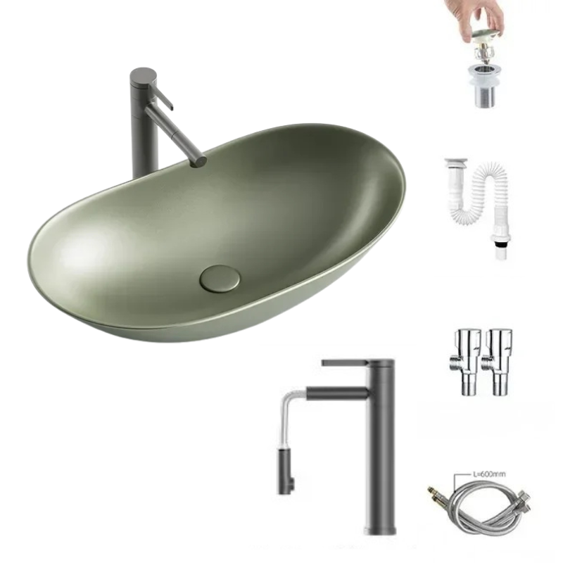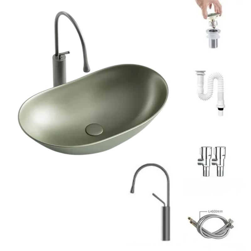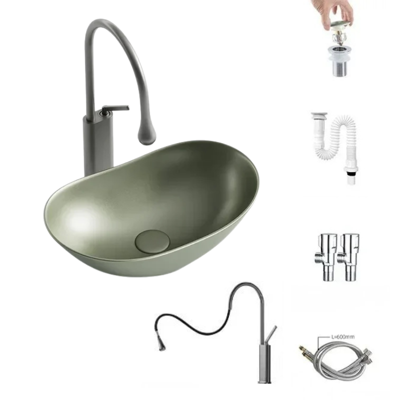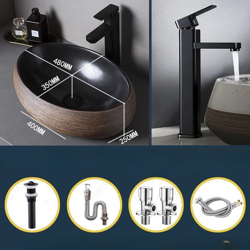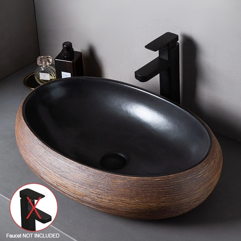 Light Luxury Oval Ceramic Sink Large Capacity Bathroom Basin Sink