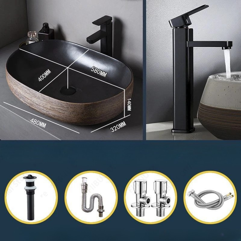 Ceramic Countertop Vessel Sink Artistic Bathroom and Balcony Washbasin