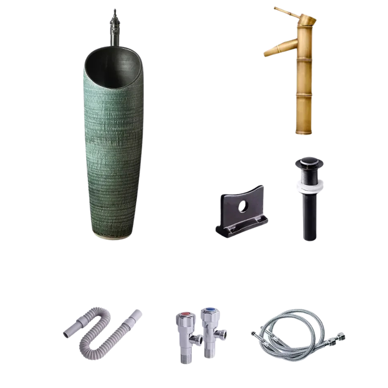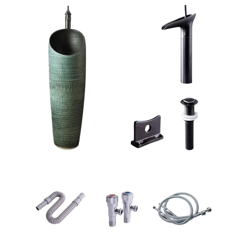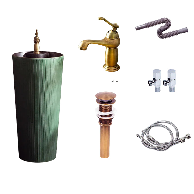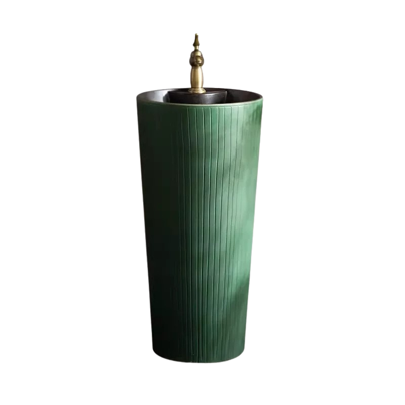 Retro Handmade Ceramic Column Basin Floor-Standing Outdoor Washbasin