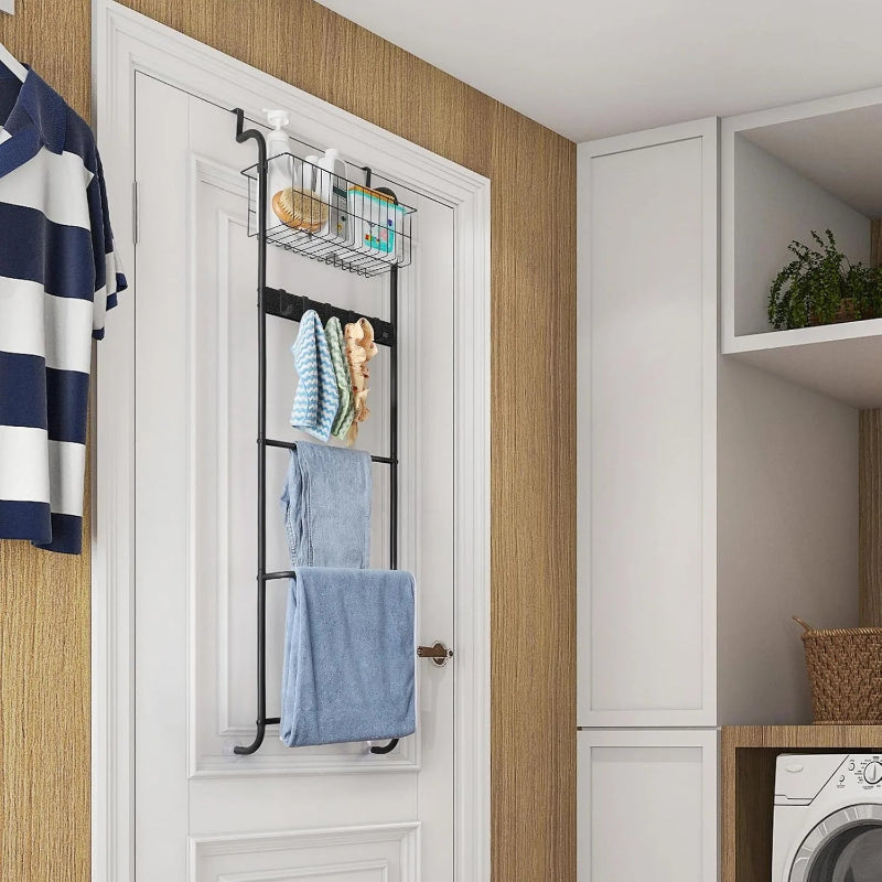 3-Tier Bathroom Towel Rack Over the Door Storage Organizer with Shelf