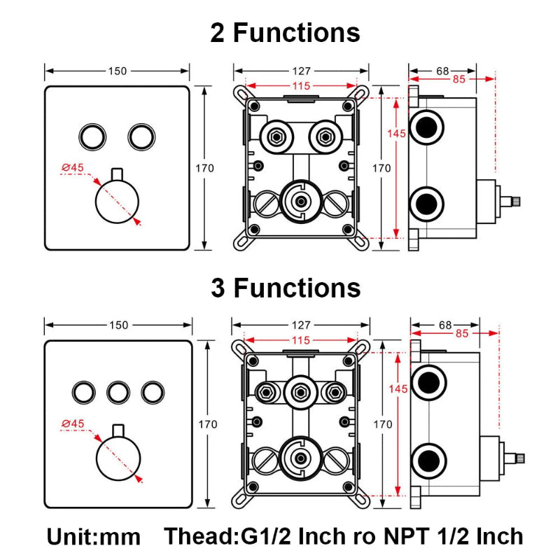 3 Way Brass Digital Thermostatic Mixer Valve Push Button Shower Control