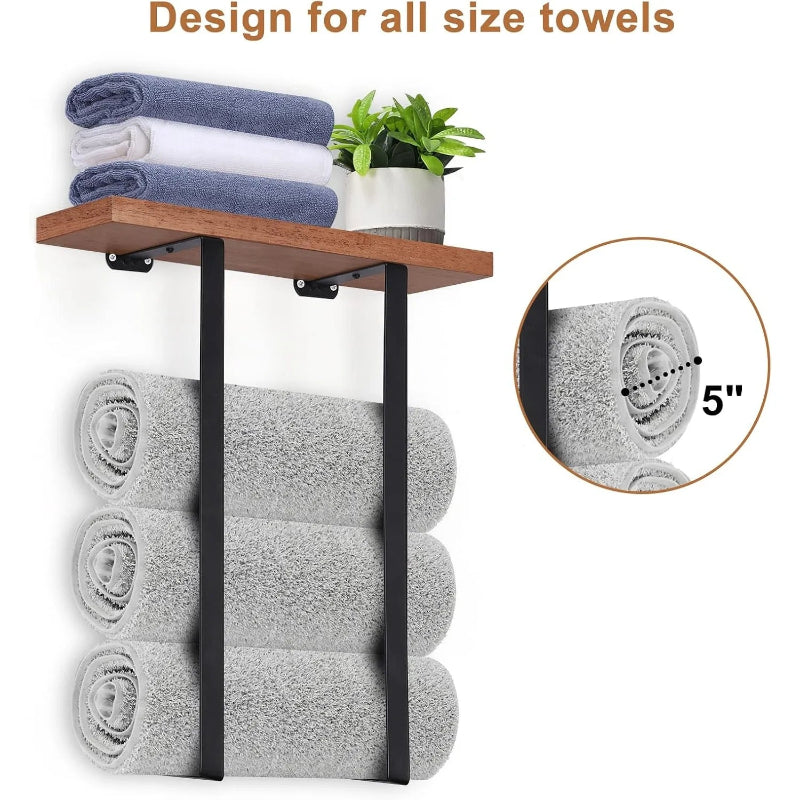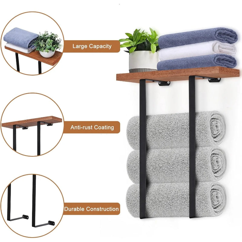 Solid Wood Bathroom Shelf Wall-Mounted Storage Rack with Towel Holder