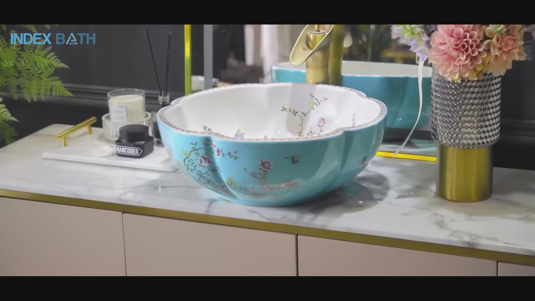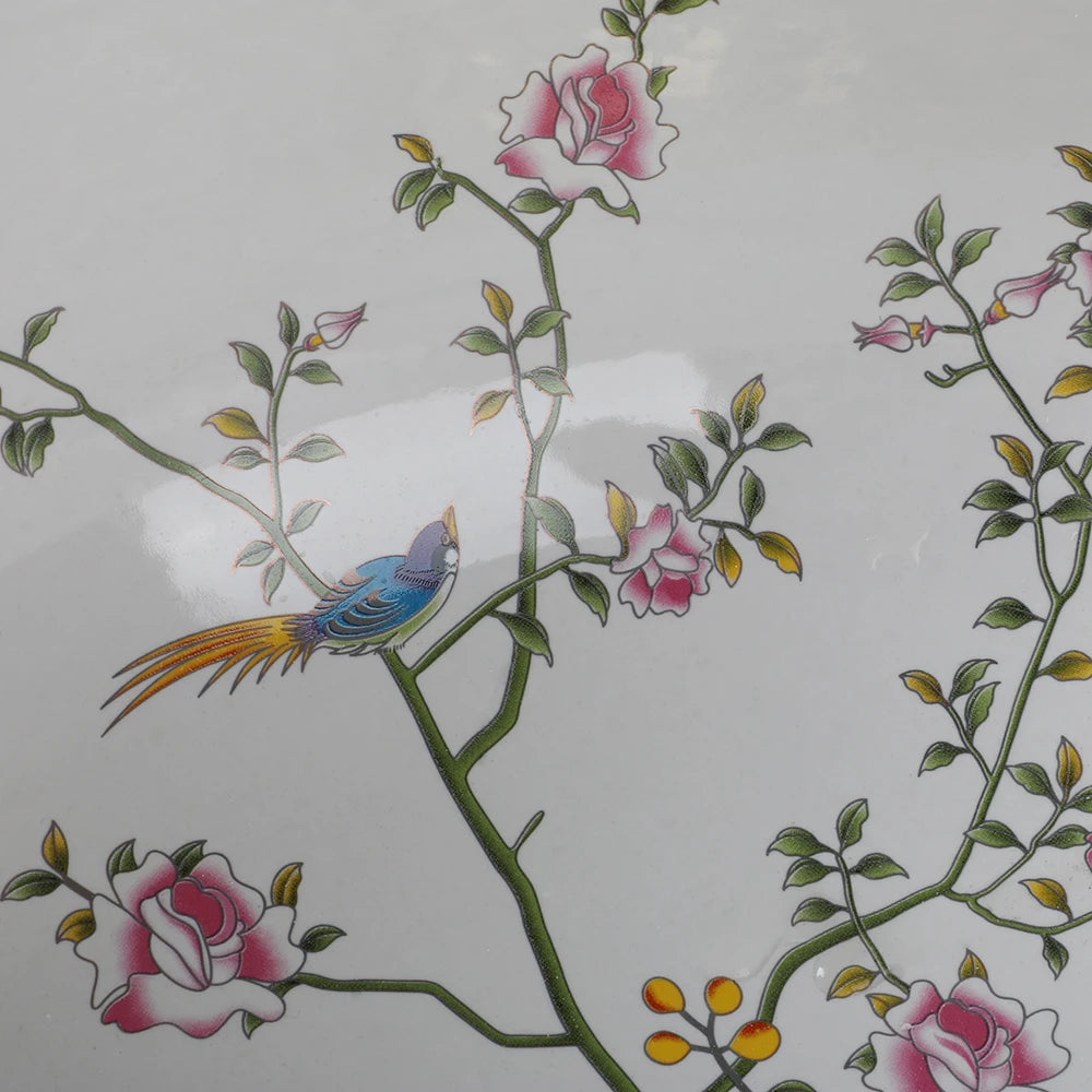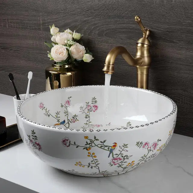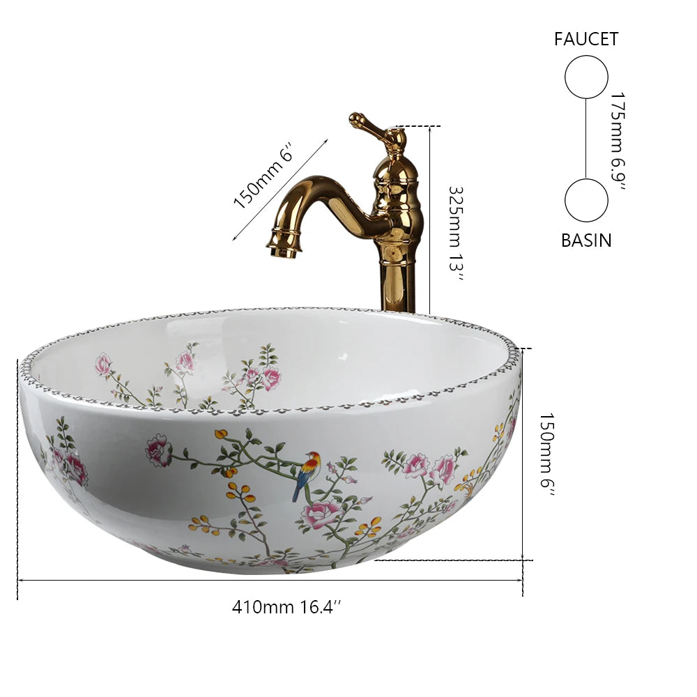 Bathroom Sinks Set Flower and Bird Painting Circular Ceramics Basin