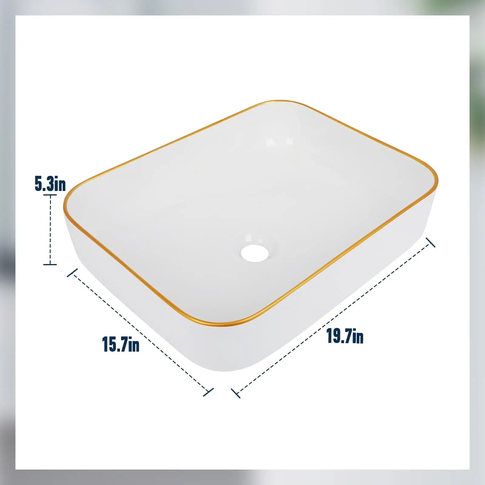 Ceramic Modern Style Gold Rim Vessel Sink Above Counter Without Faucet