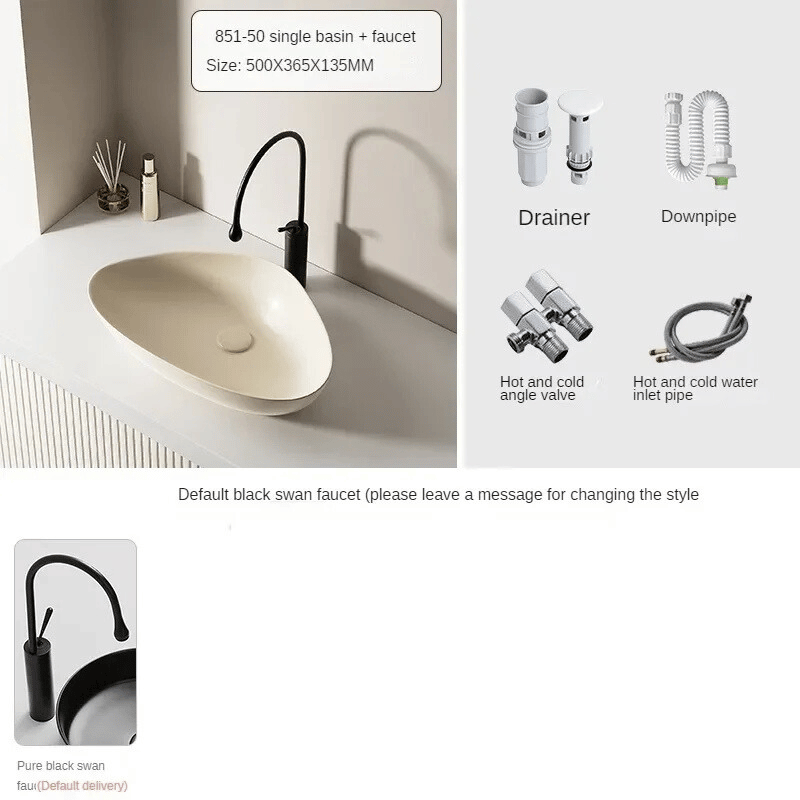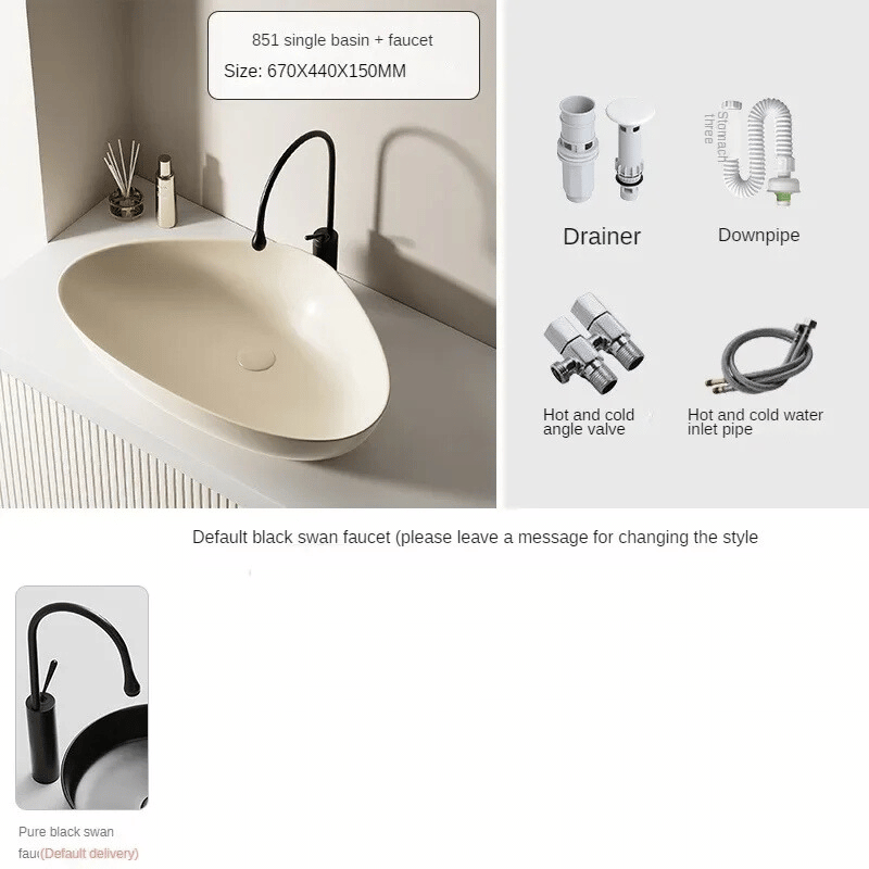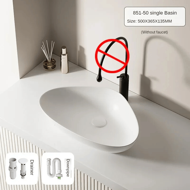 Oval Marble Stone Resin Vessel Sink Bathroom Sink with Pop-Up Drain